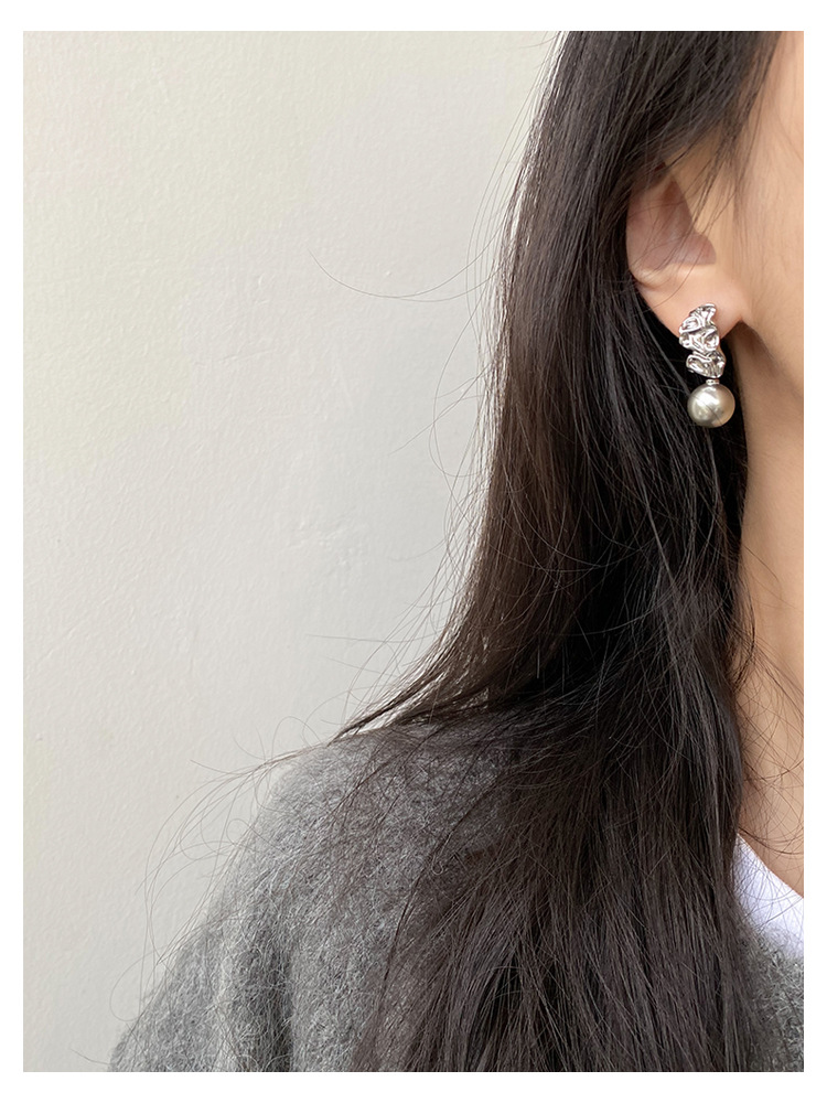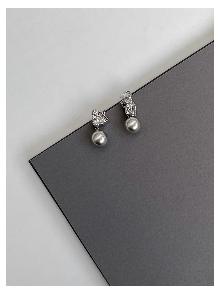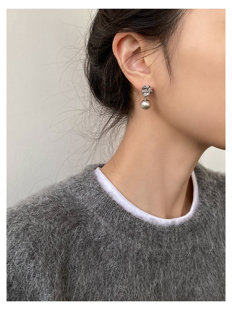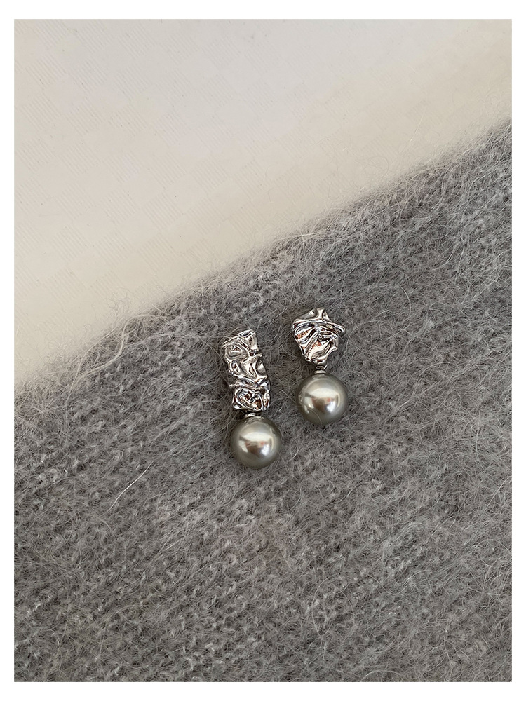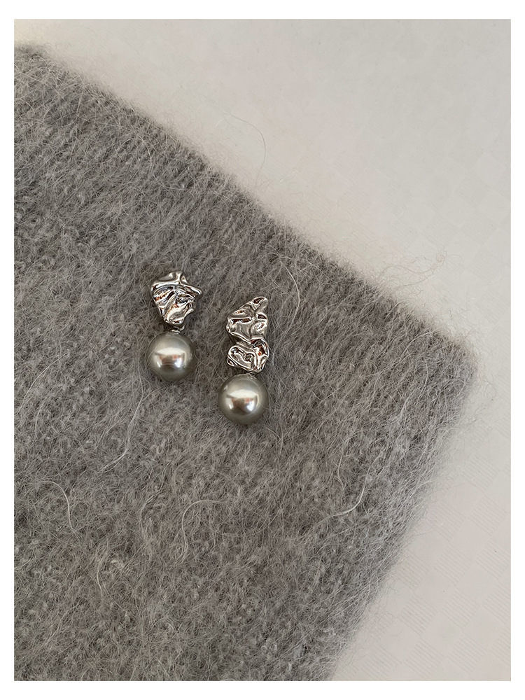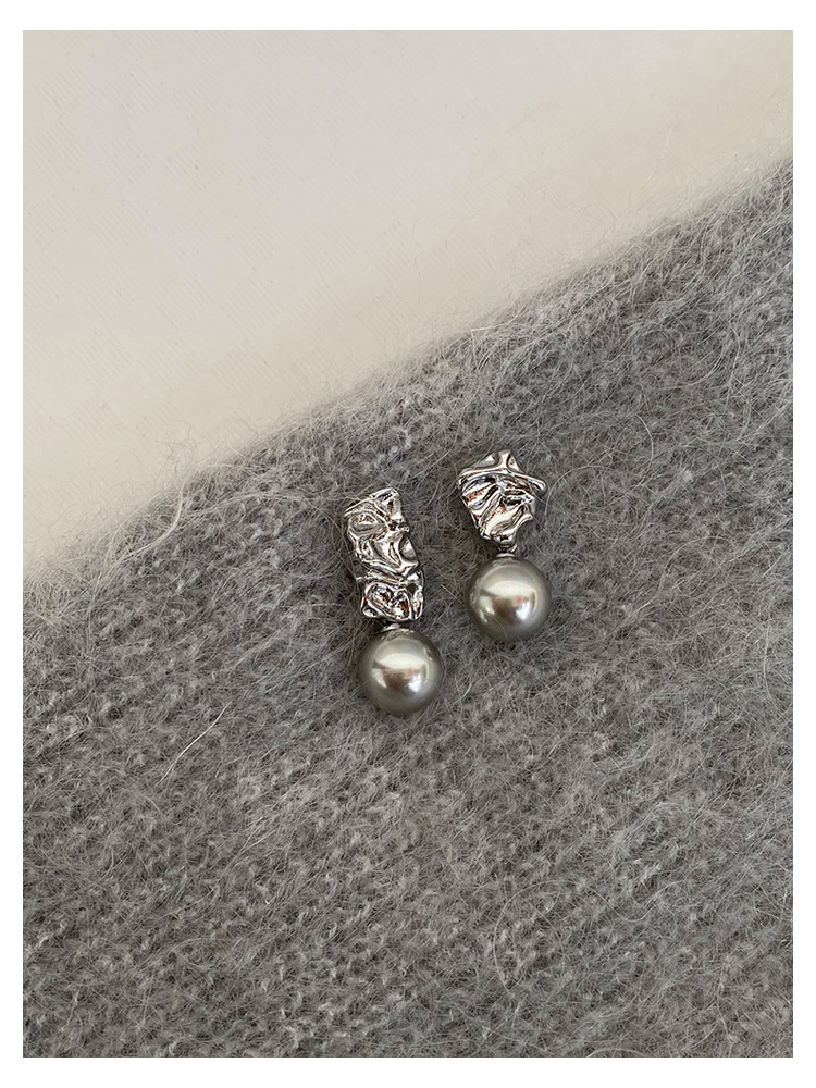 不规则纹理灰珍珠灰岩浆925银针熔岩肌理灰色珍珠耳环高级感耳钉