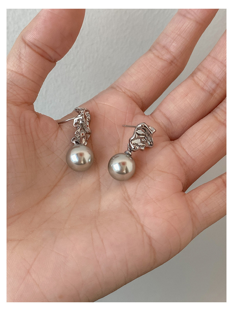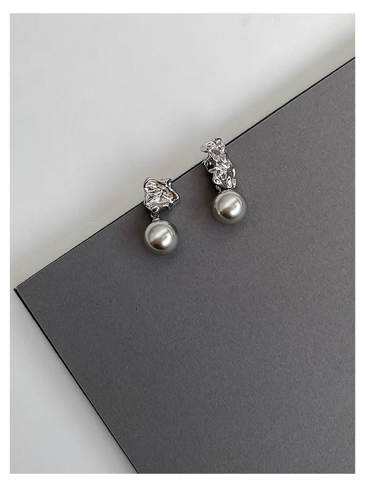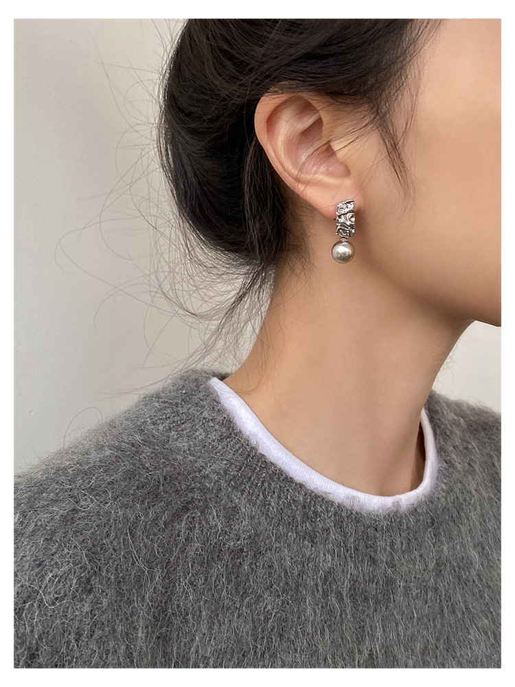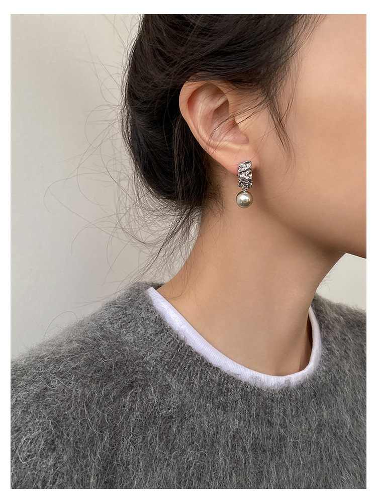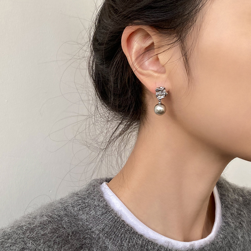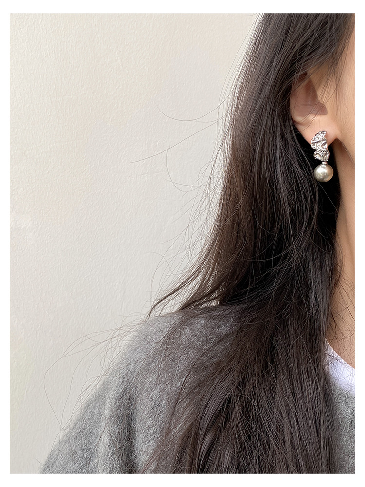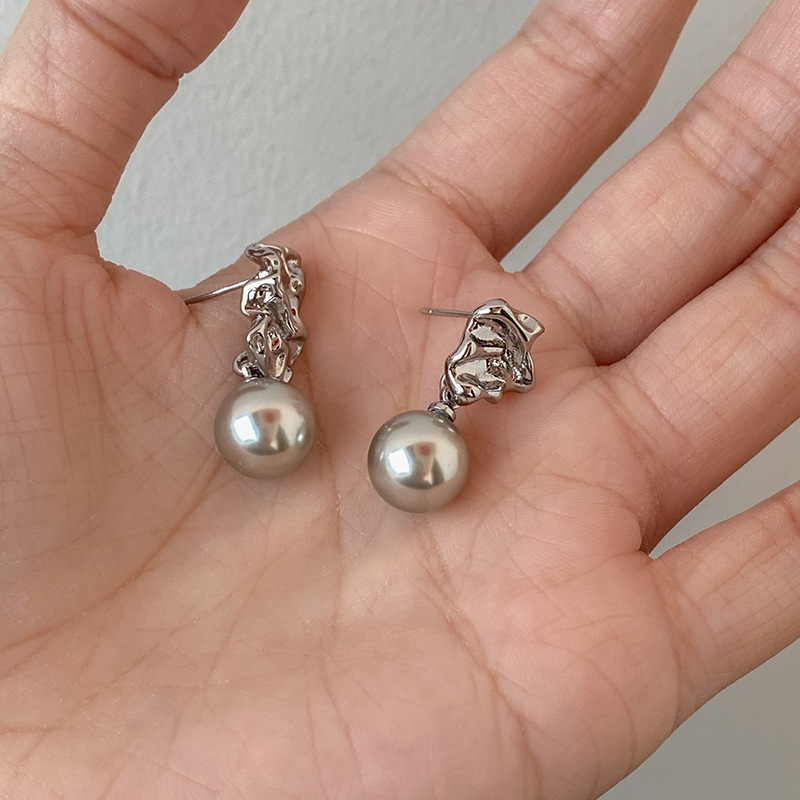 不规则纹理灰珍珠灰岩浆925银针熔岩肌理灰色珍珠耳环高级感耳钉
