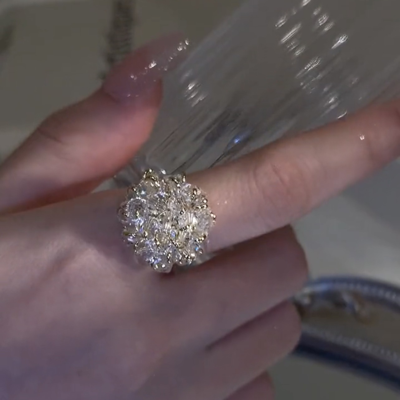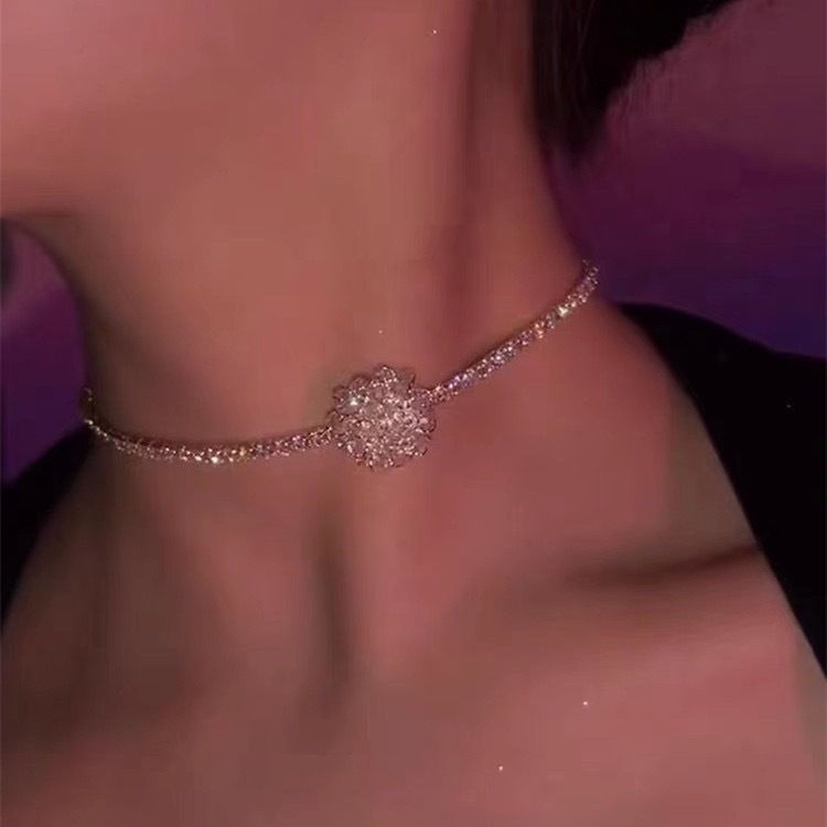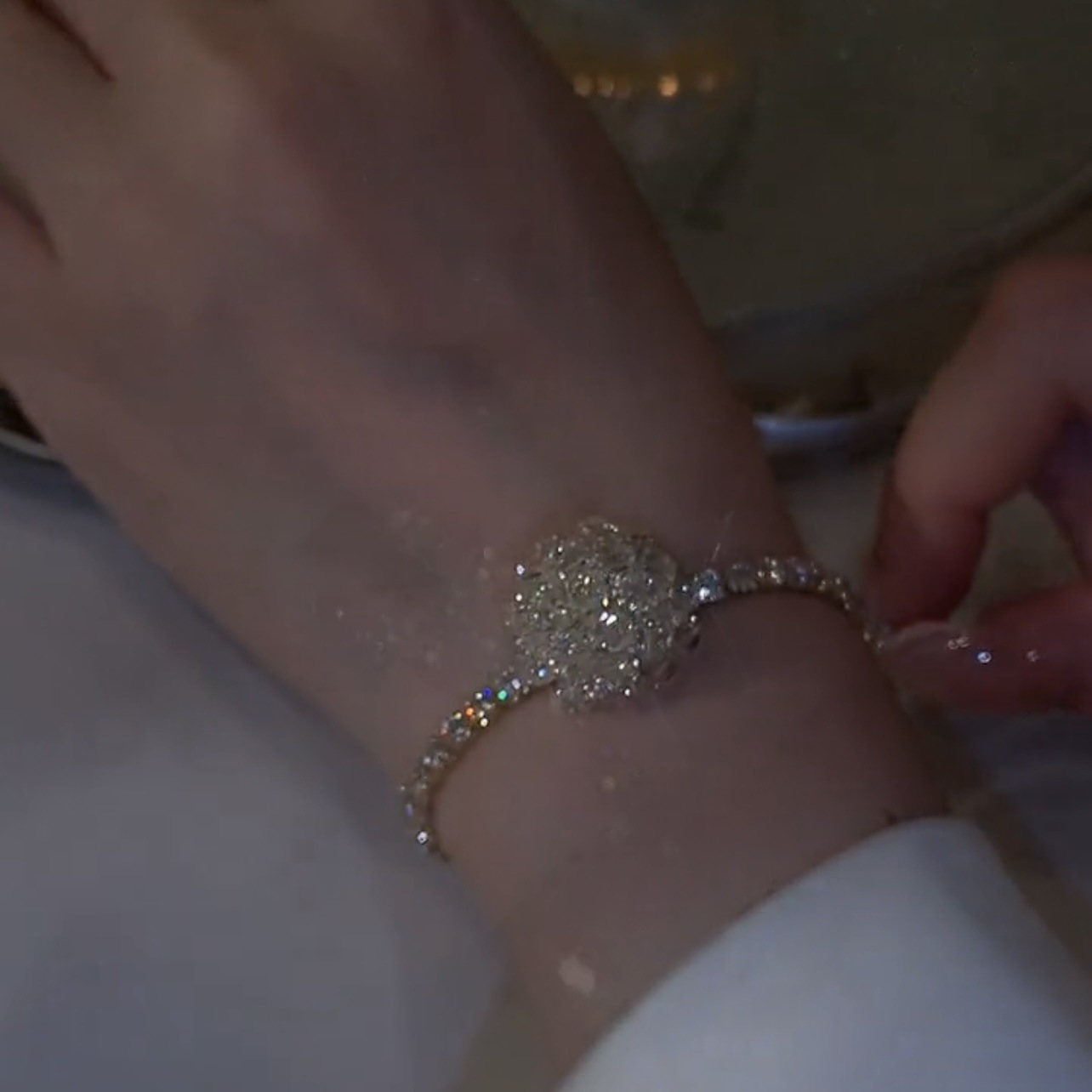 超美水晶花戒指项链手链水晶莲花手作款闪钻锆石链条手链女轻奢