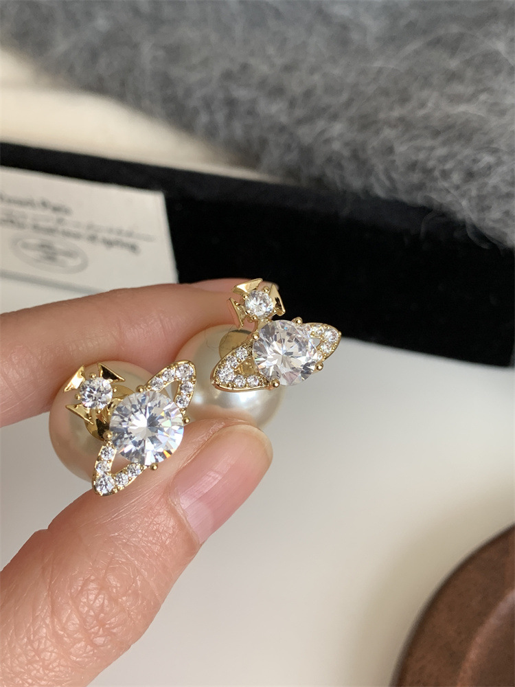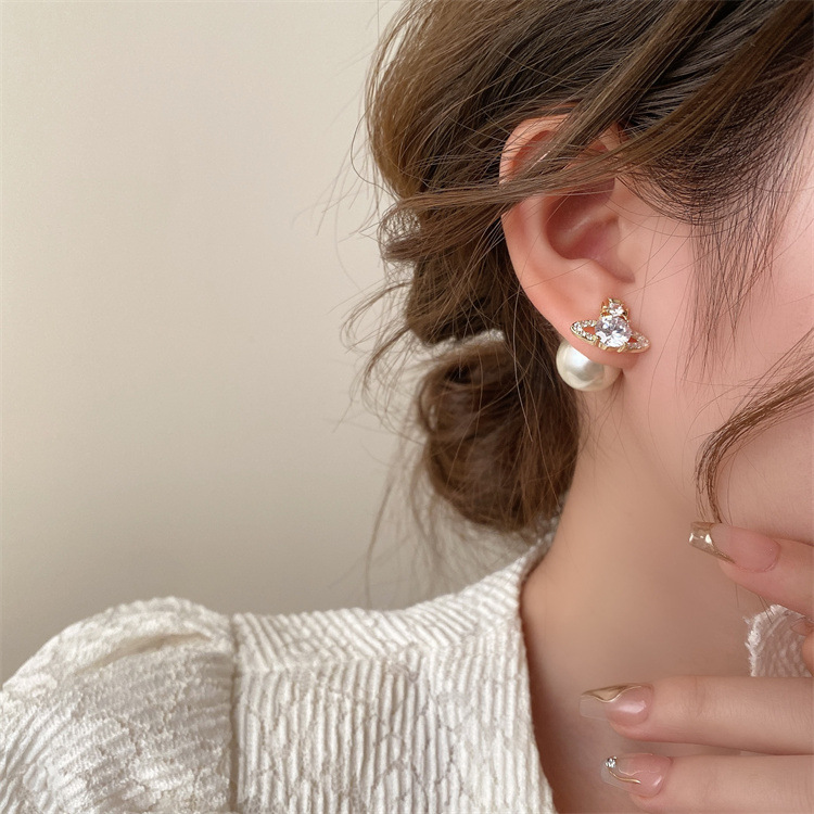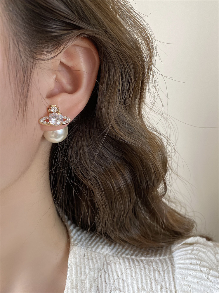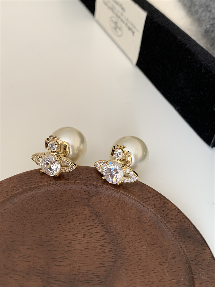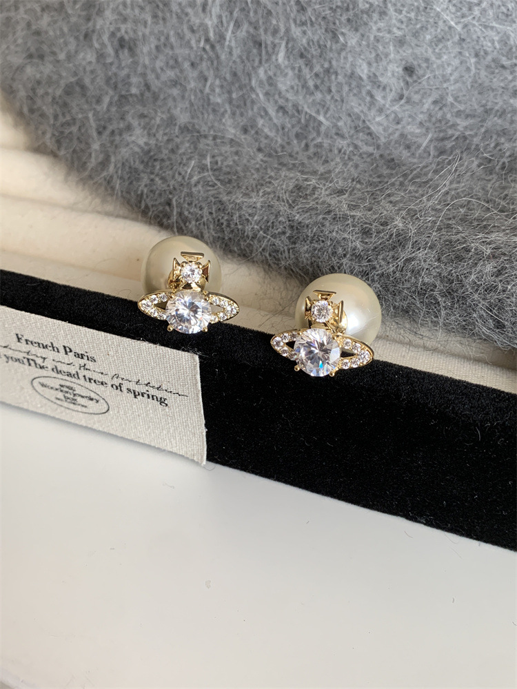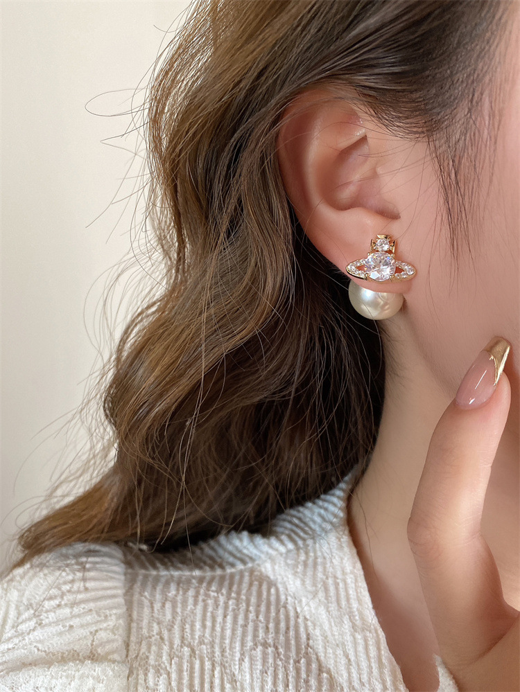 超闪轻奢土星珍珠耳钉前后戴气质百搭精致耳环女新款小众设计耳饰