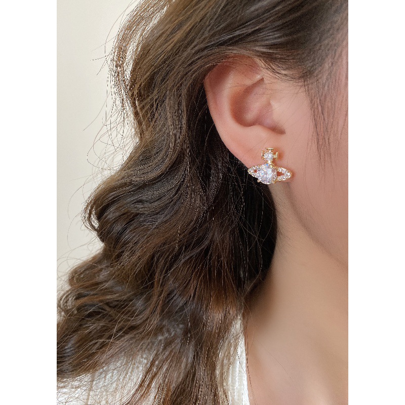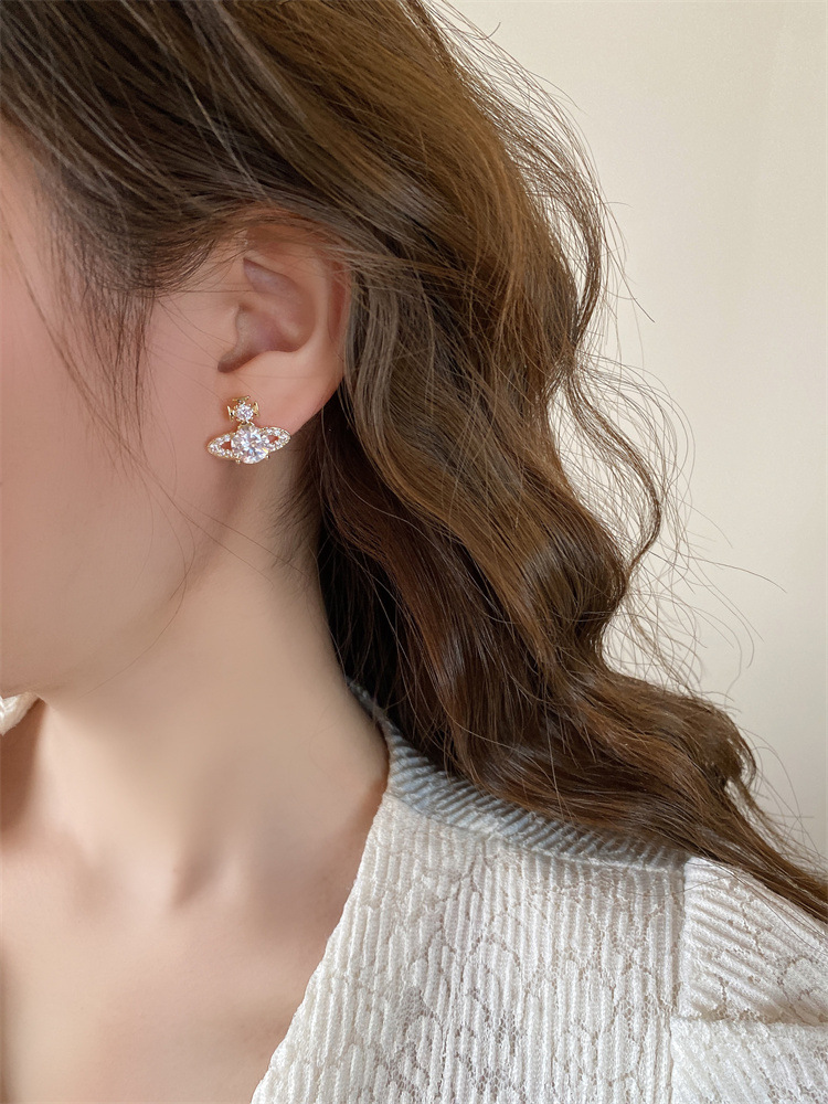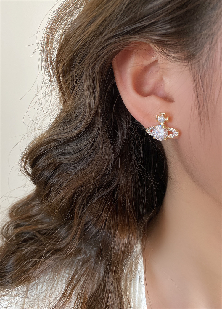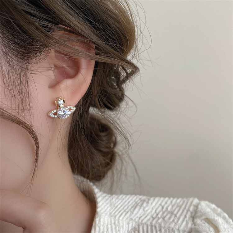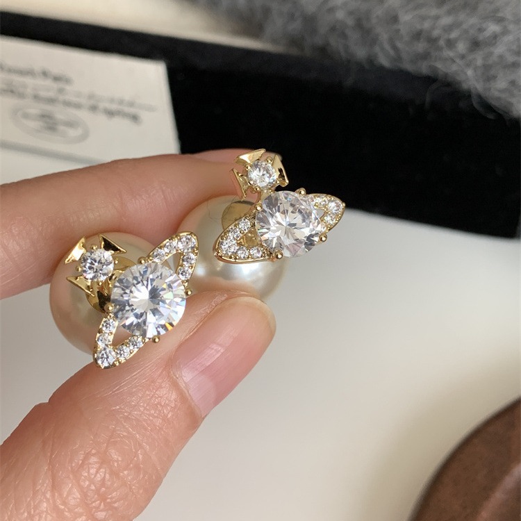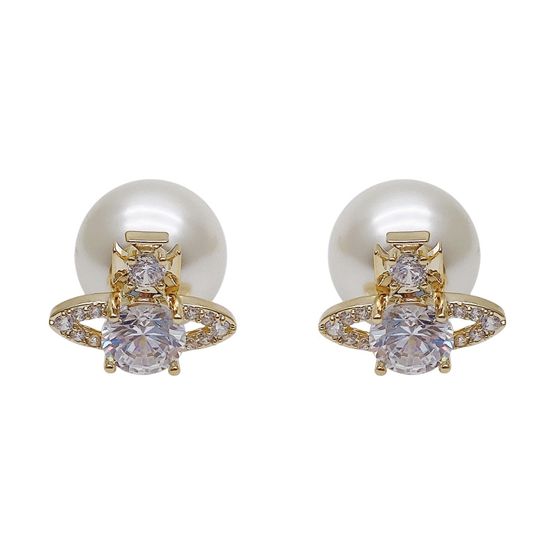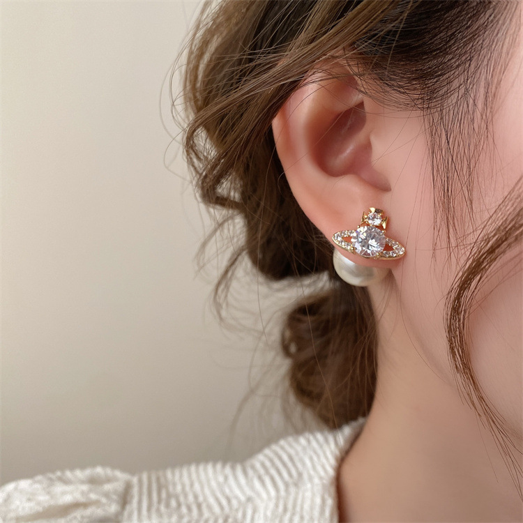 超闪轻奢土星珍珠耳钉前后戴气质百搭精致耳环女新款小众设计耳饰