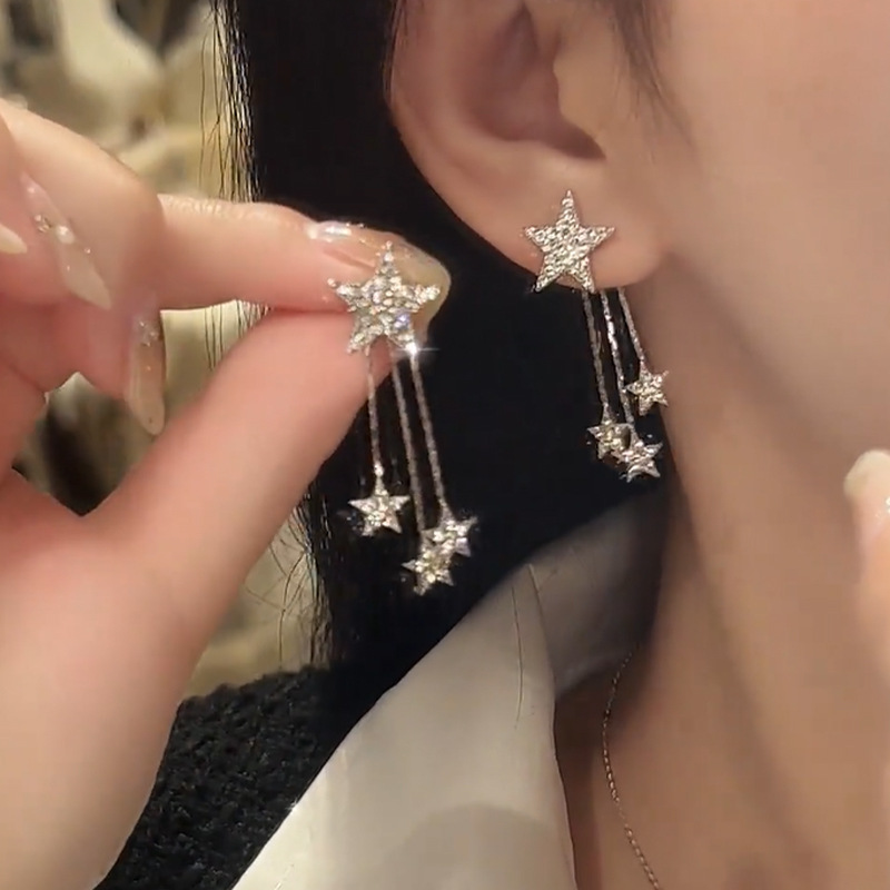 超闪五角星流苏一款两戴耳环小众设计高级感百搭耳钉新款爆款耳饰