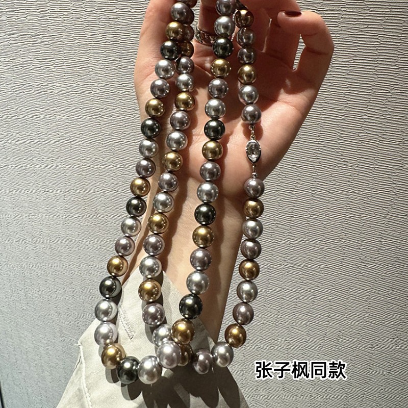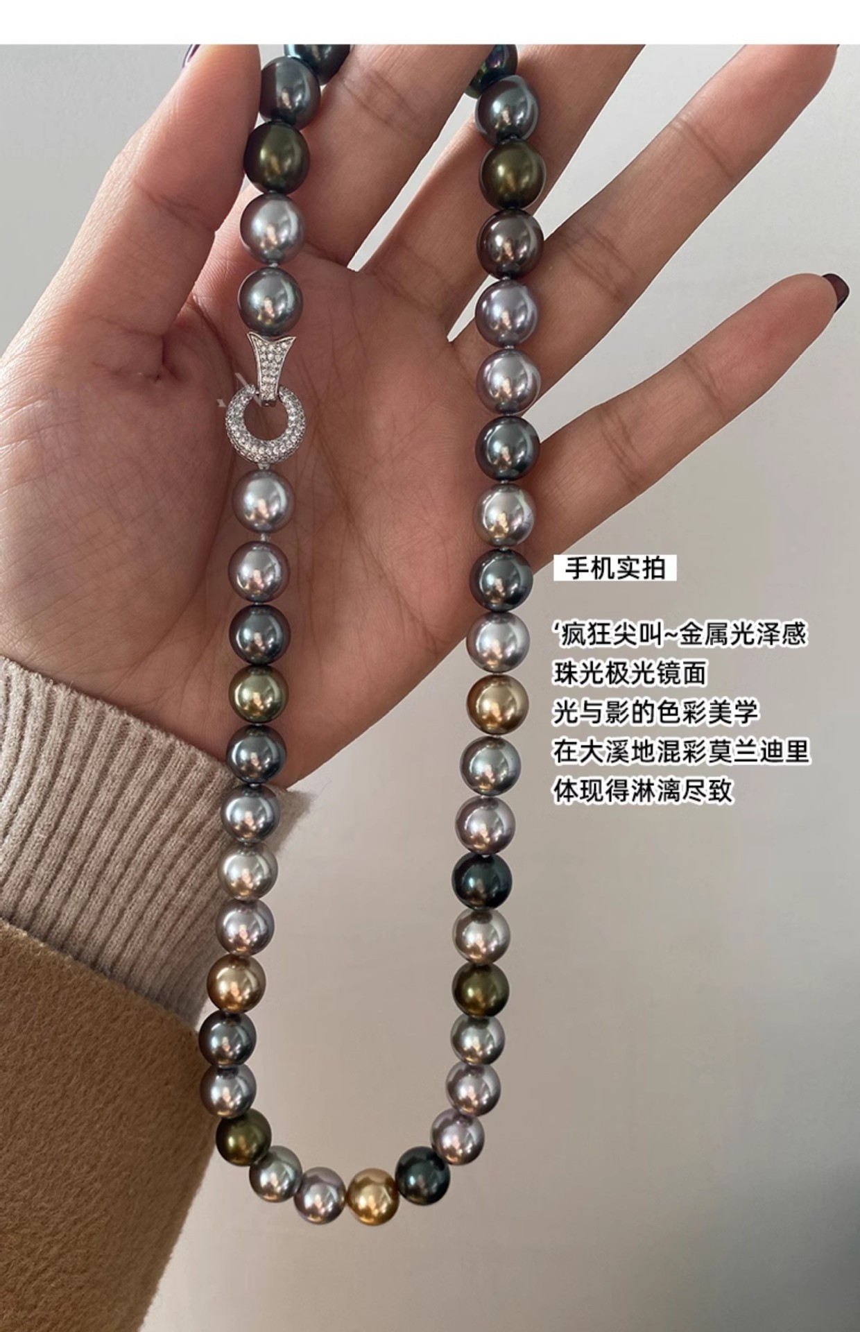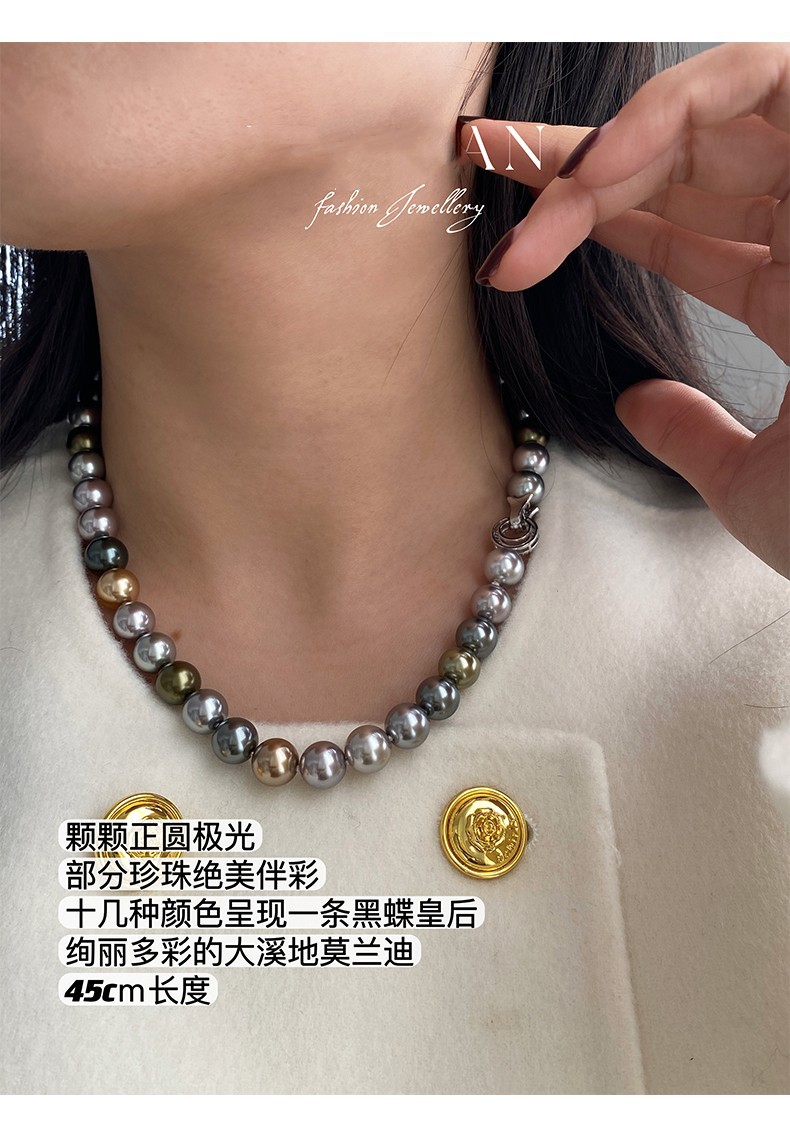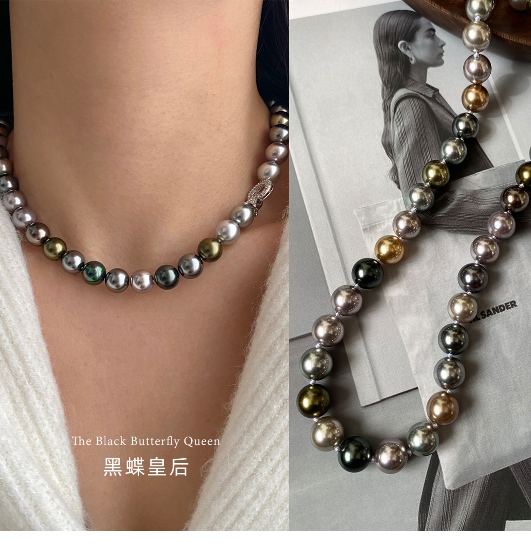 24新款黑蝶皇后珍珠项链大溪地莫兰迪混彩小众轻奢施家珍珠项链