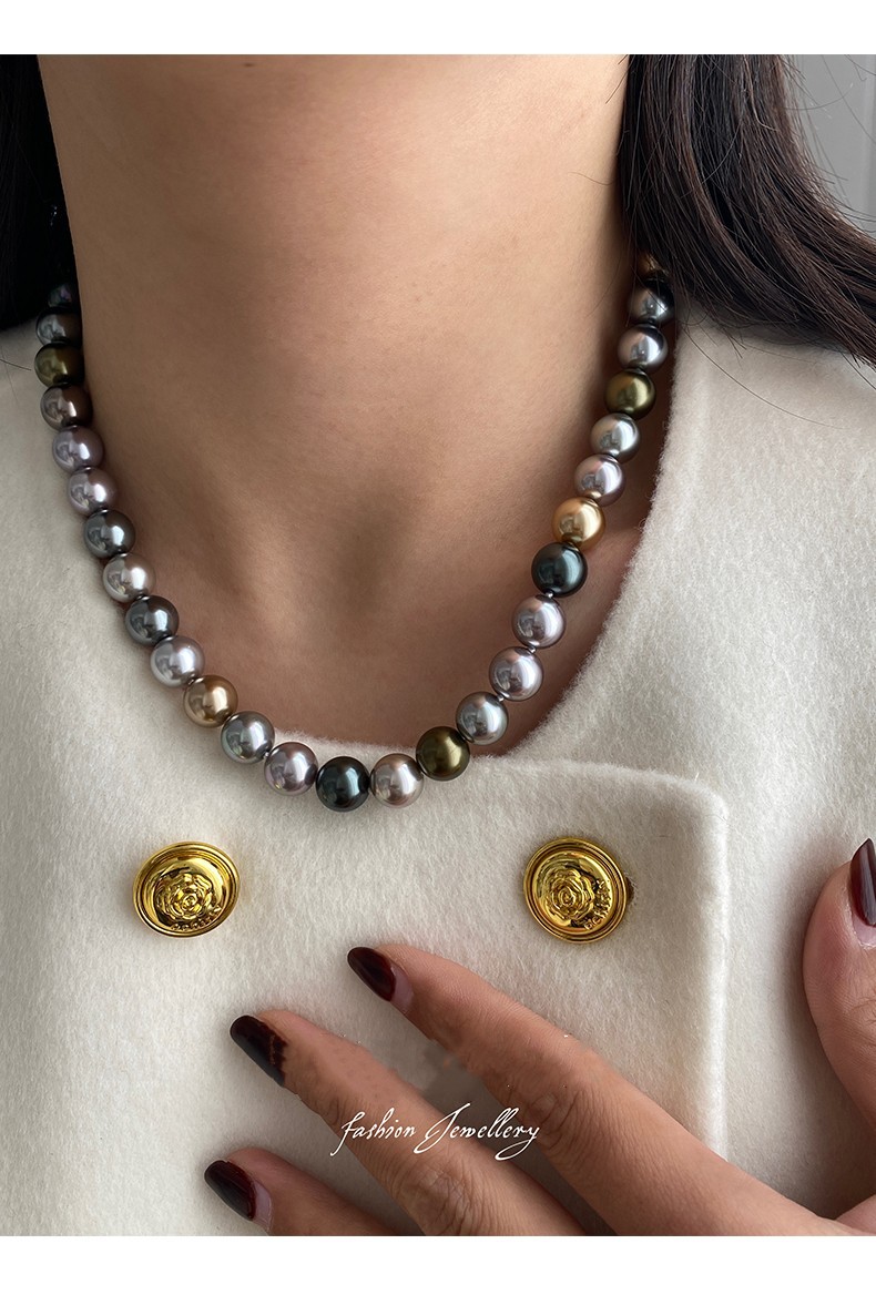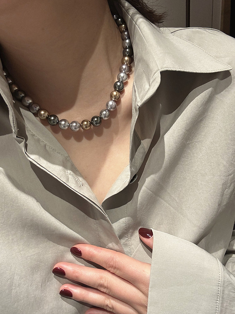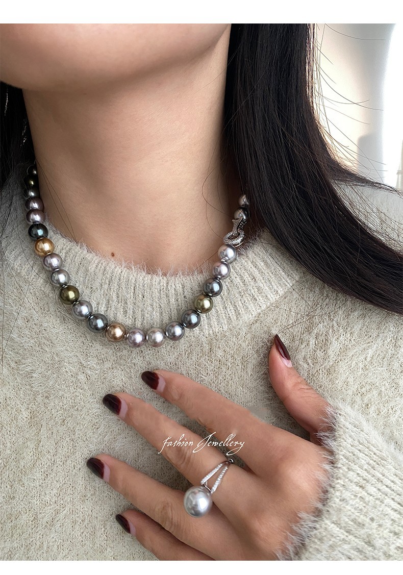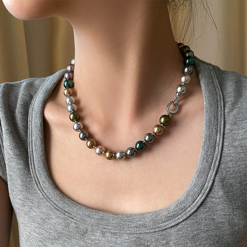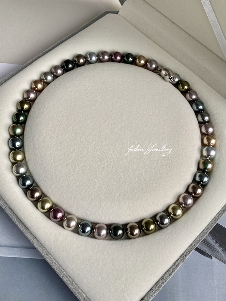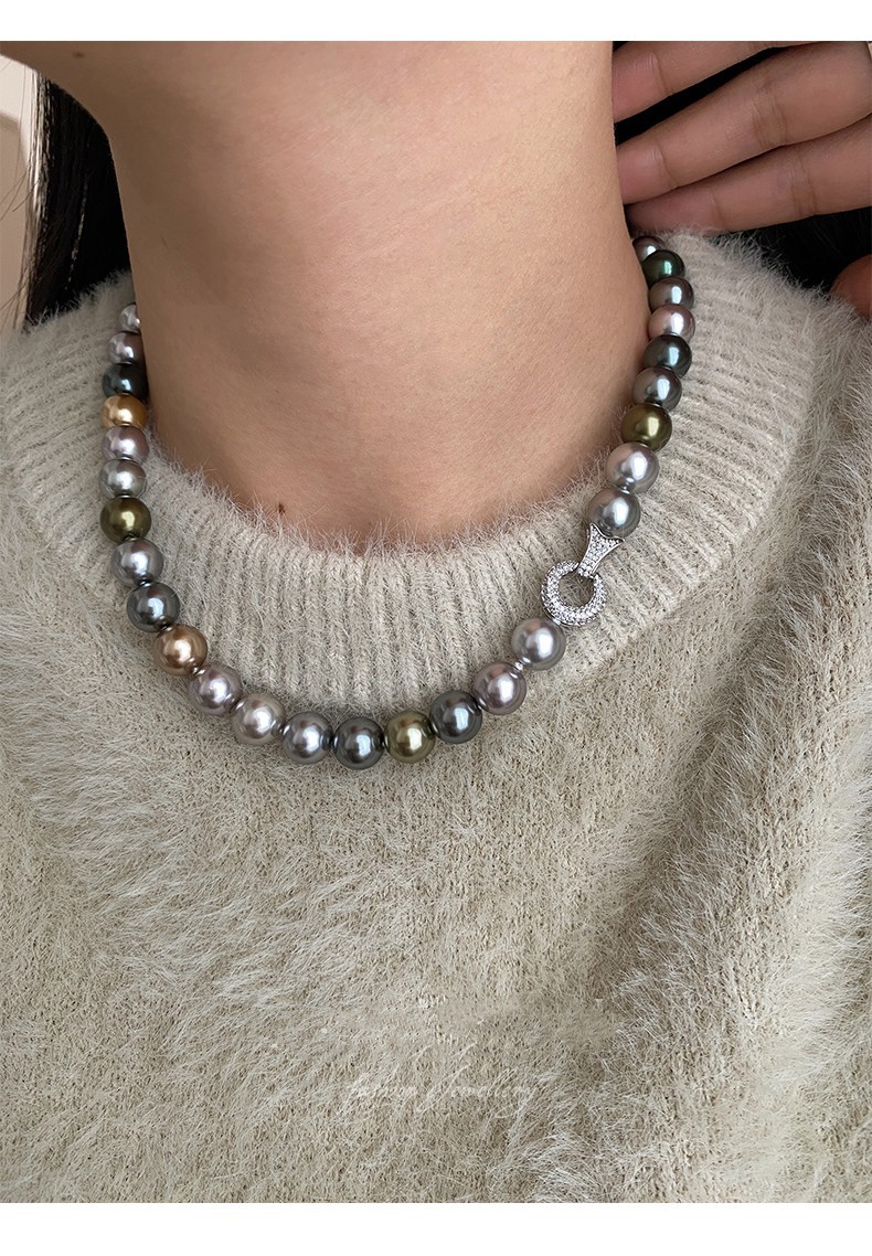 24新款黑蝶皇后珍珠项链大溪地莫兰迪混彩小众轻奢施家珍珠项链