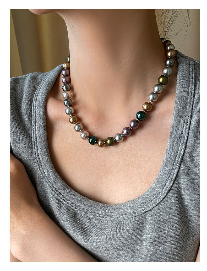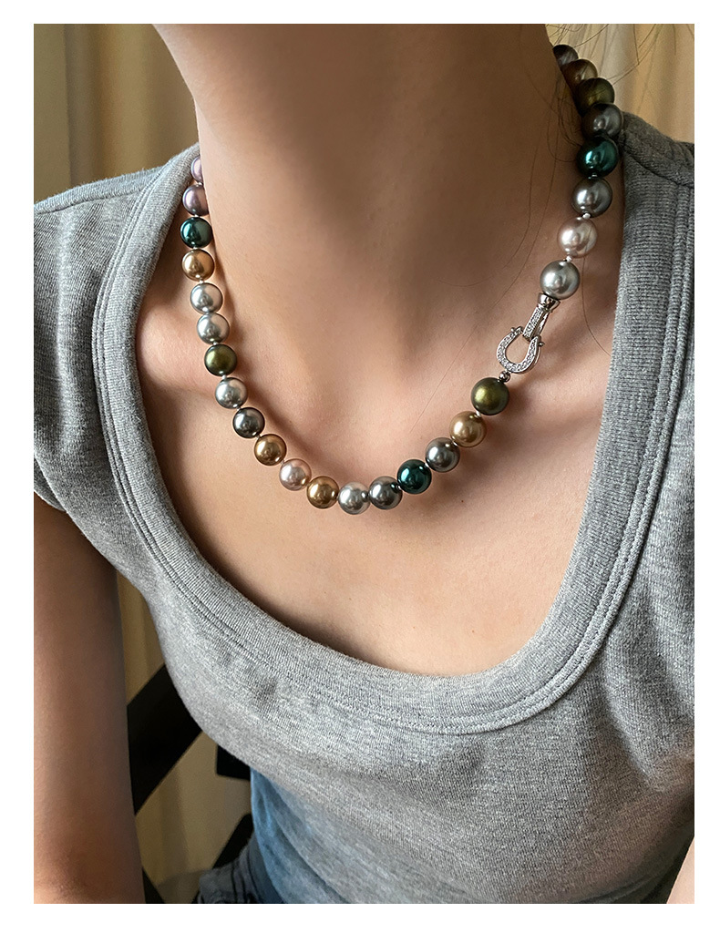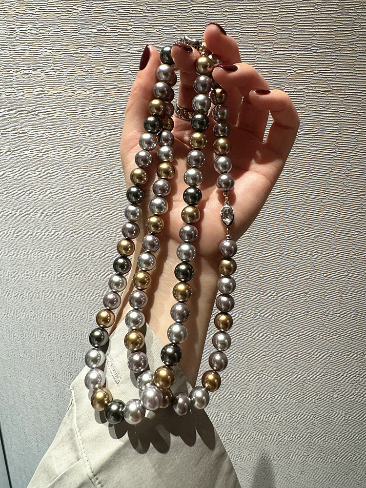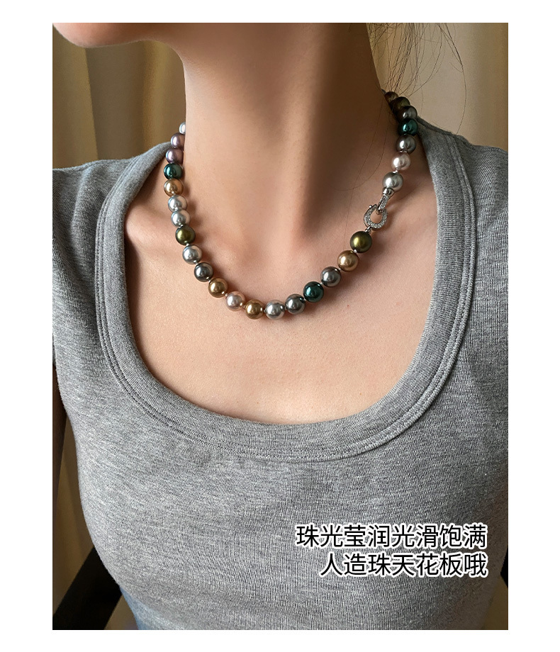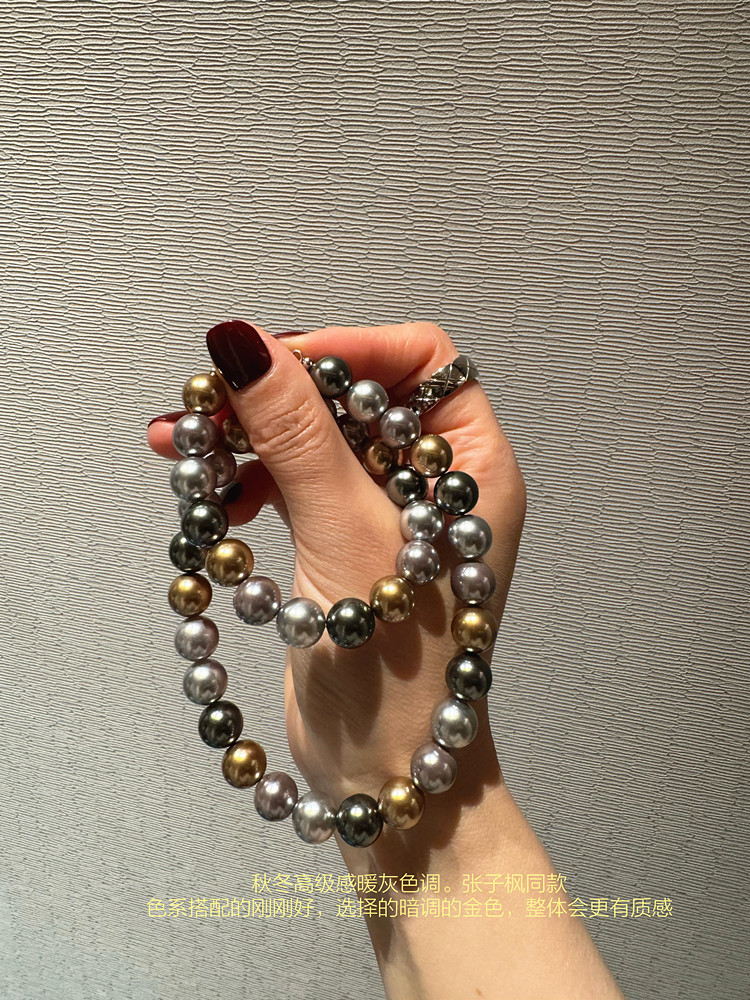 24新款黑蝶皇后珍珠项链大溪地莫兰迪混彩小众轻奢施家珍珠项链
