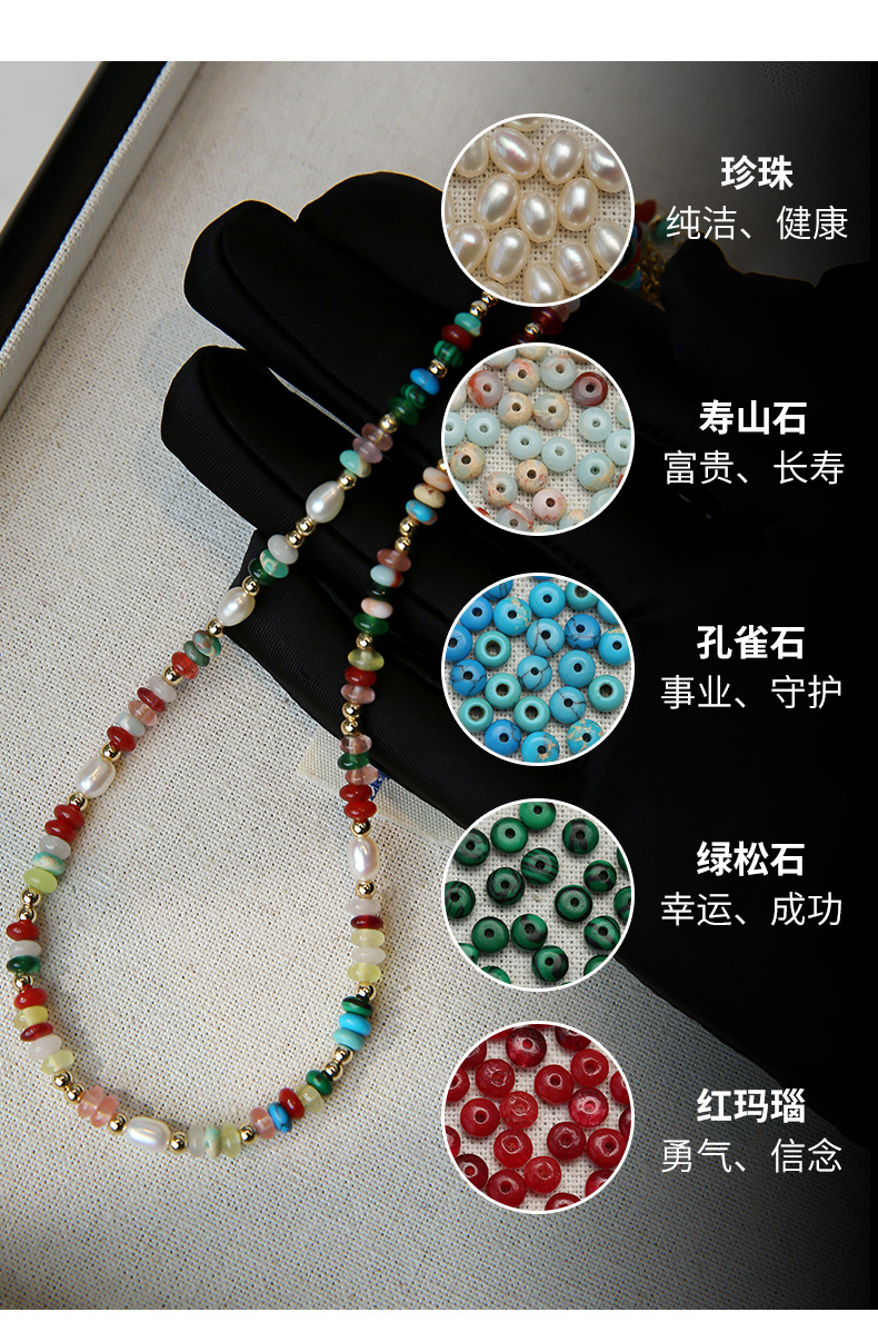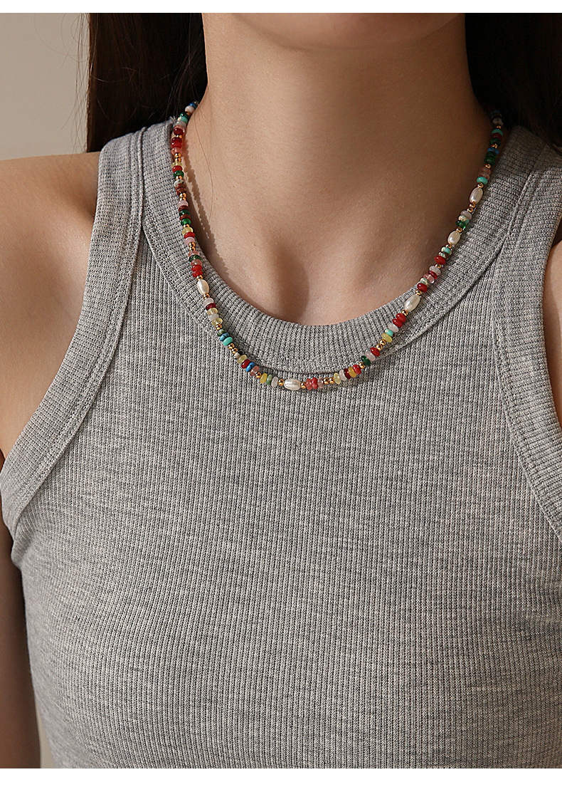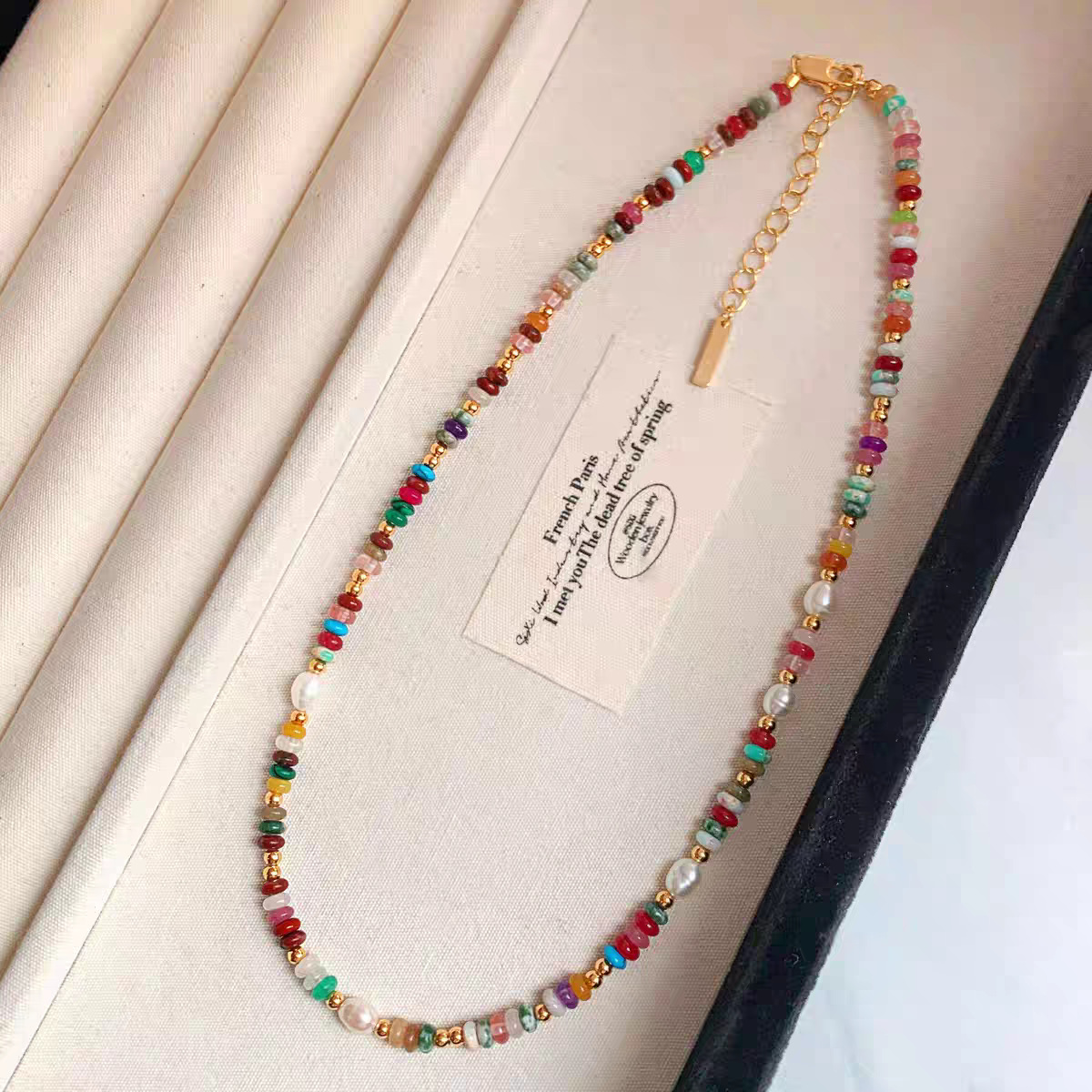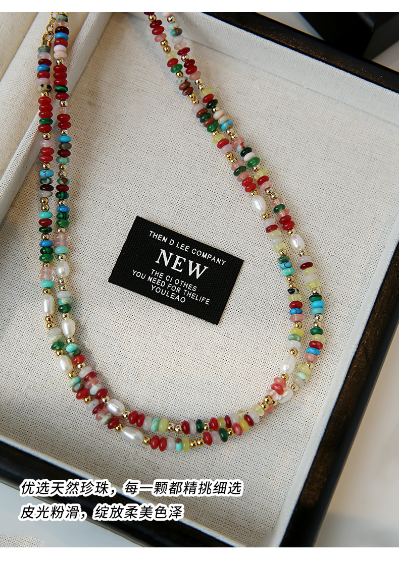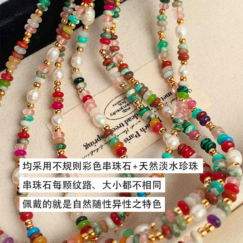 彩色多巴胺夏季珍珠项链女百搭高级感串珠度假民族风锁骨链饰品