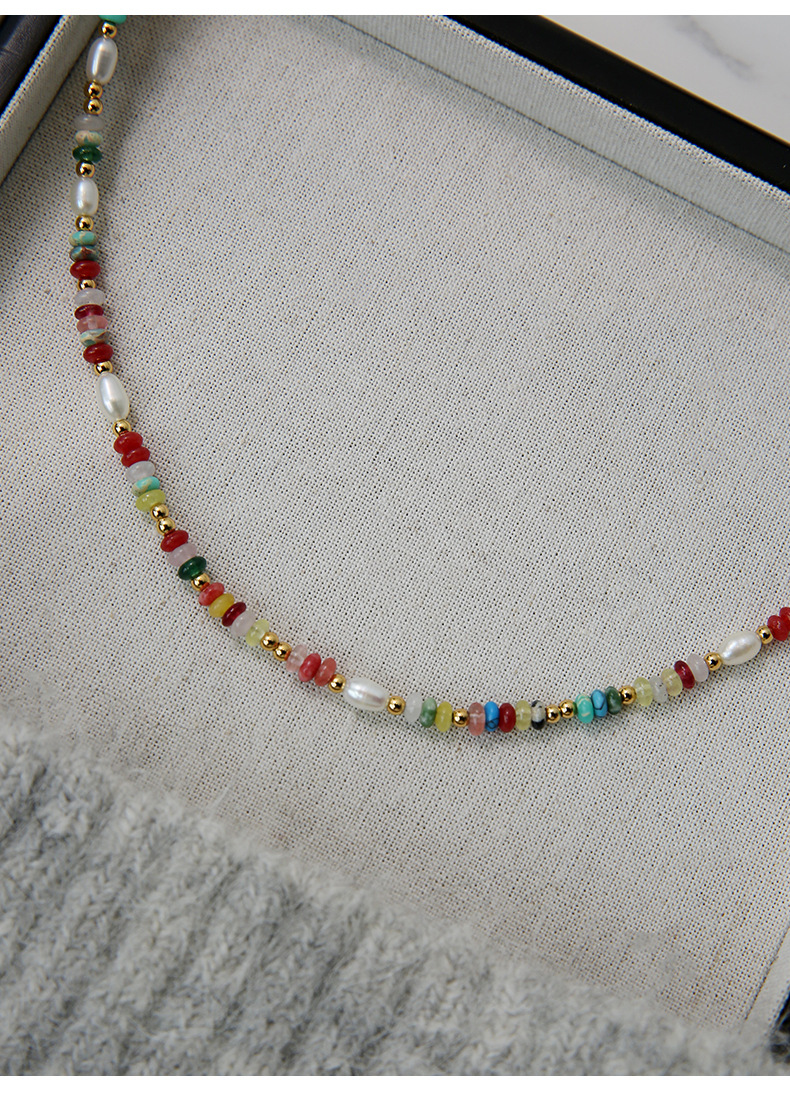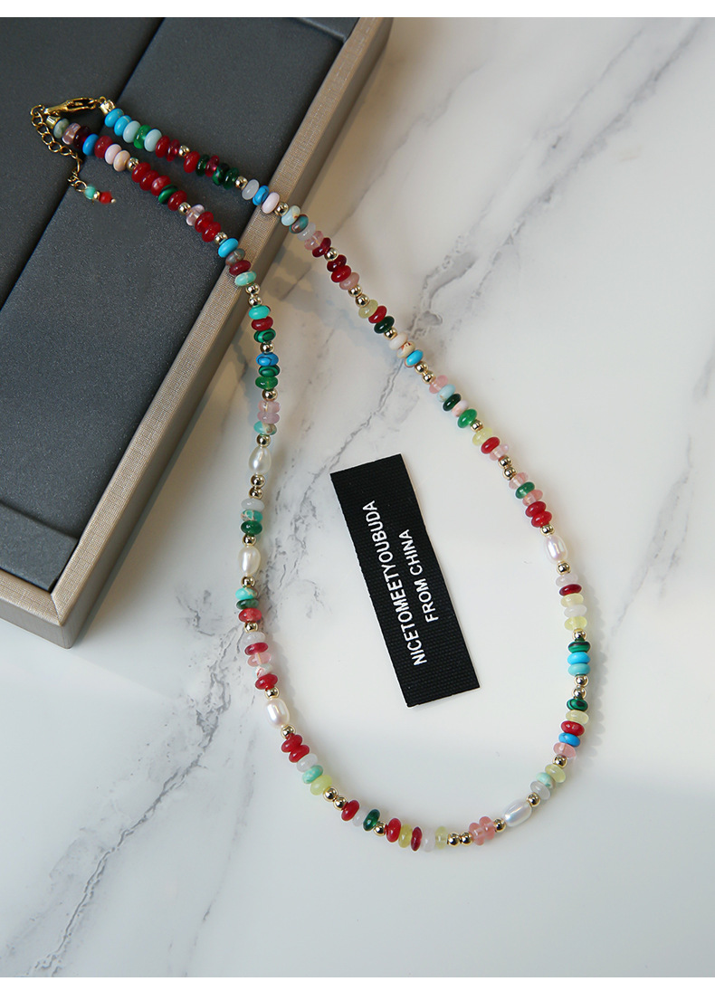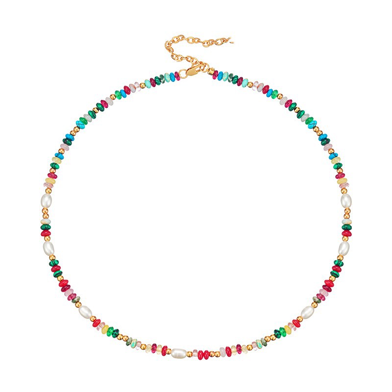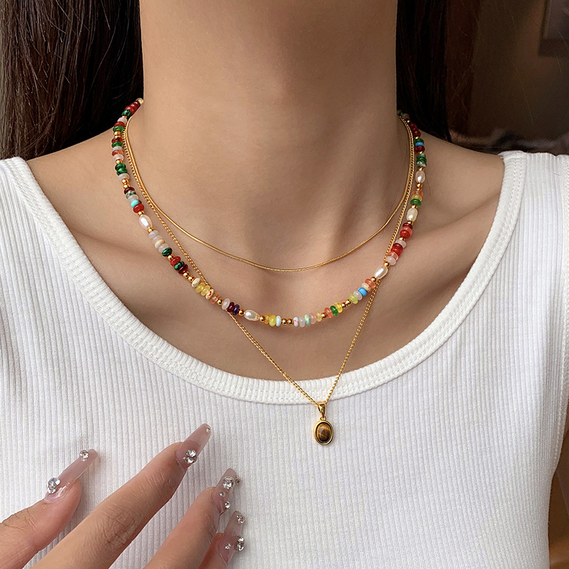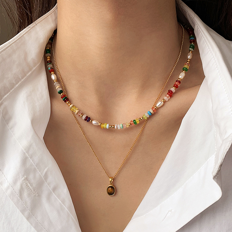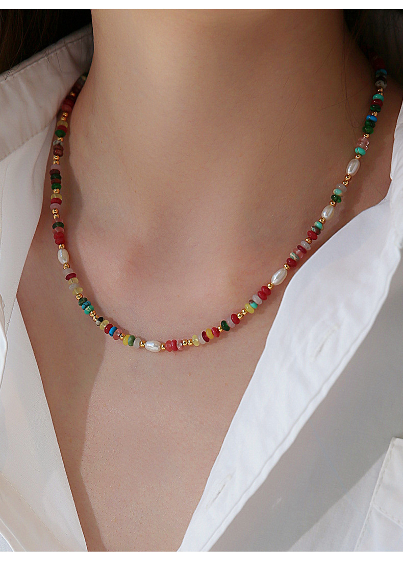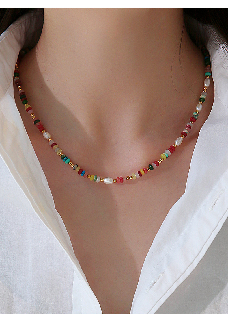 彩色多巴胺夏季珍珠项链女百搭高级感串珠度假民族风锁骨链饰品