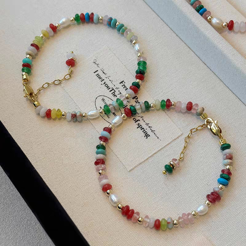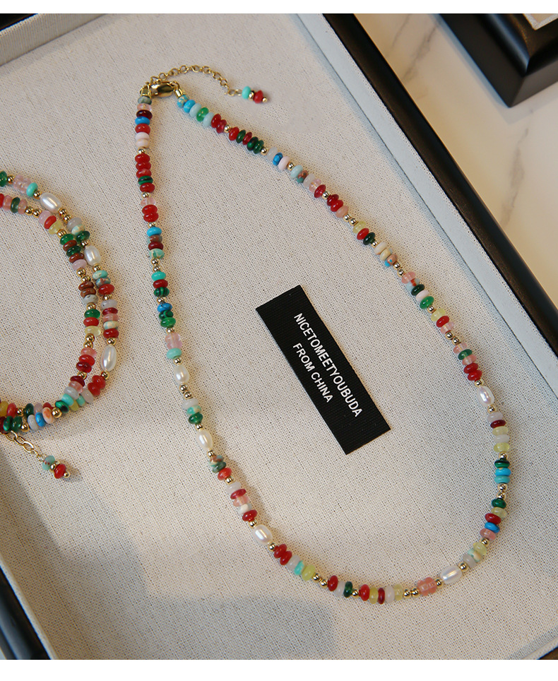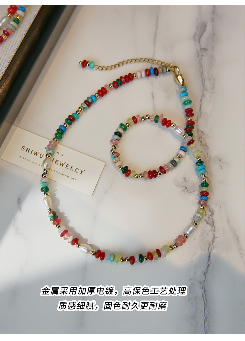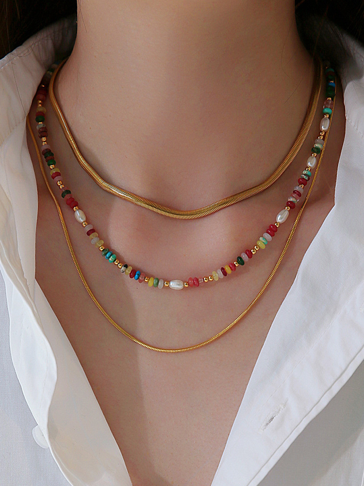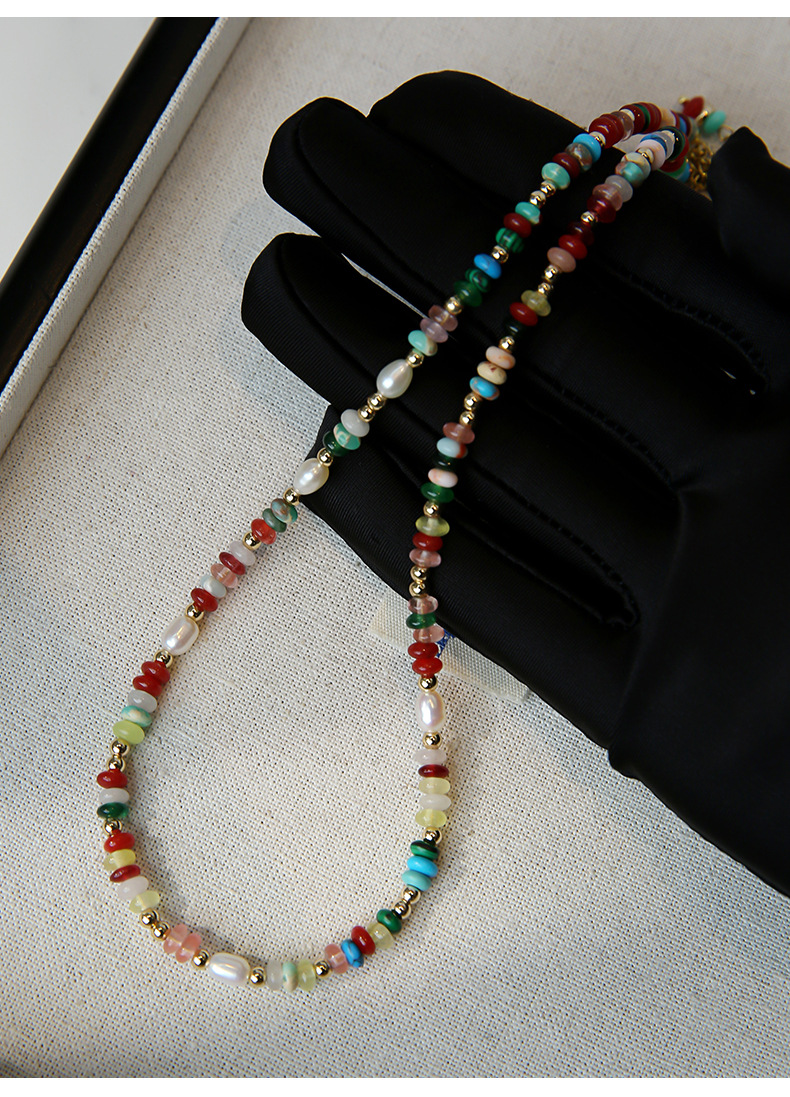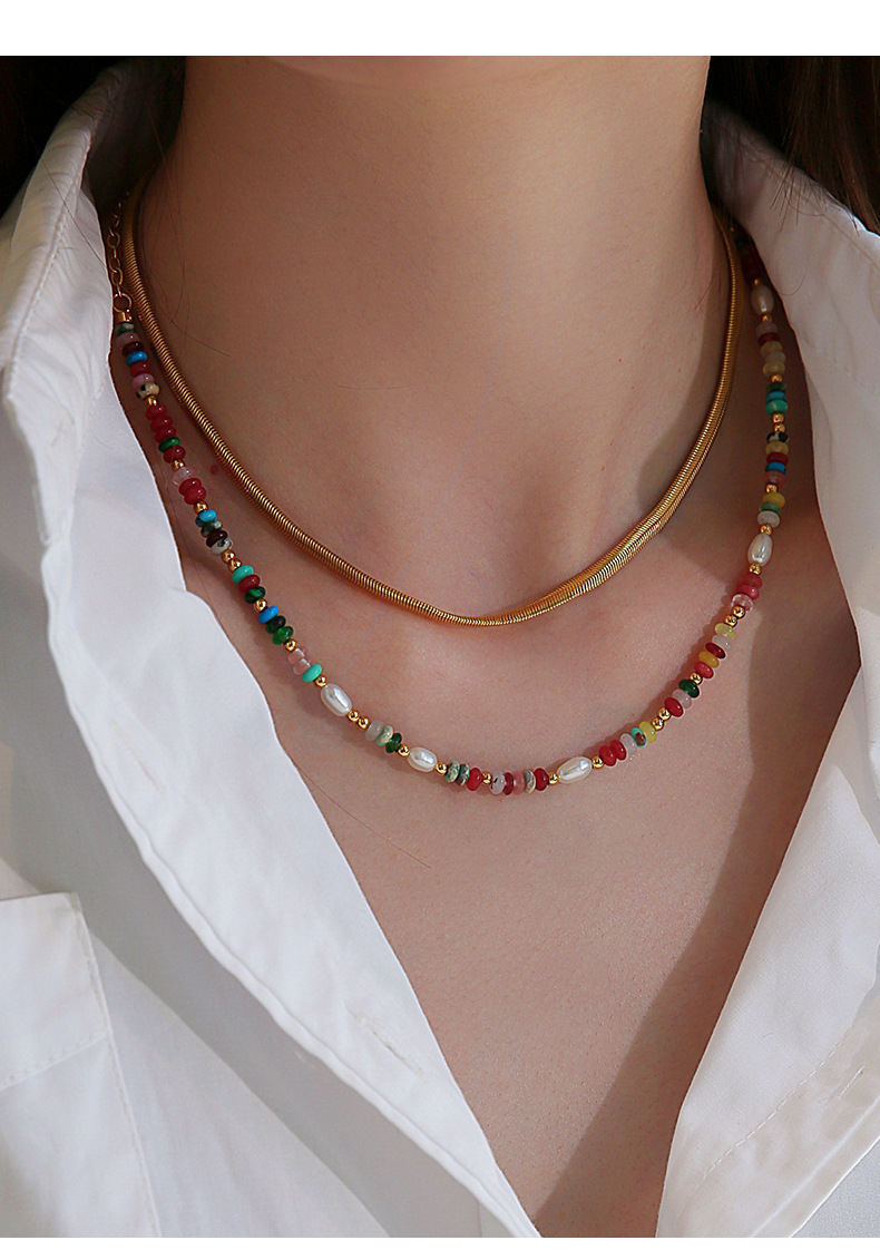 彩色多巴胺夏季珍珠项链女百搭高级感串珠度假民族风锁骨链饰品