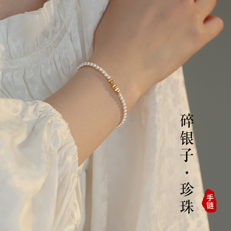 碎银子天然小米珠珍珠项链女颈链锁骨链毛衣链巴洛克米粒轻奢小众