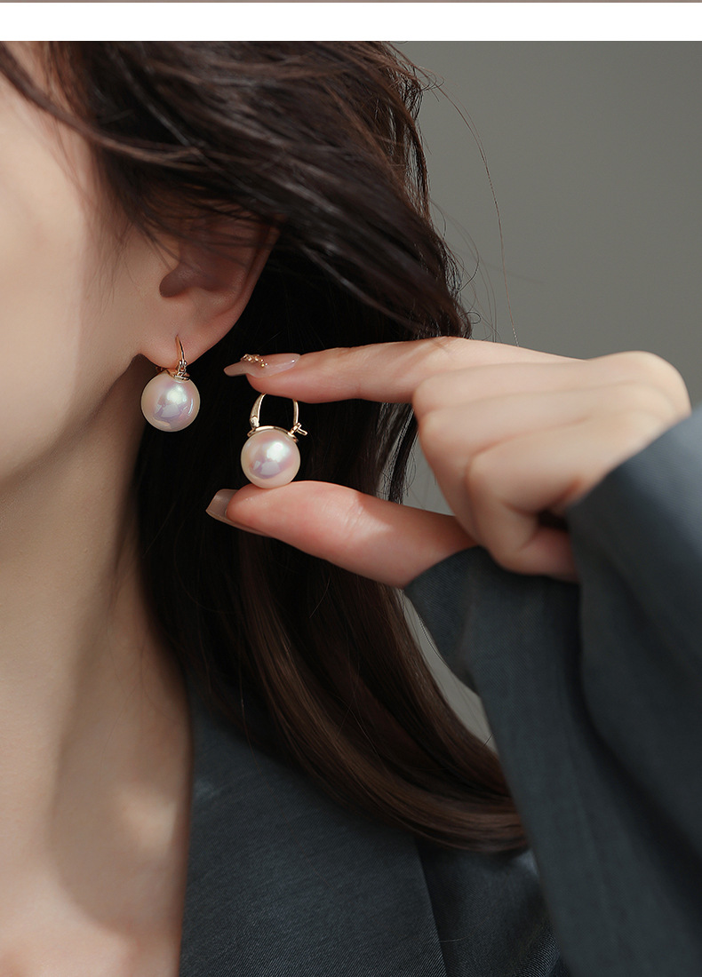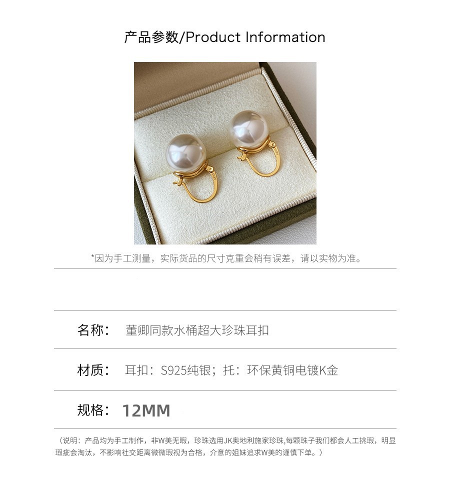 董卿同款水桶施家超大珍珠耳环2025新款高级感轻奢S925银茶壶耳扣