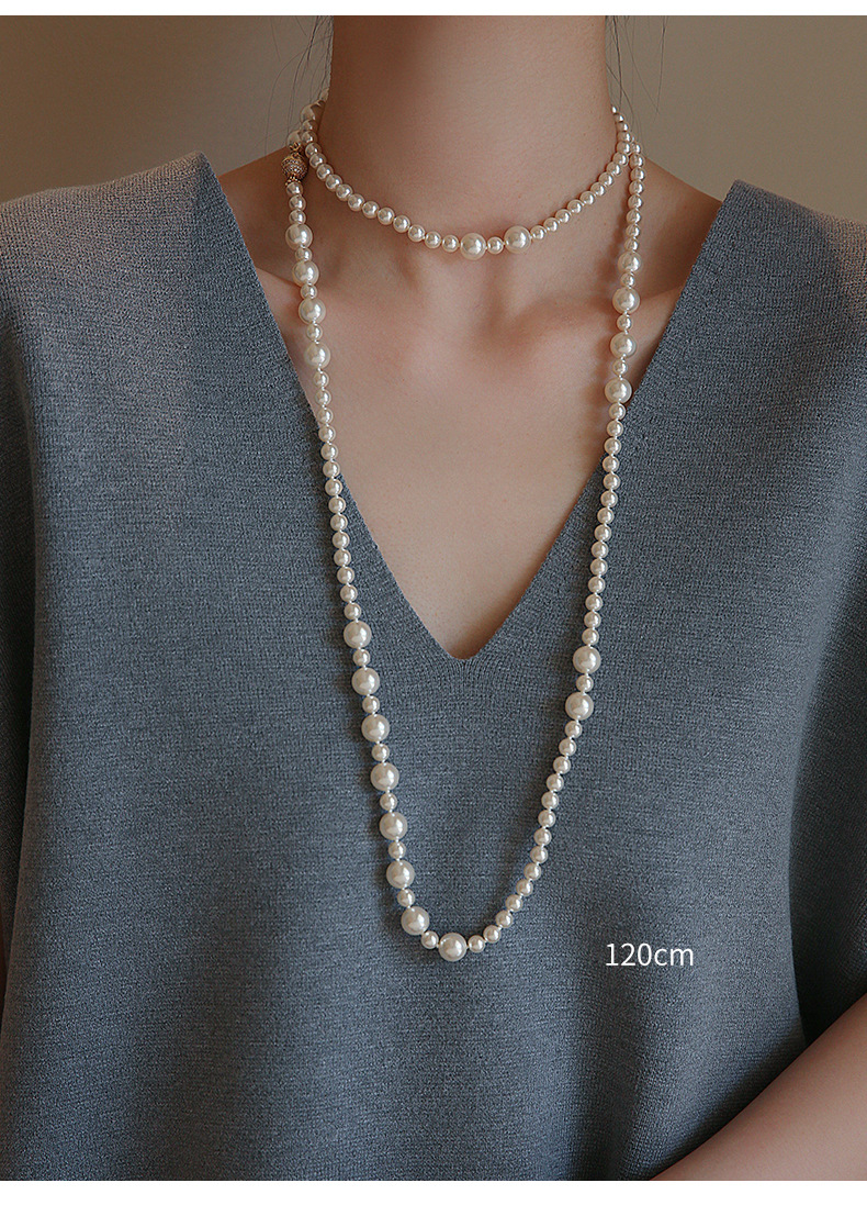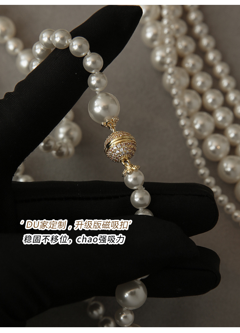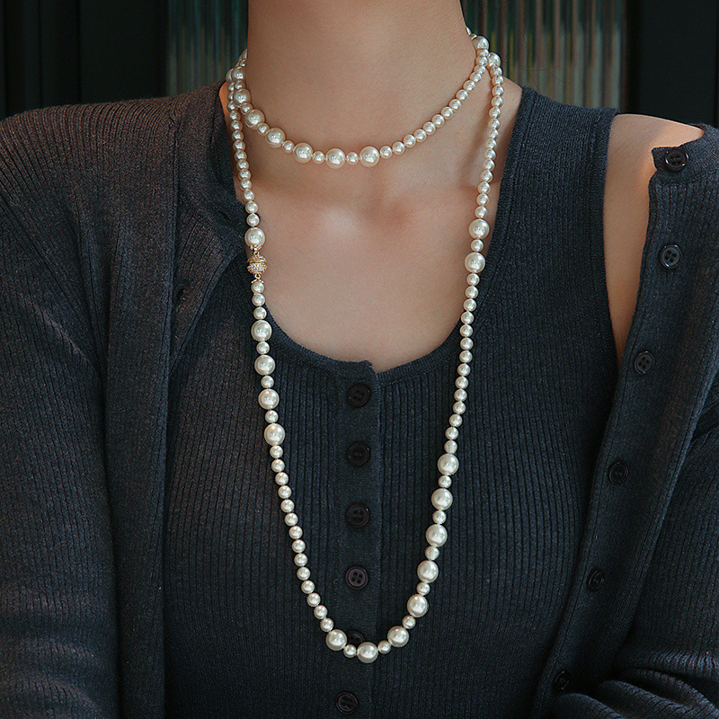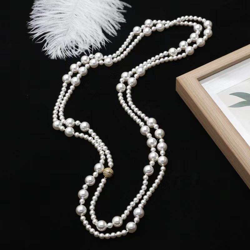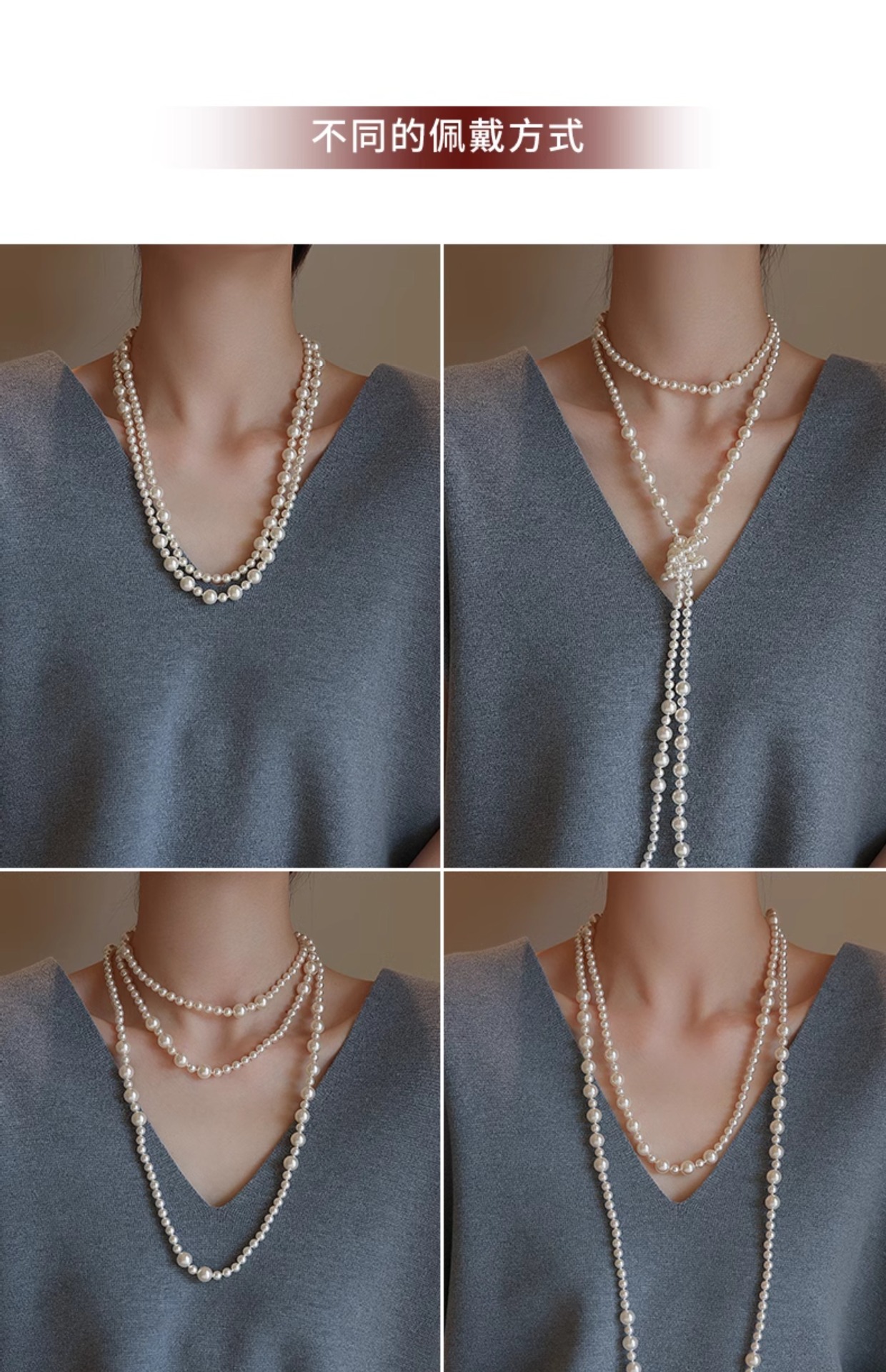 秋冬毛衣链女仿施家珍珠设计款百搭饰品小众双层叠戴长款珍珠项链
