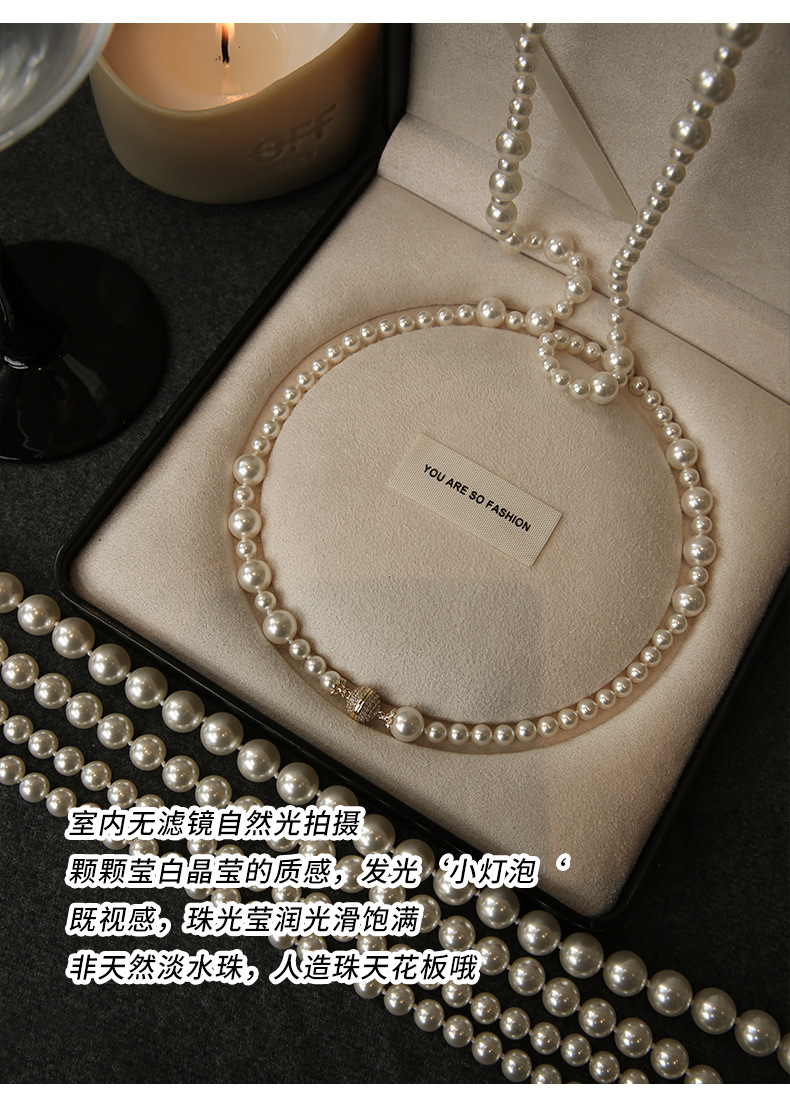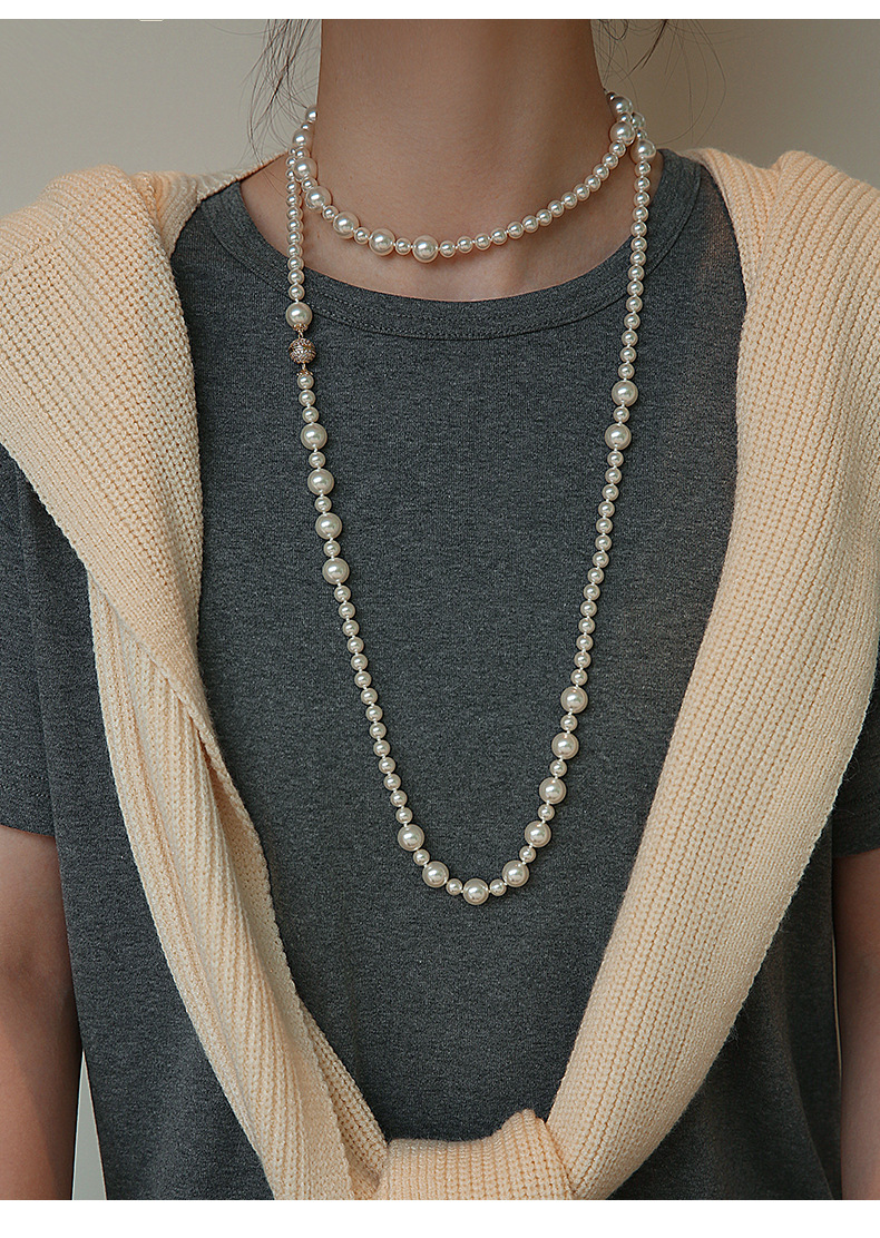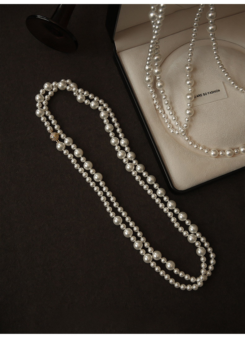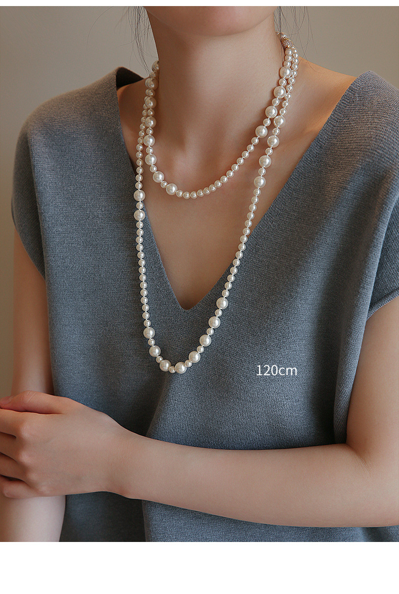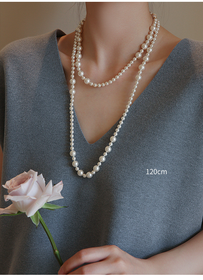 秋冬毛衣链女仿施家珍珠设计款百搭饰品小众双层叠戴长款珍珠项链