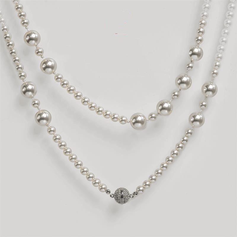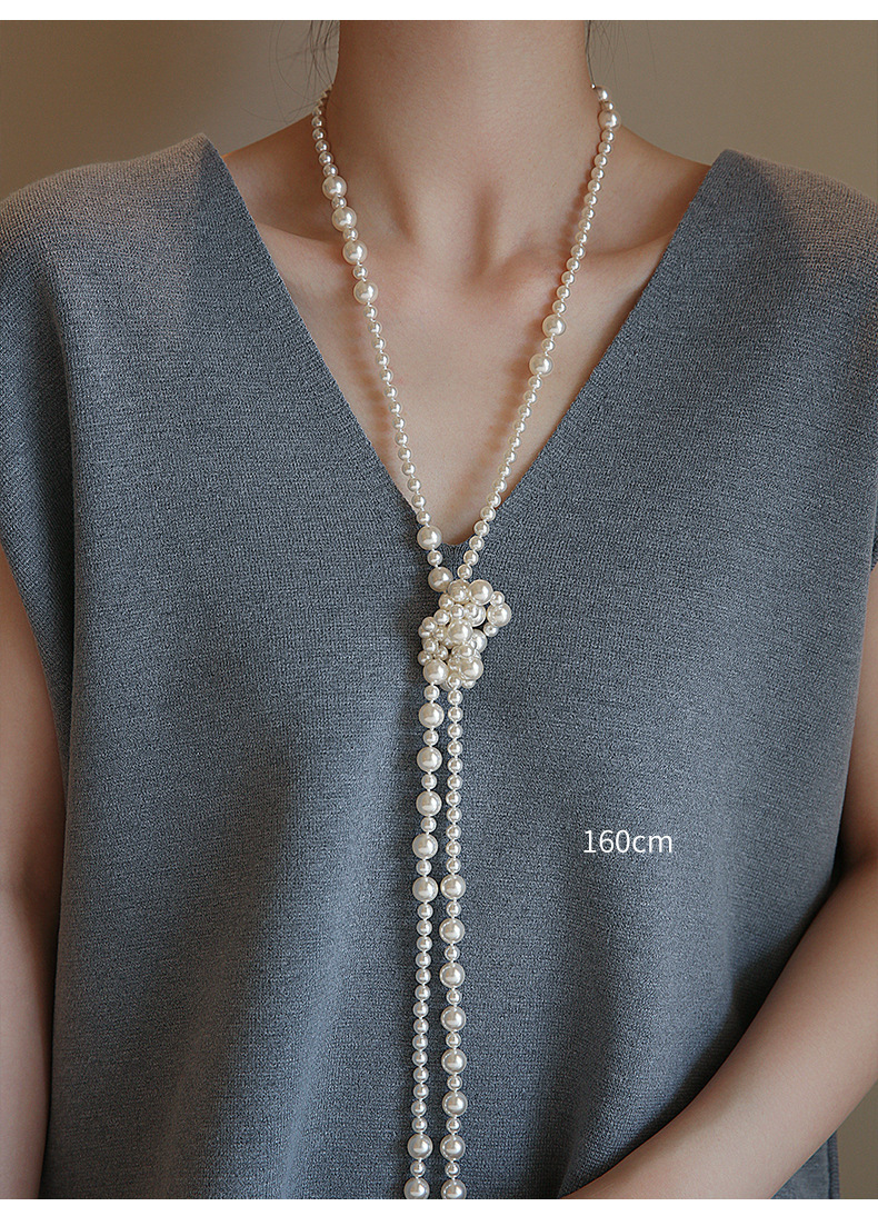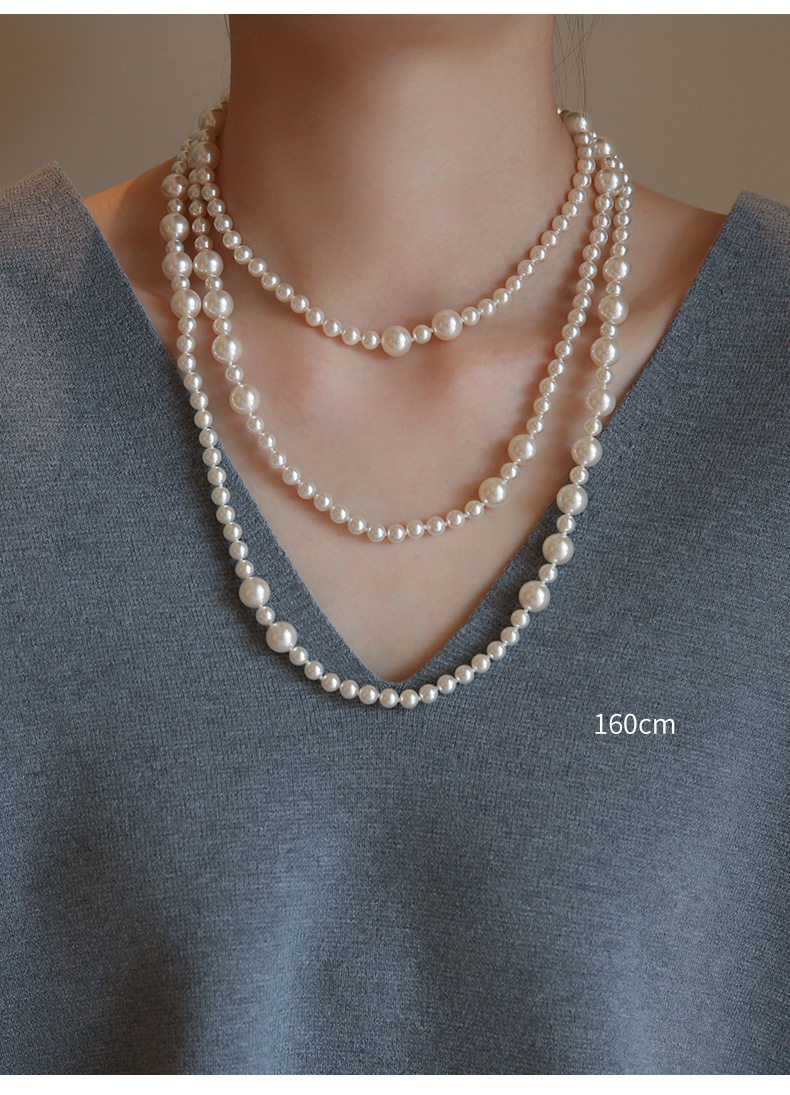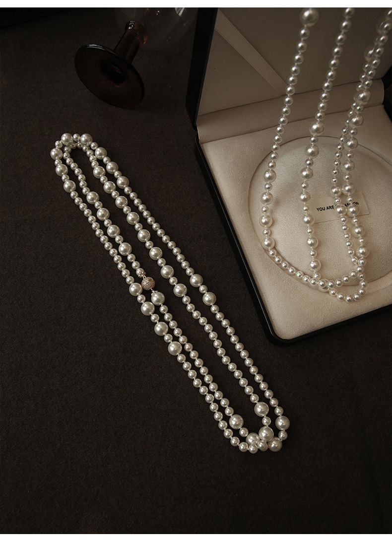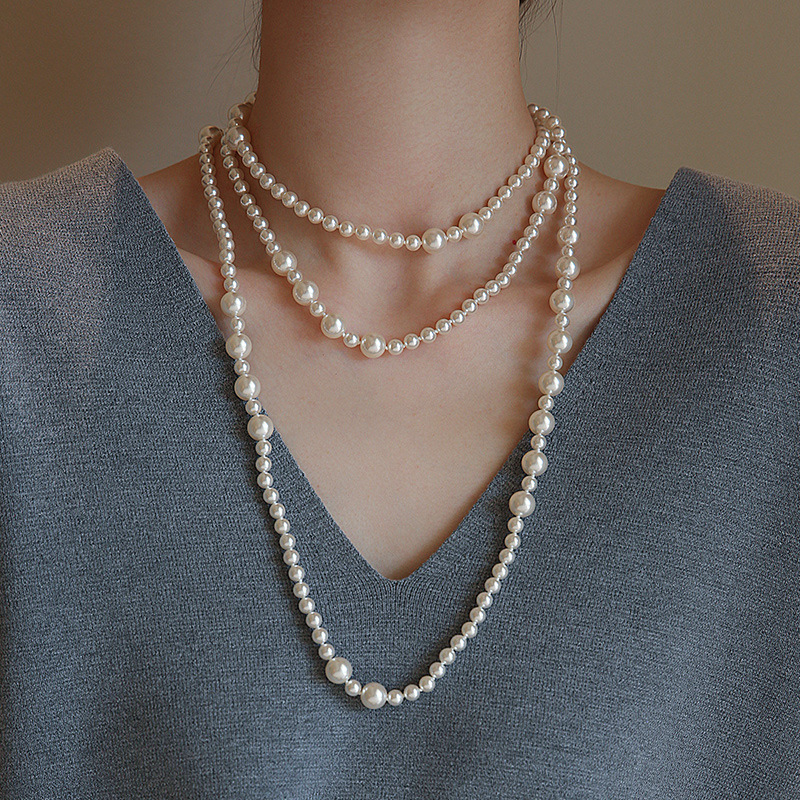 秋冬毛衣链女仿施家珍珠设计款百搭饰品小众双层叠戴长款珍珠项链