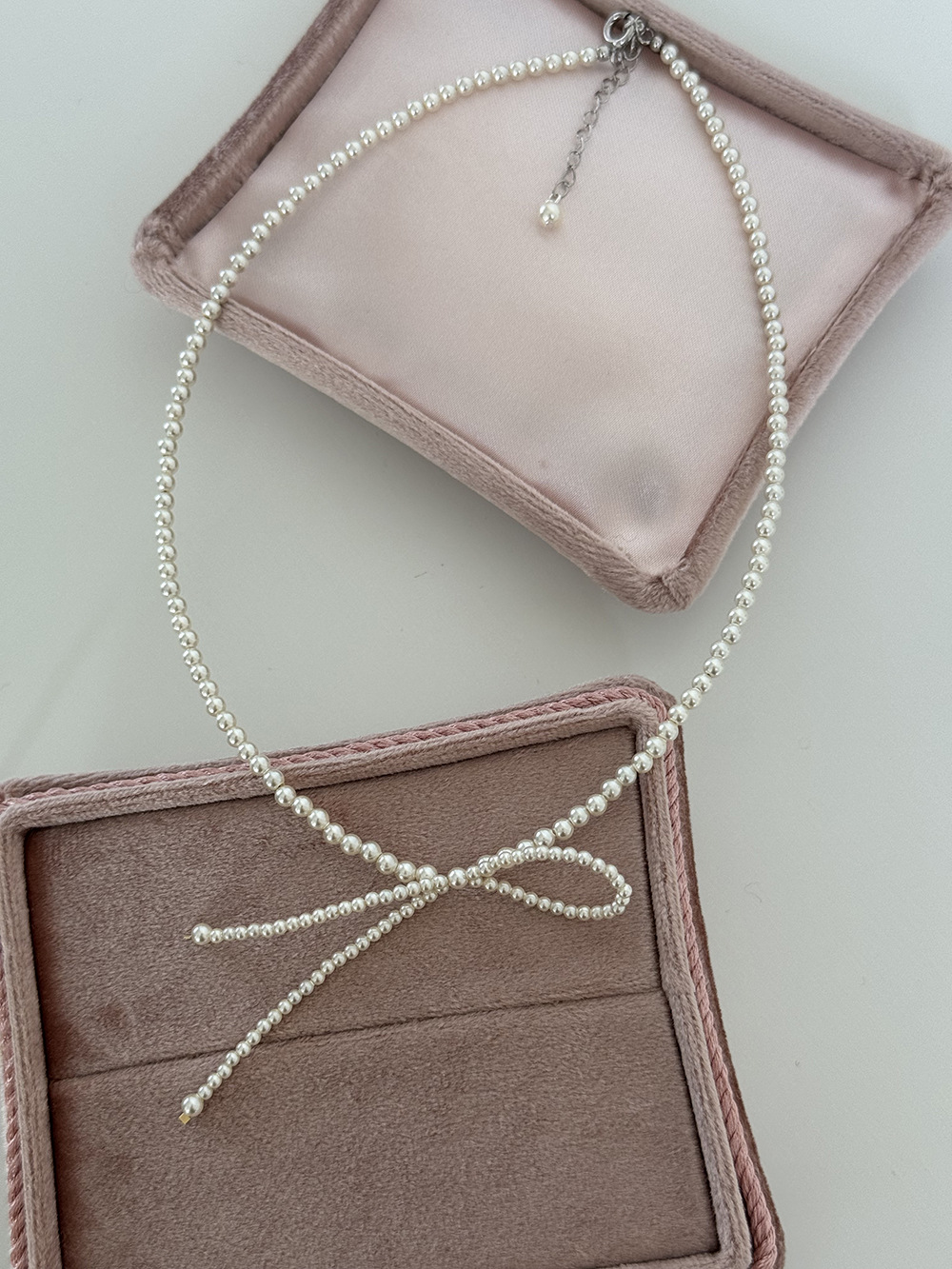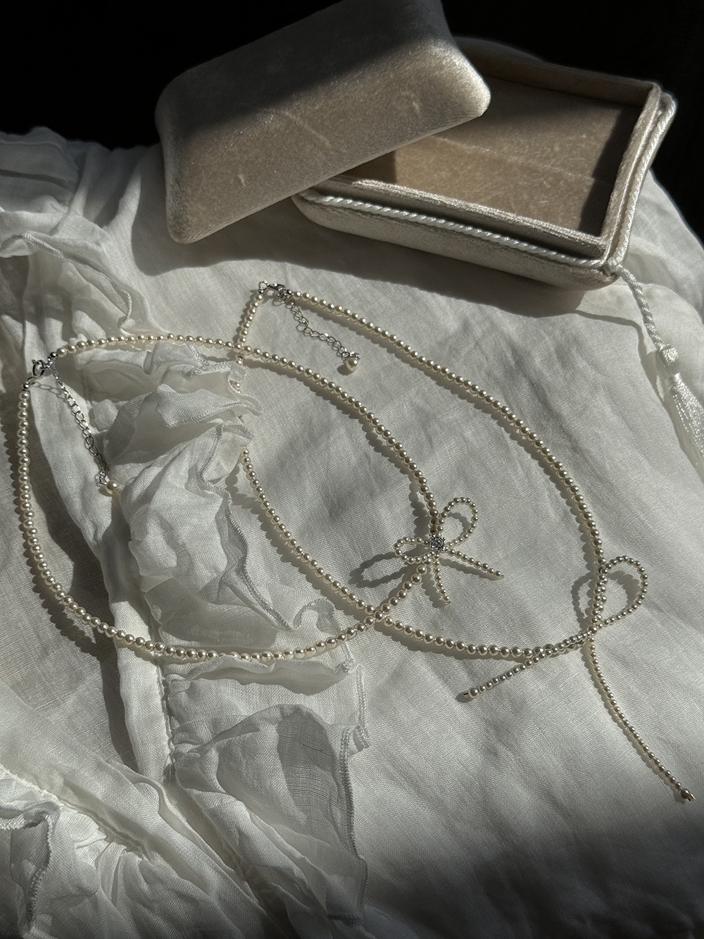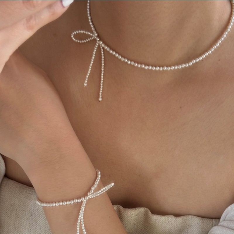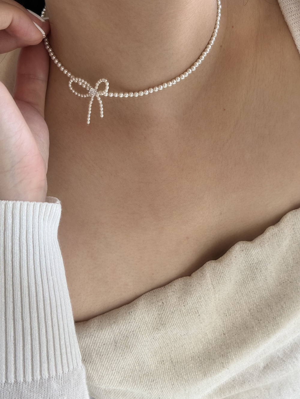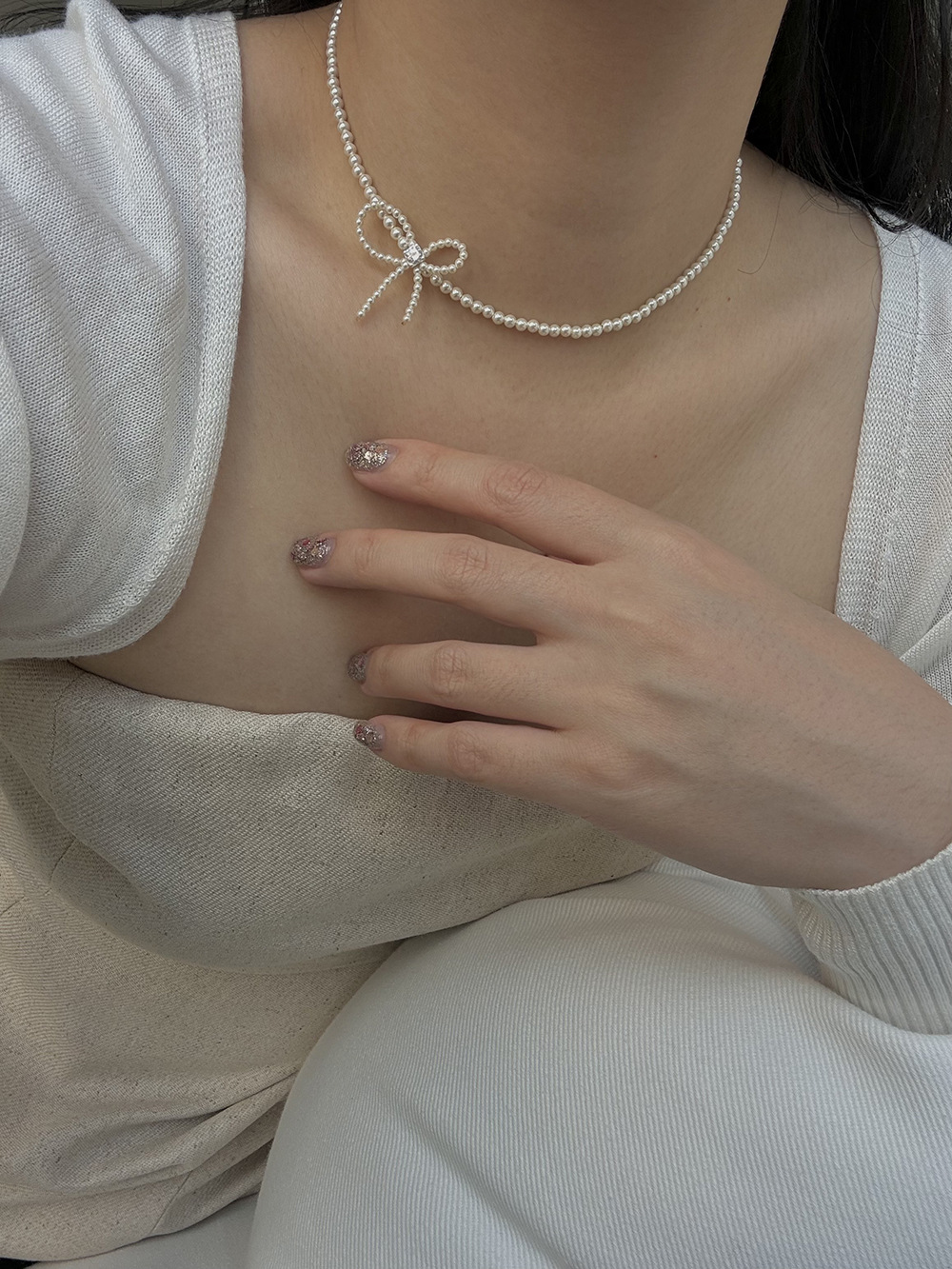 在逃公主甜美芭蕾风珍珠蝴蝶结choker浪漫温柔少女心项链纯银