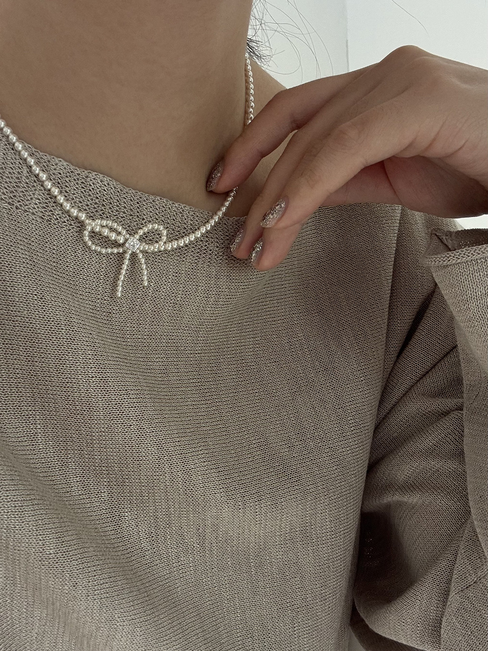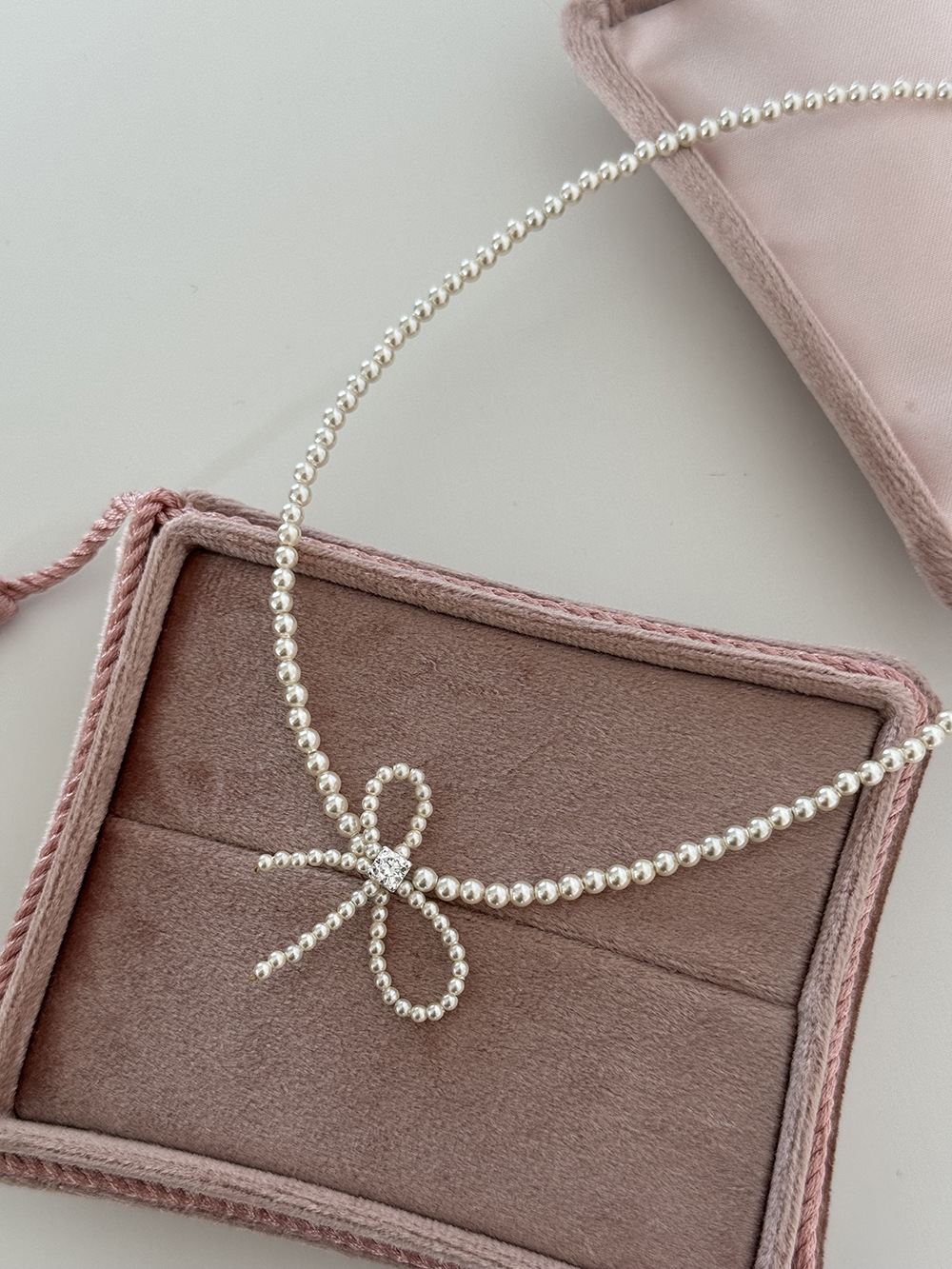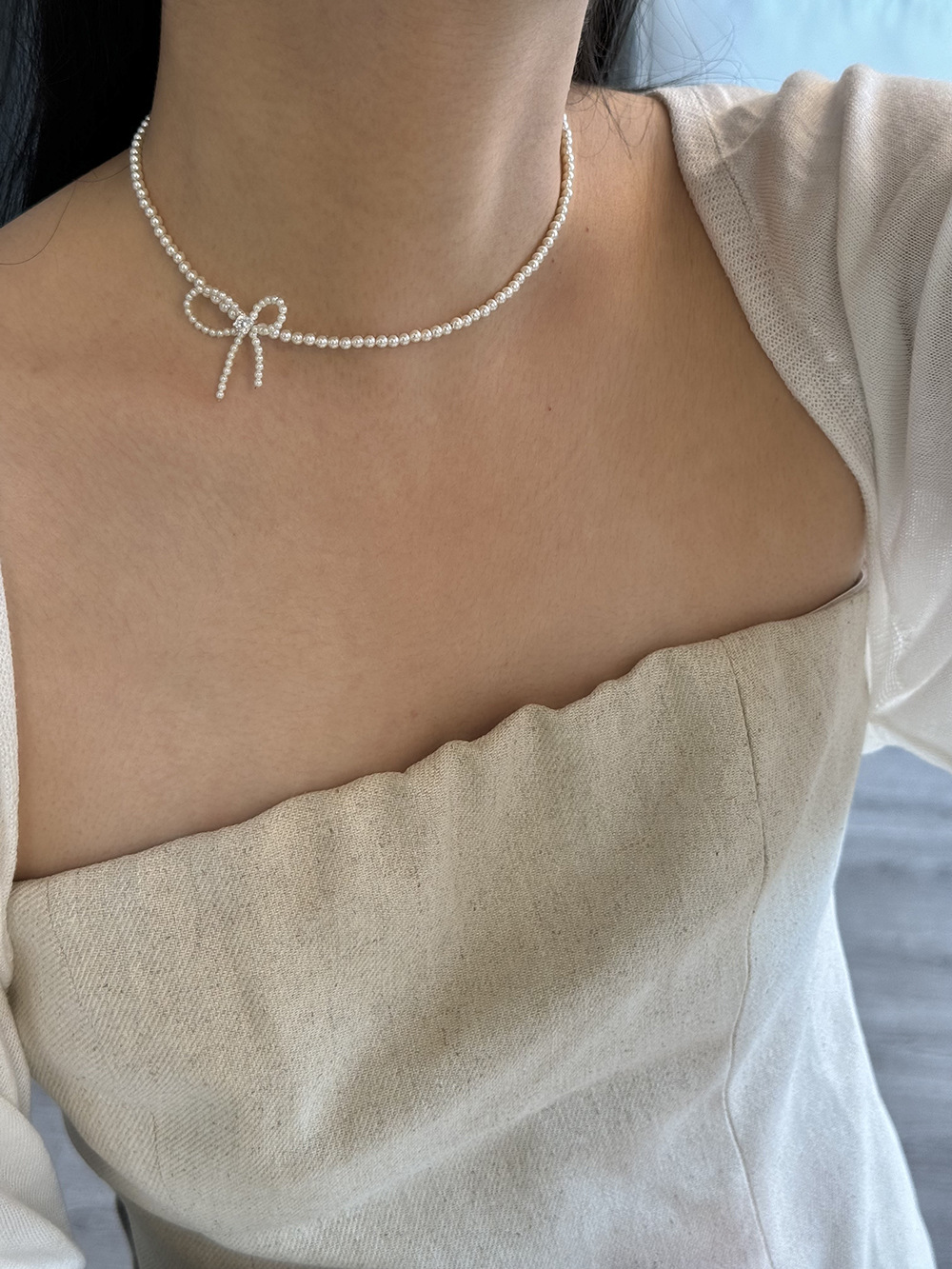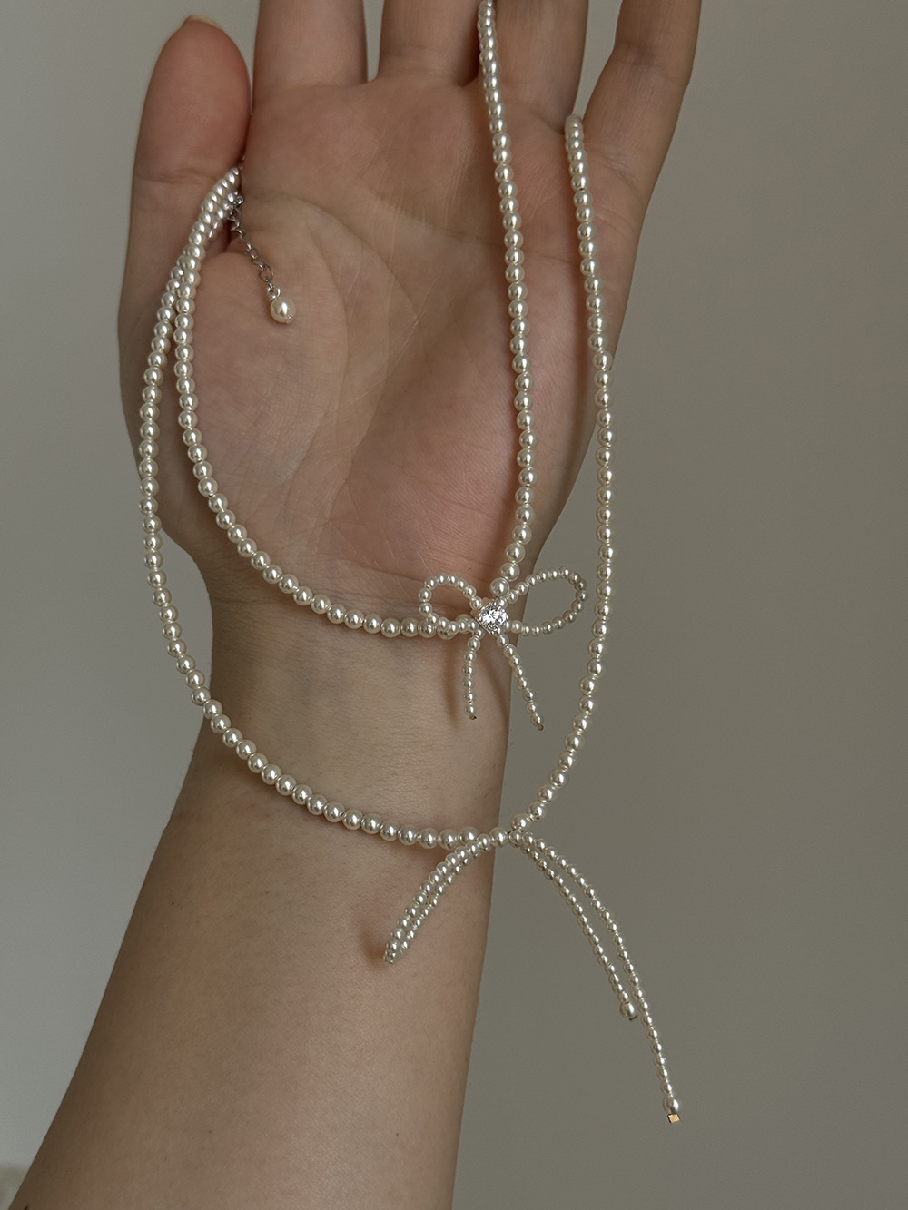 在逃公主甜美芭蕾风珍珠蝴蝶结choker浪漫温柔少女心项链纯银
