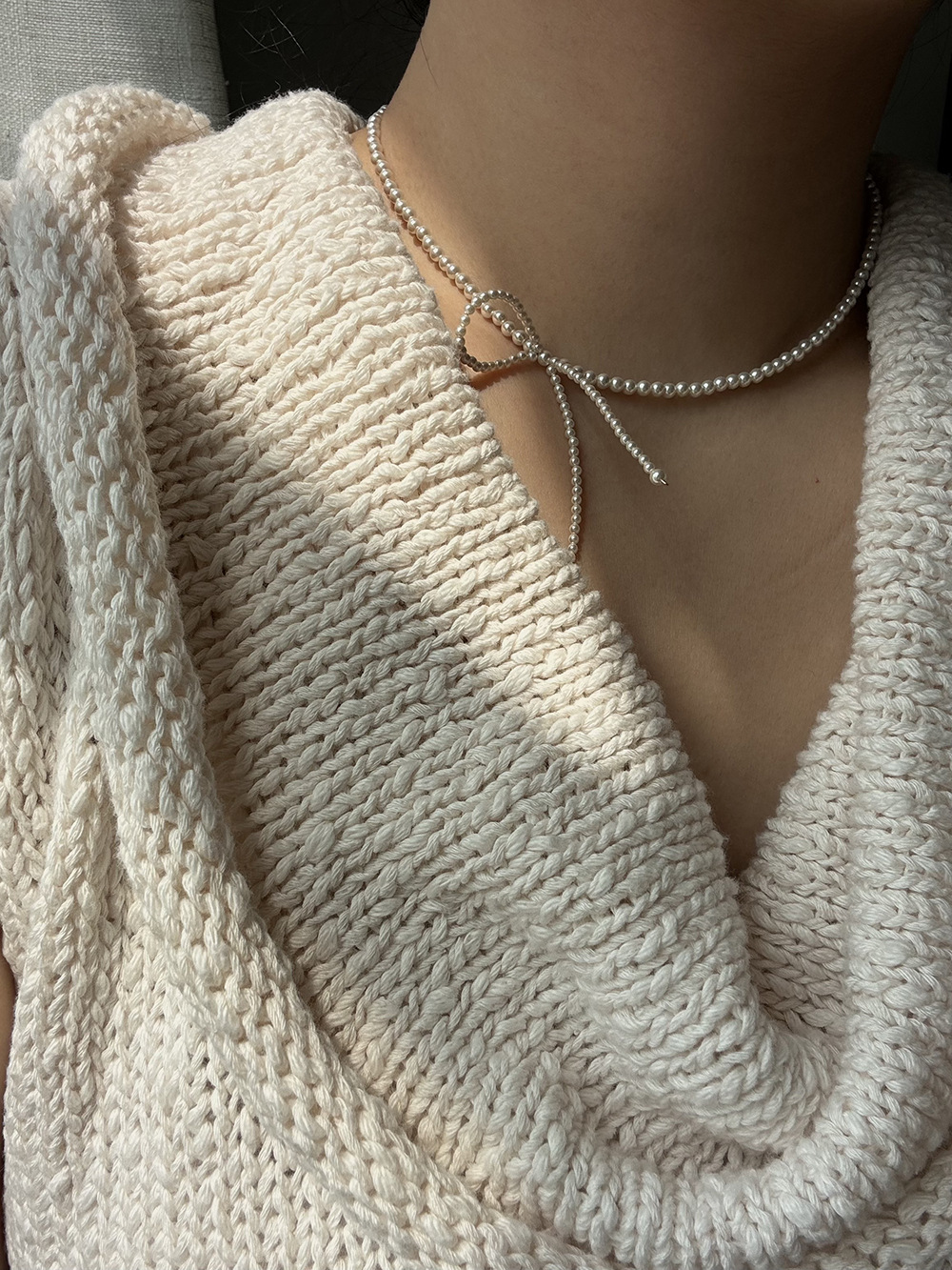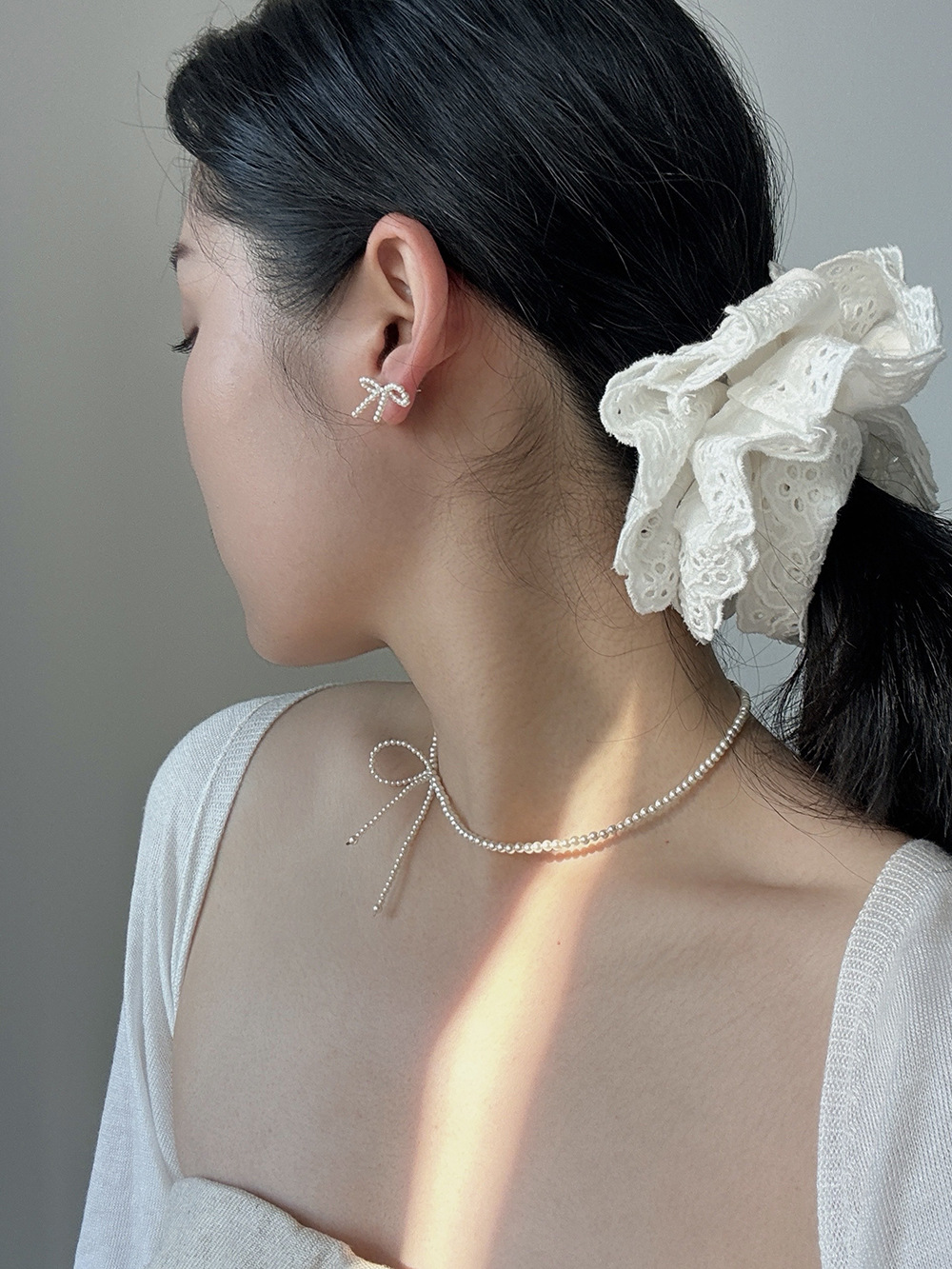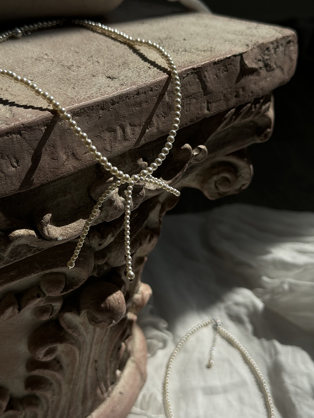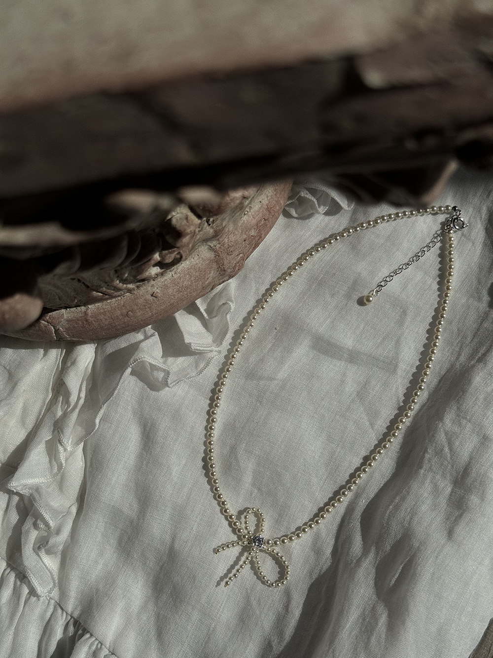 在逃公主甜美芭蕾风珍珠蝴蝶结choker浪漫温柔少女心项链纯银