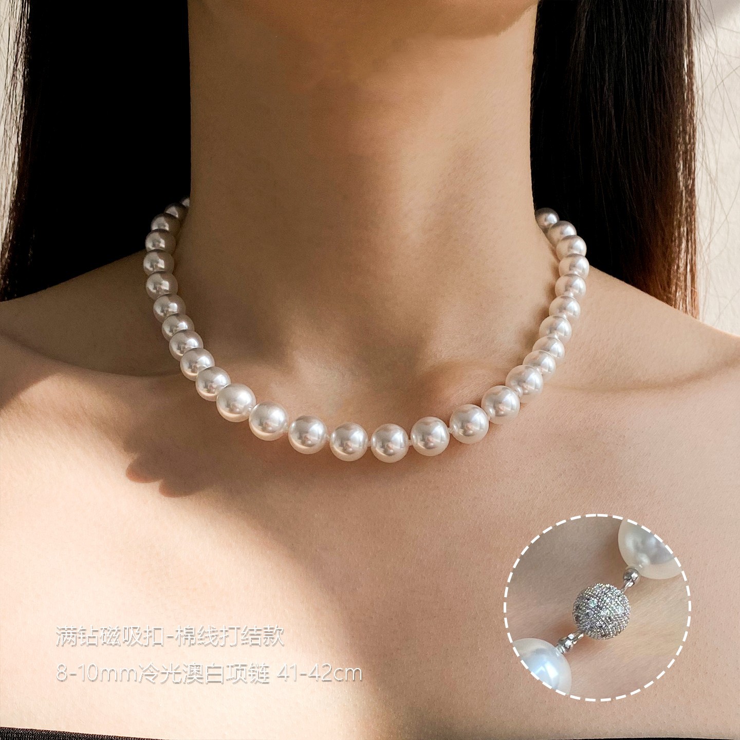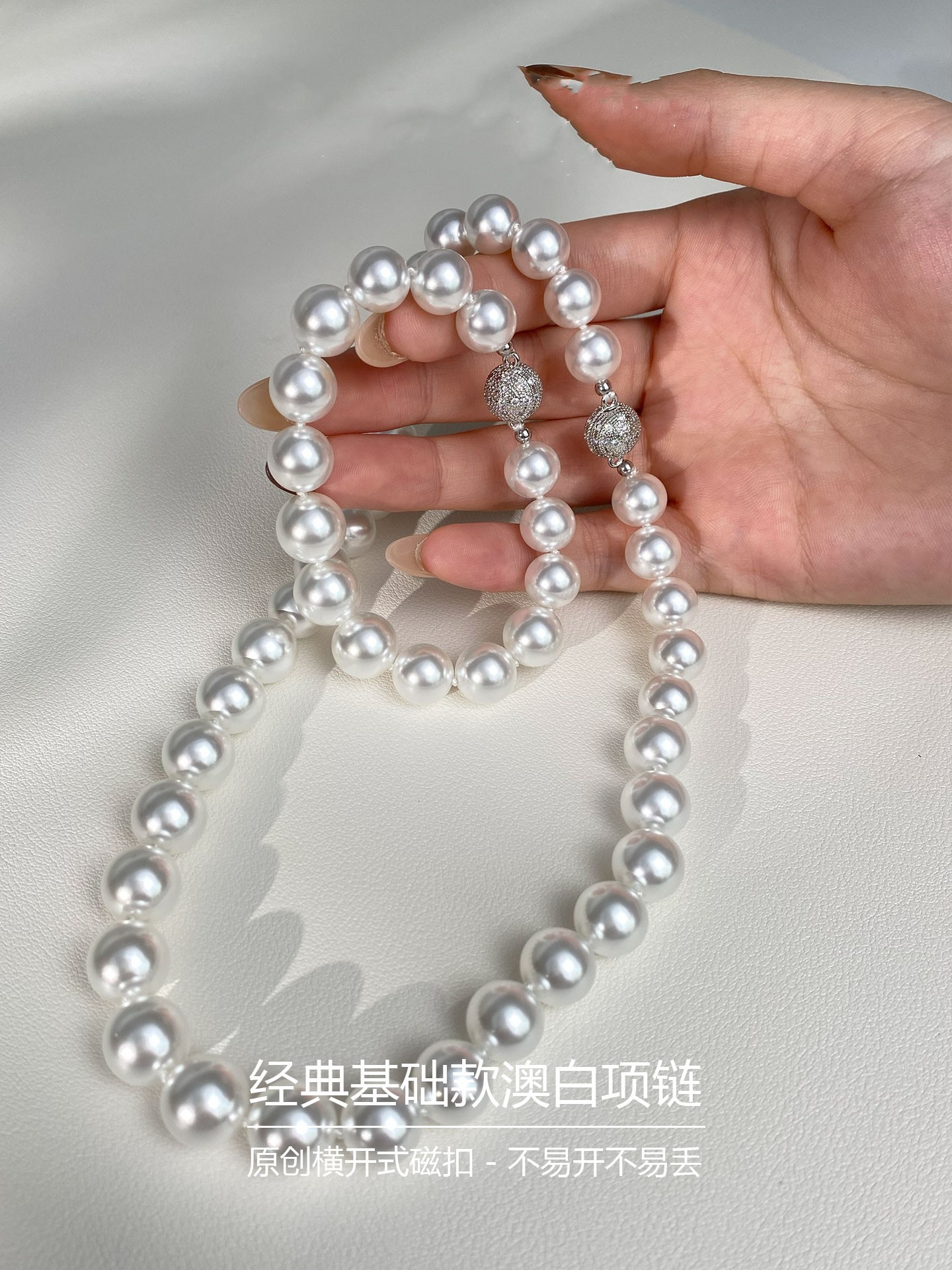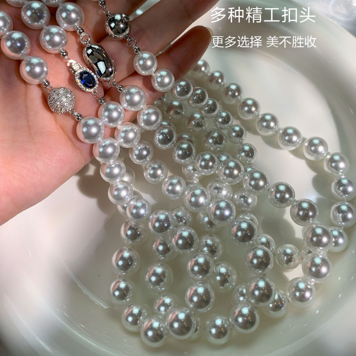 一条毕业!微渐变更拟真人造澳白珍珠项链丝绸冷白光棉线手工串珠