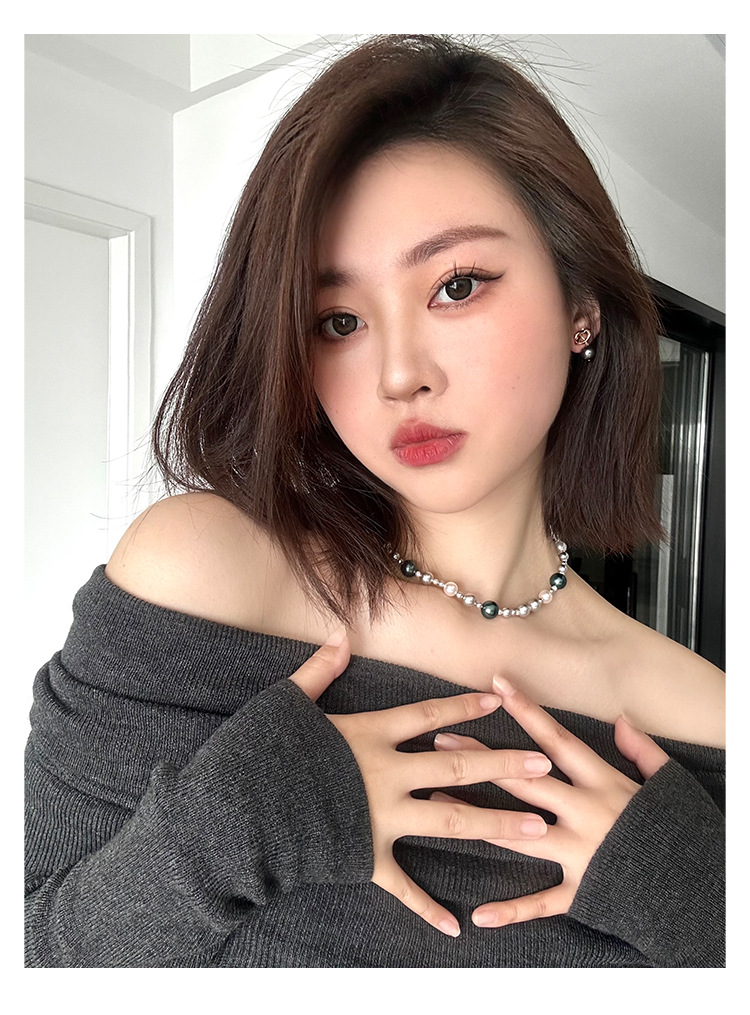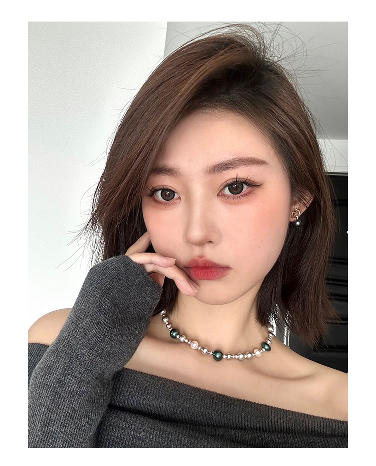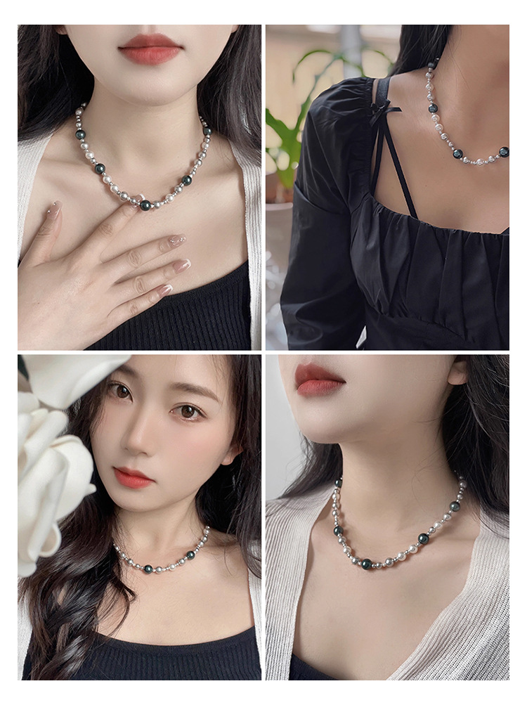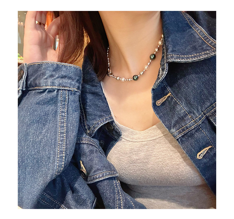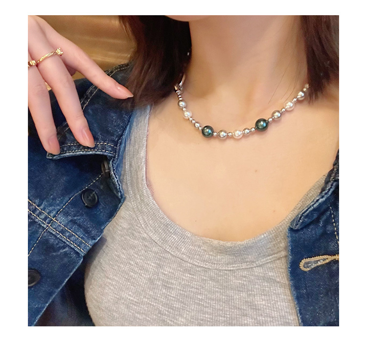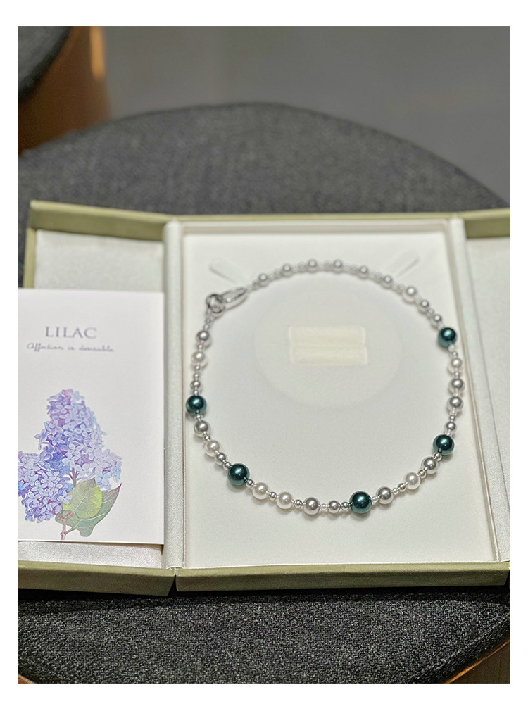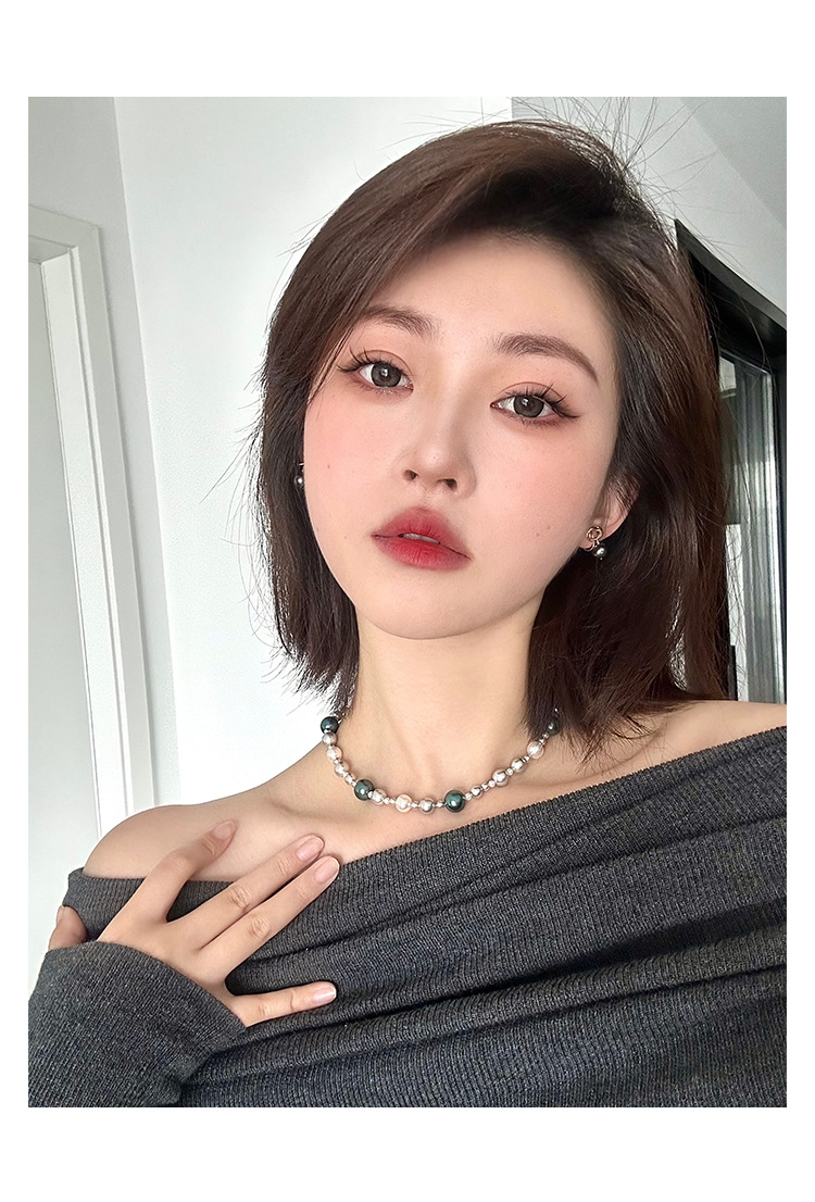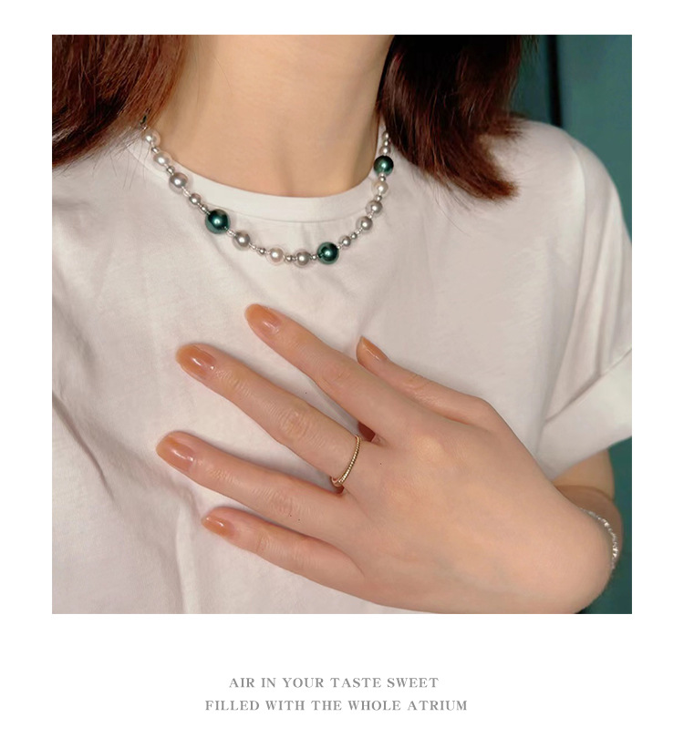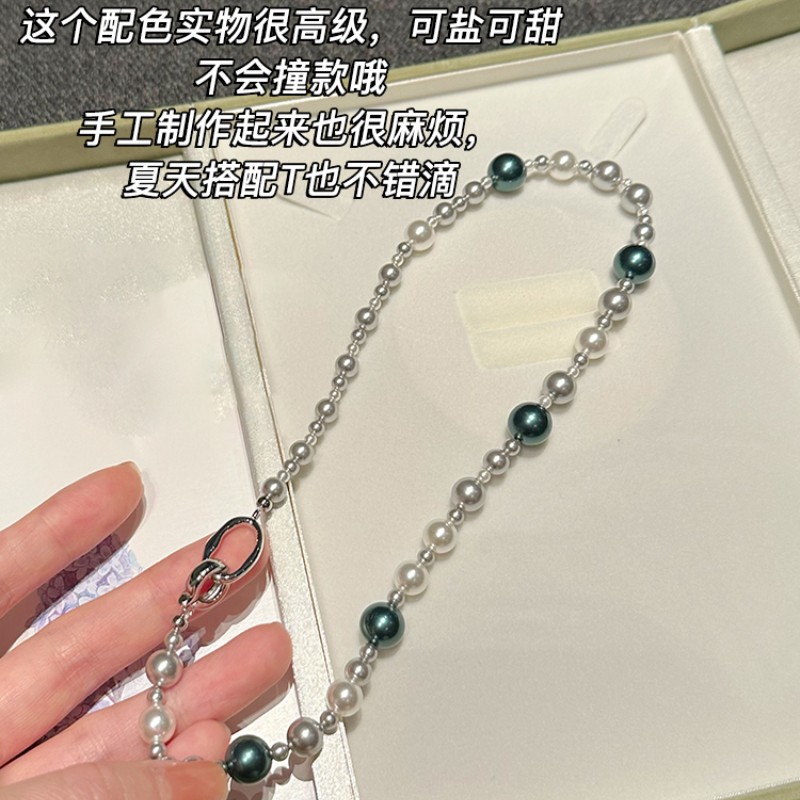 2024新款孔雀绿混彩设计高级感珍珠项链小众复古个性气质锁骨链女