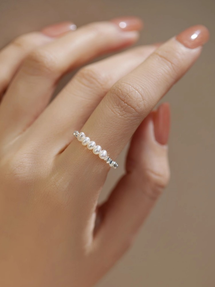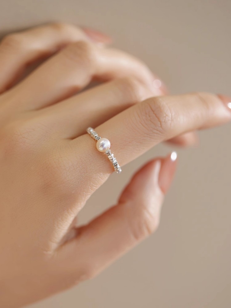 闪耀三角碎银子天然强光淡水珍珠戒指环ins小众设计轻奢高级感女
