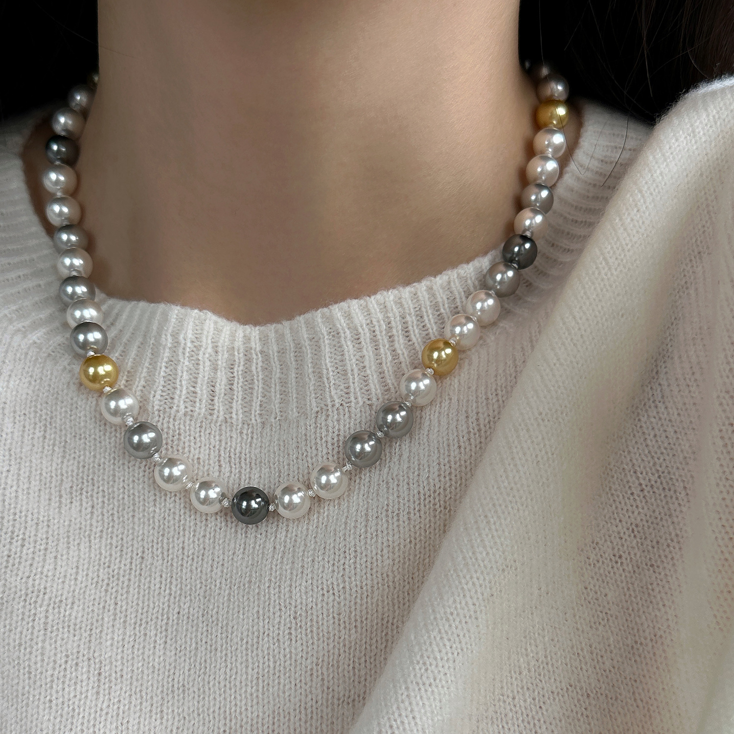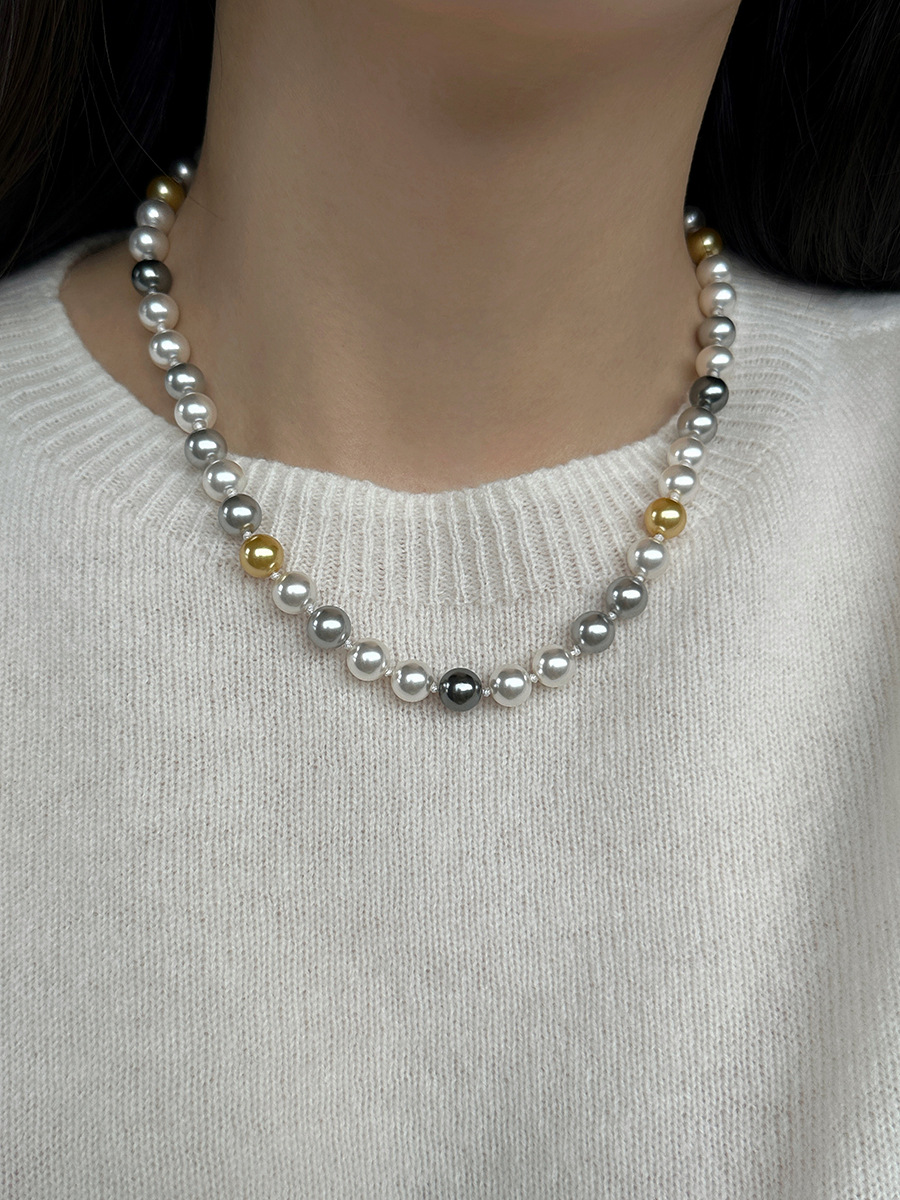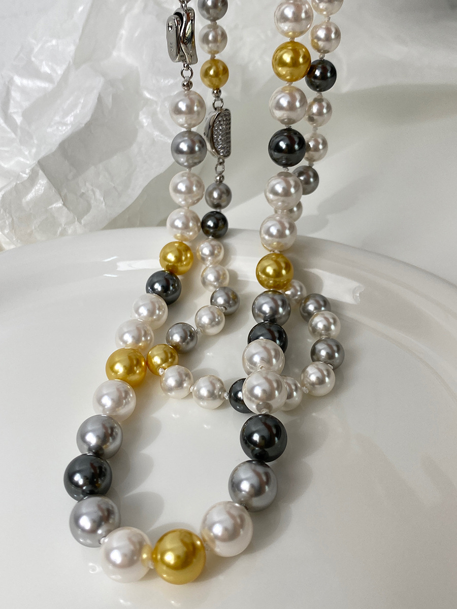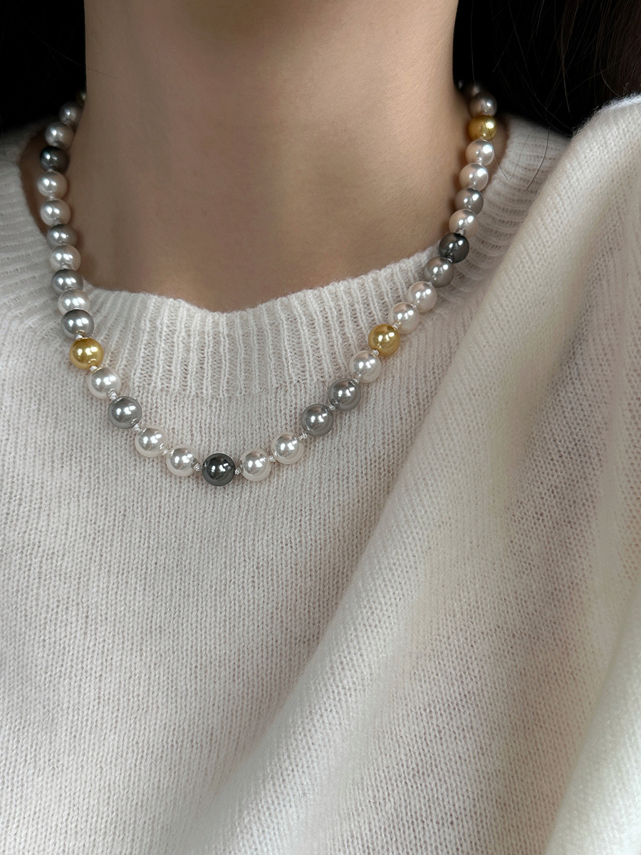 微镶元宝扣糖果色混彩施家珍珠项链女小众设计颈链时尚秋冬毛衣链