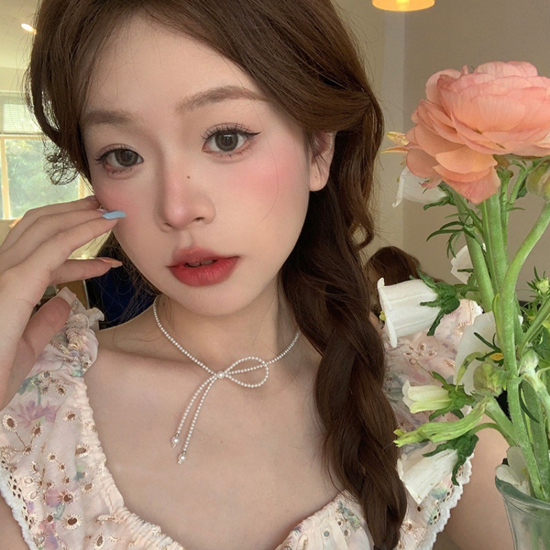 极细珍珠蝴蝶结choker项链新款爆款甜美精致脖颈链高级感锁骨链