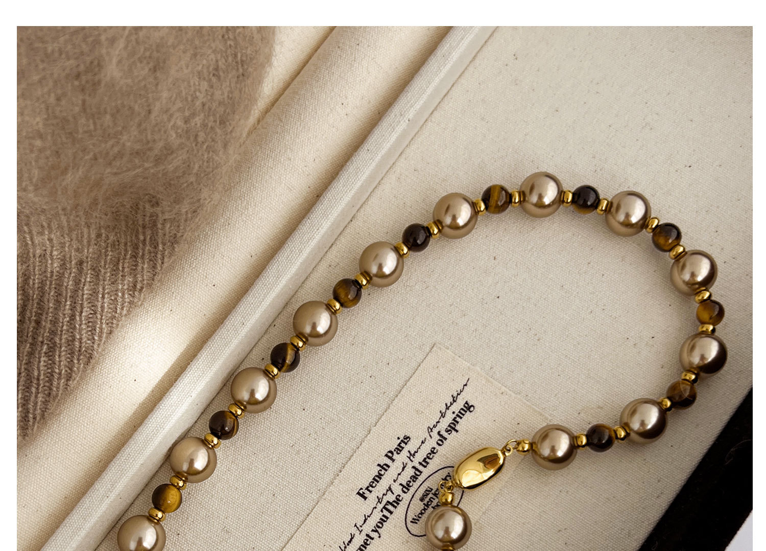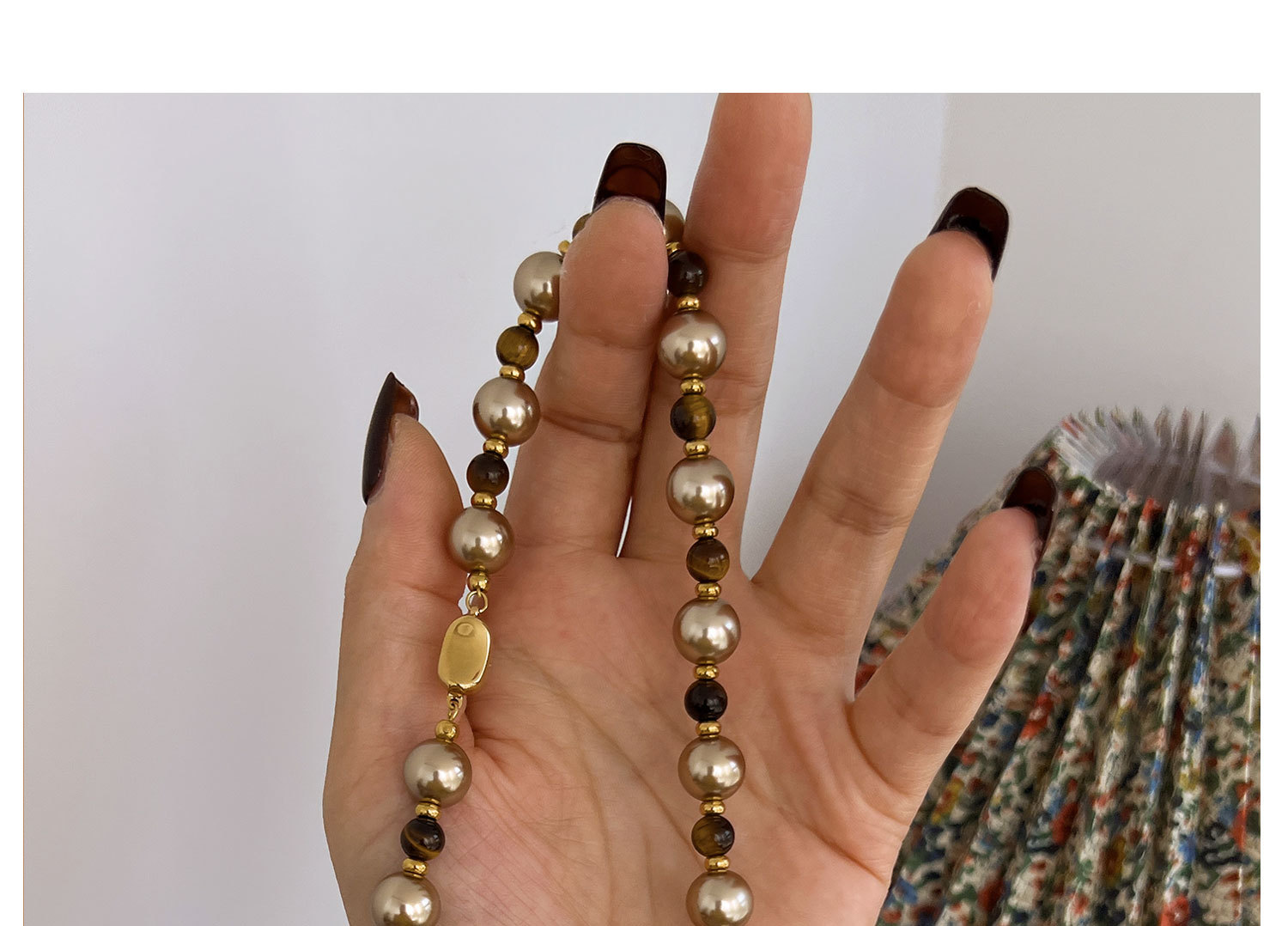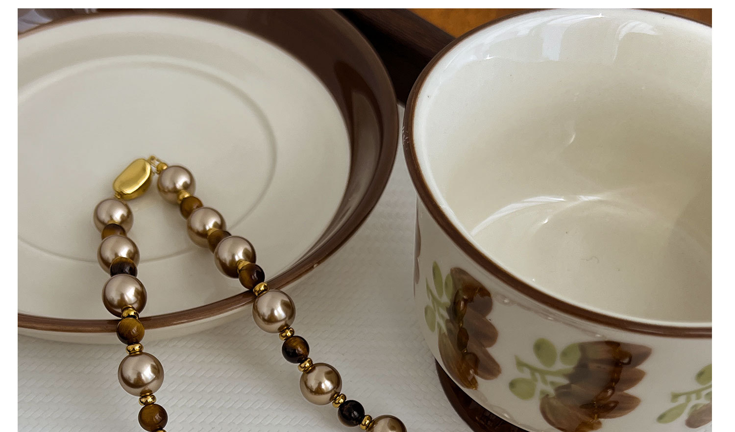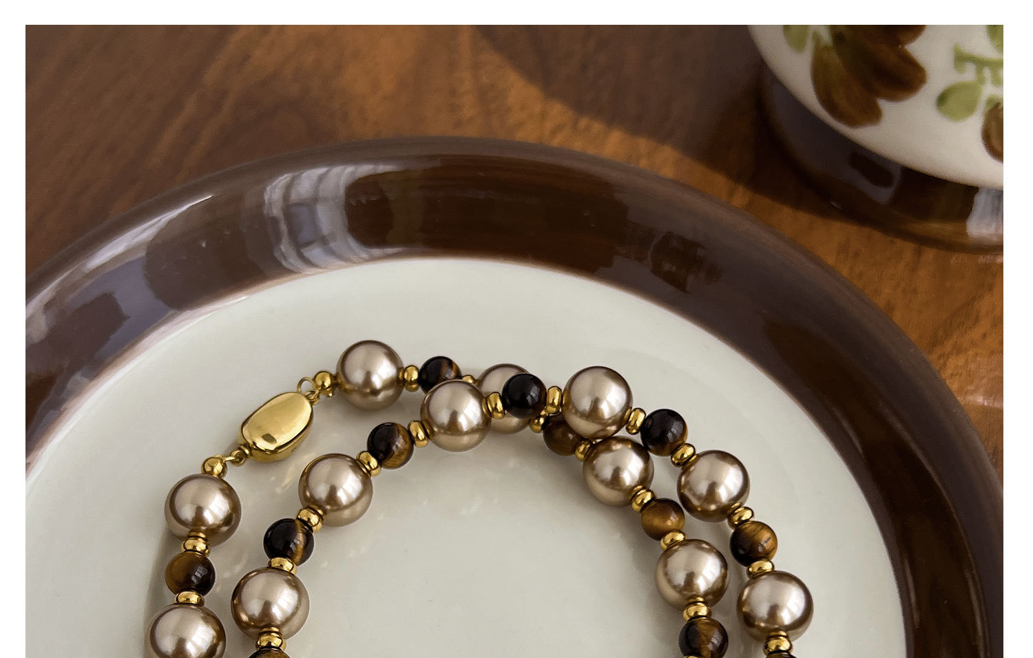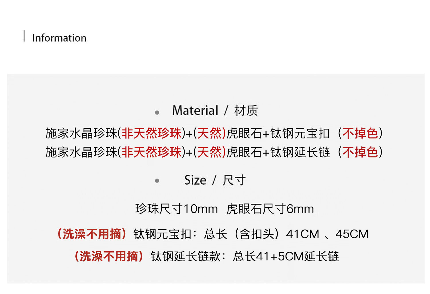 秋冬天然虎眼石项链毛衣链串珠锁骨链摩卡金棕珍珠混彩美拉德颈链