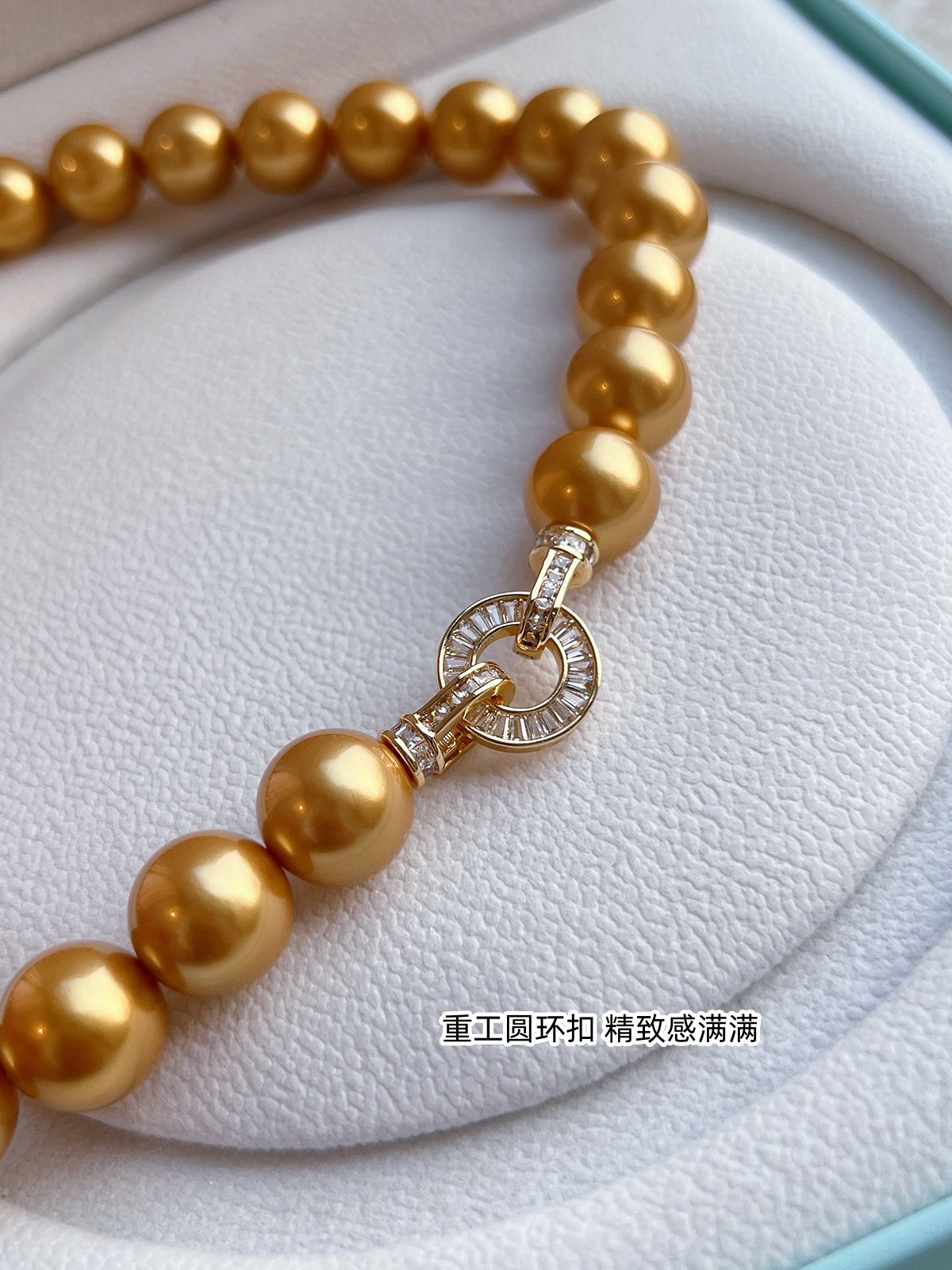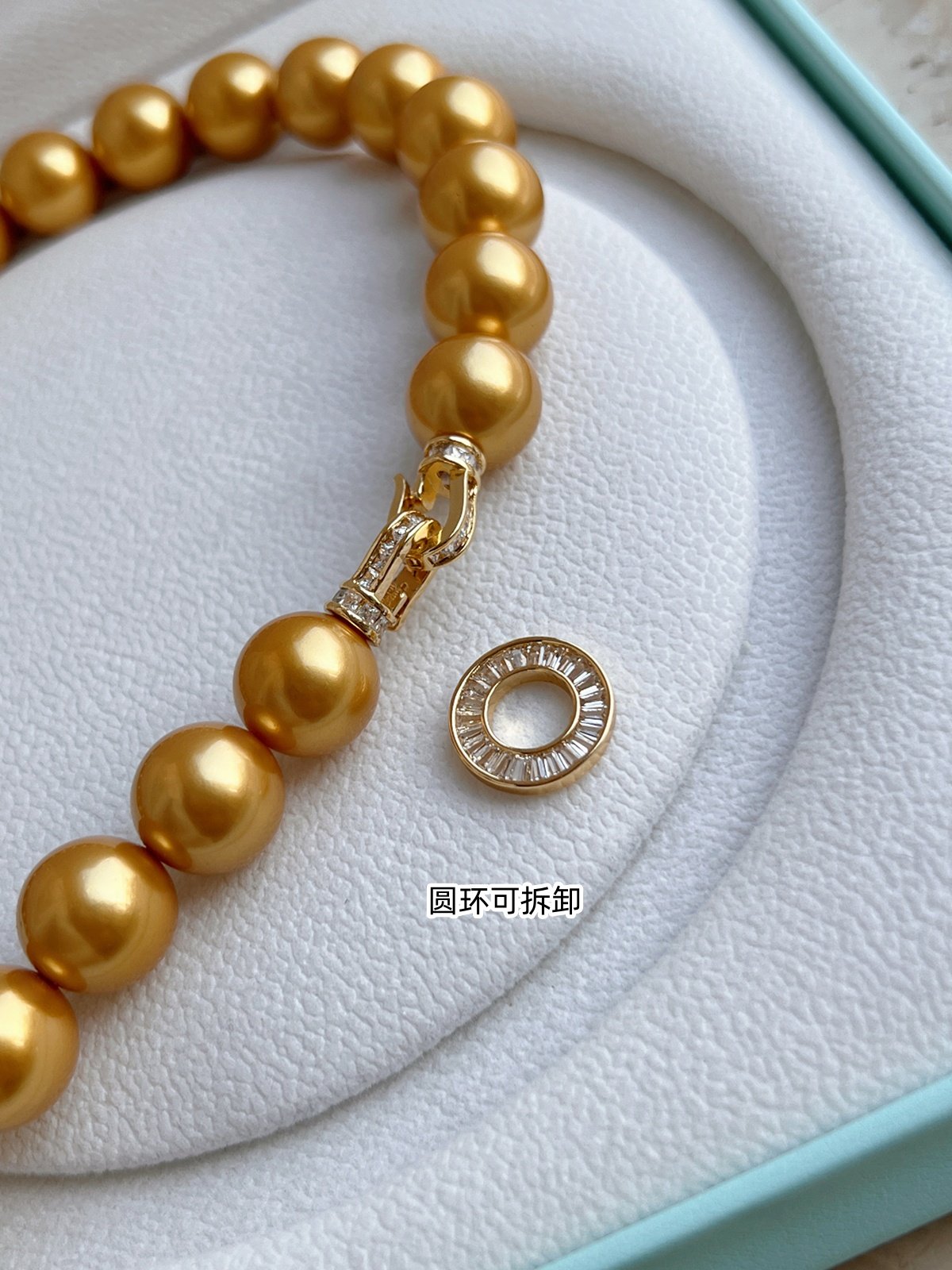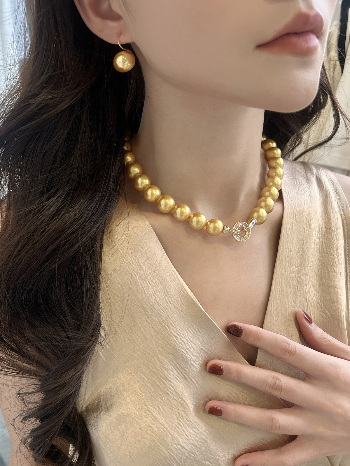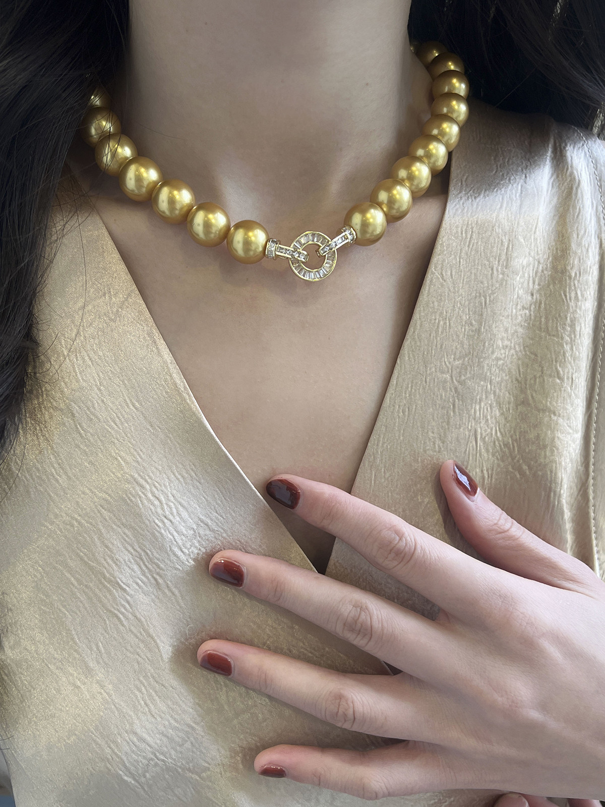 南洋金珠珍珠项链女14mm高级感轻奢小众2025新款爆款金色颈链大颗