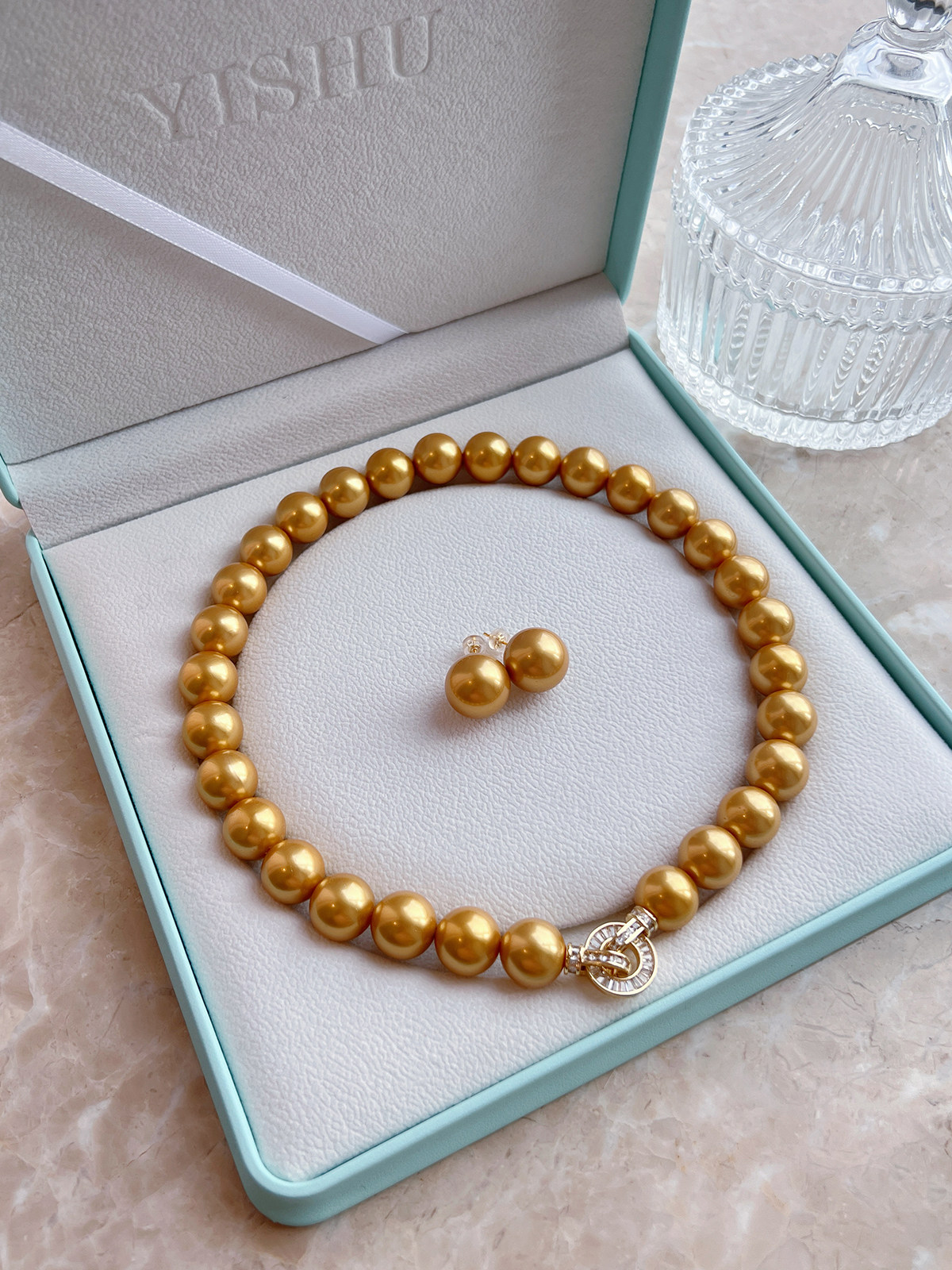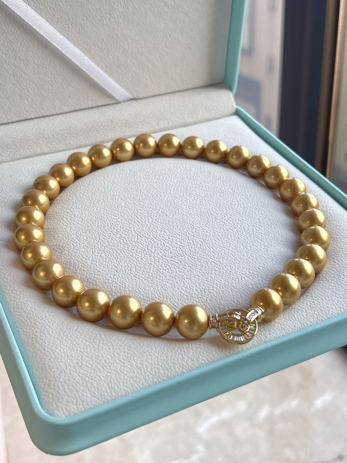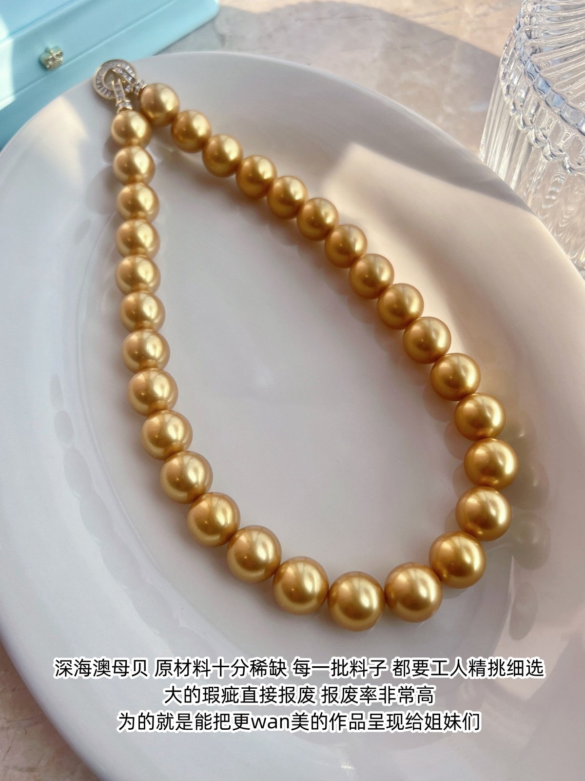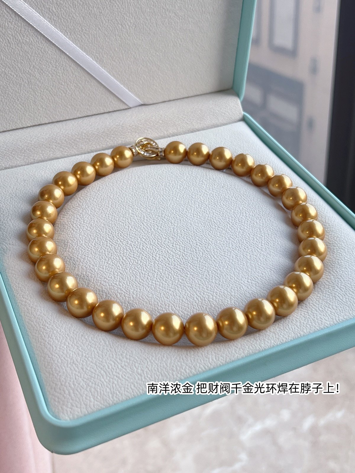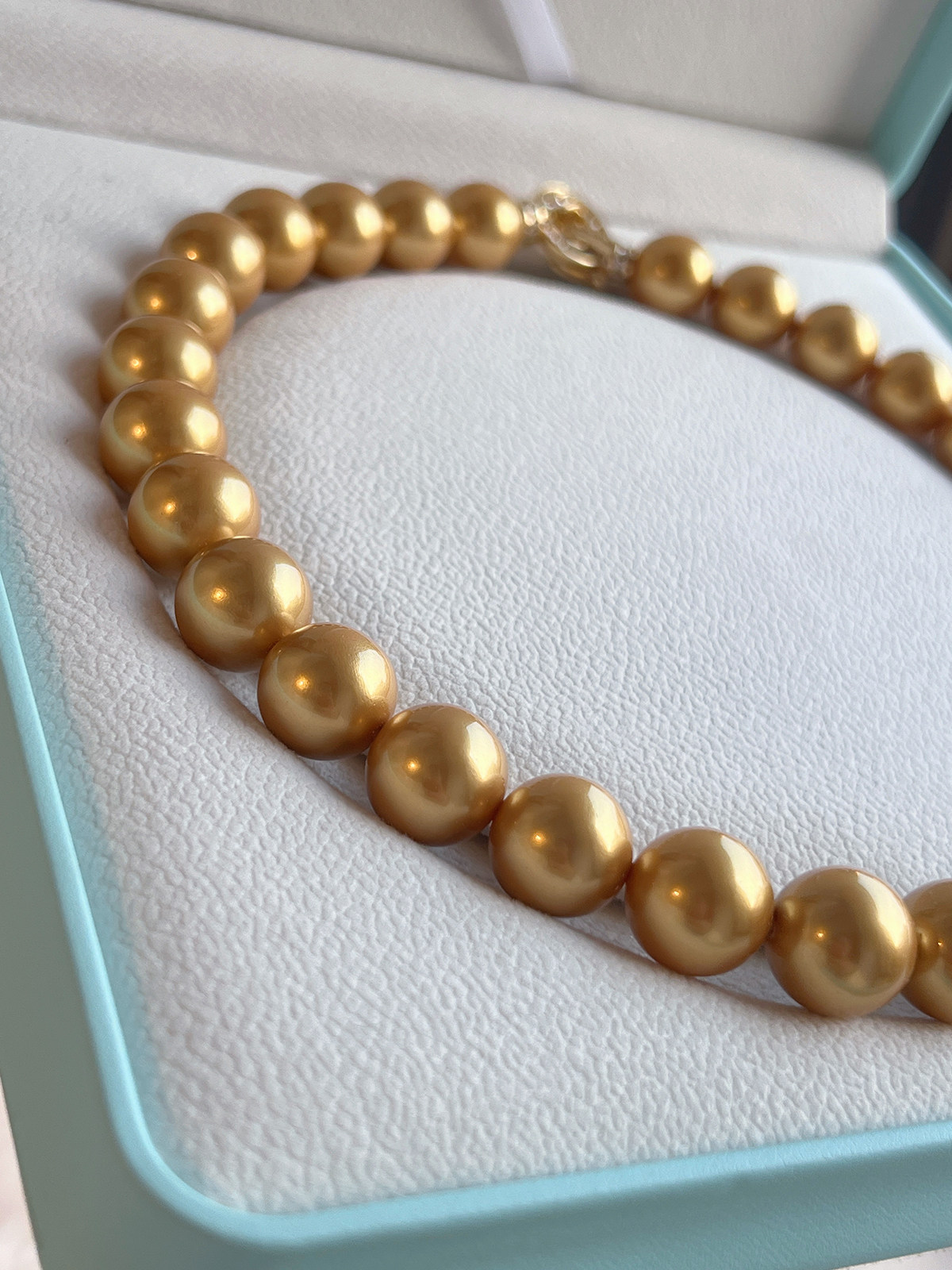 南洋金珠珍珠项链女14mm高级感轻奢小众2025新款爆款金色颈链大颗
