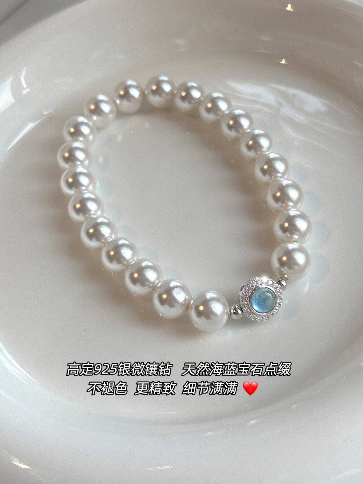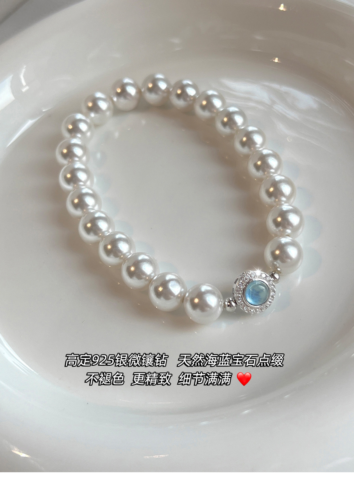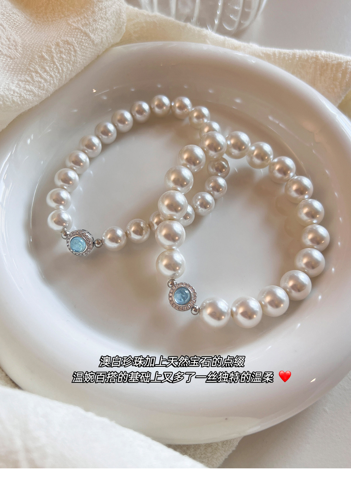 澳白珍珠海蓝宝锆石手链女2025年新款适合夏天的手饰轻奢气质小众