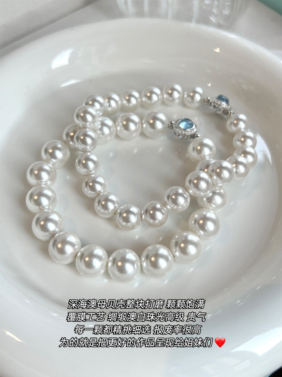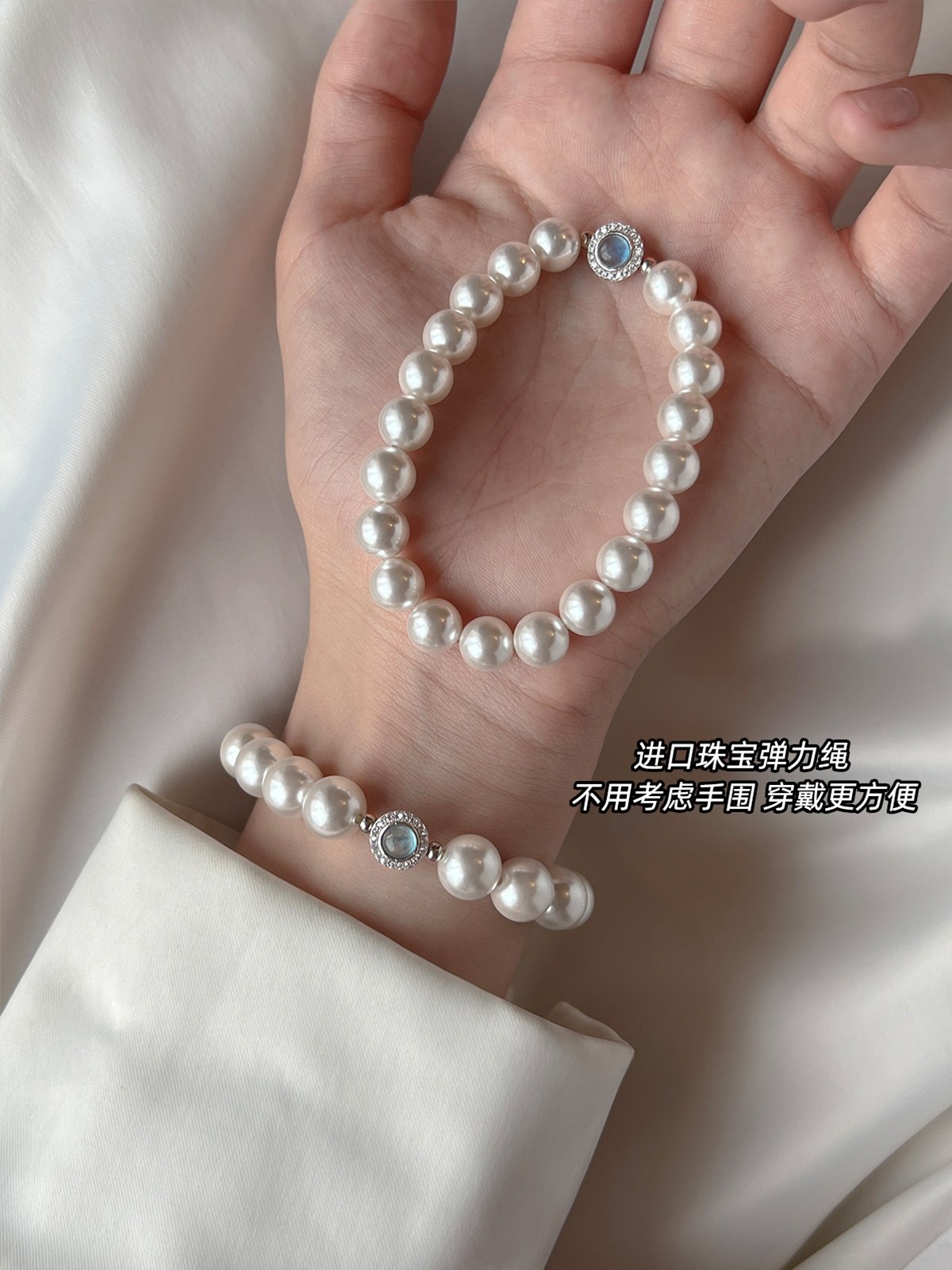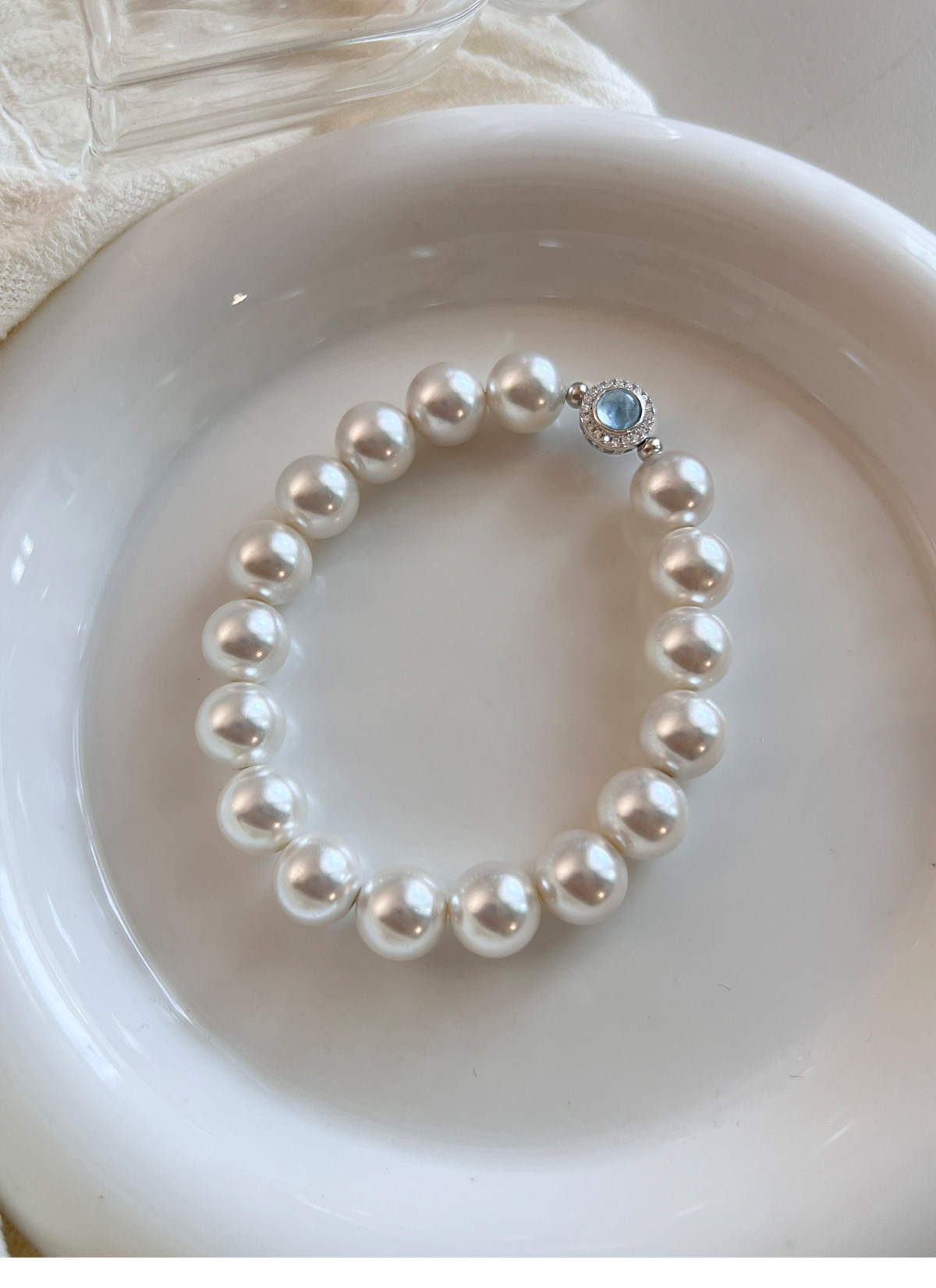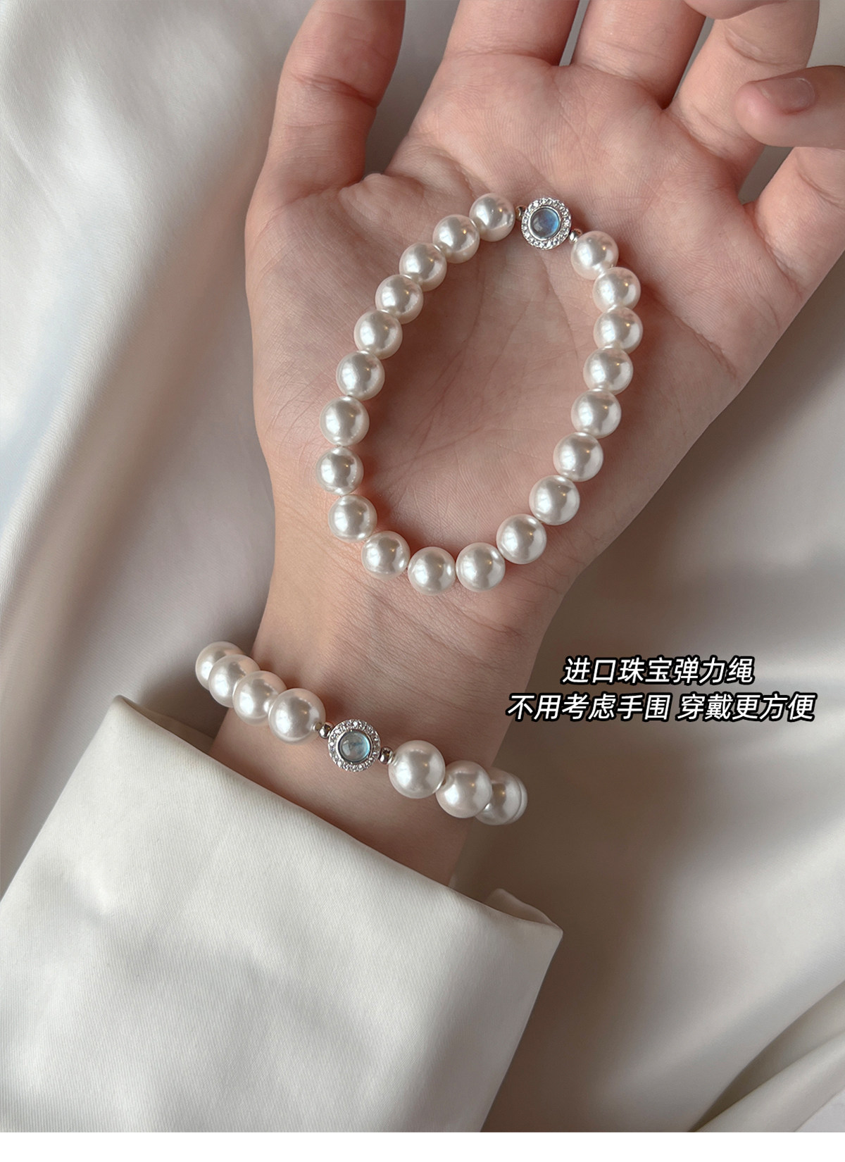 澳白珍珠海蓝宝锆石手链女2025年新款适合夏天的手饰轻奢气质小众