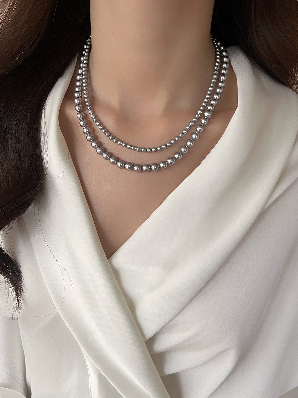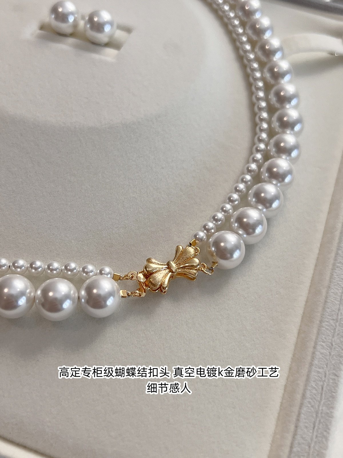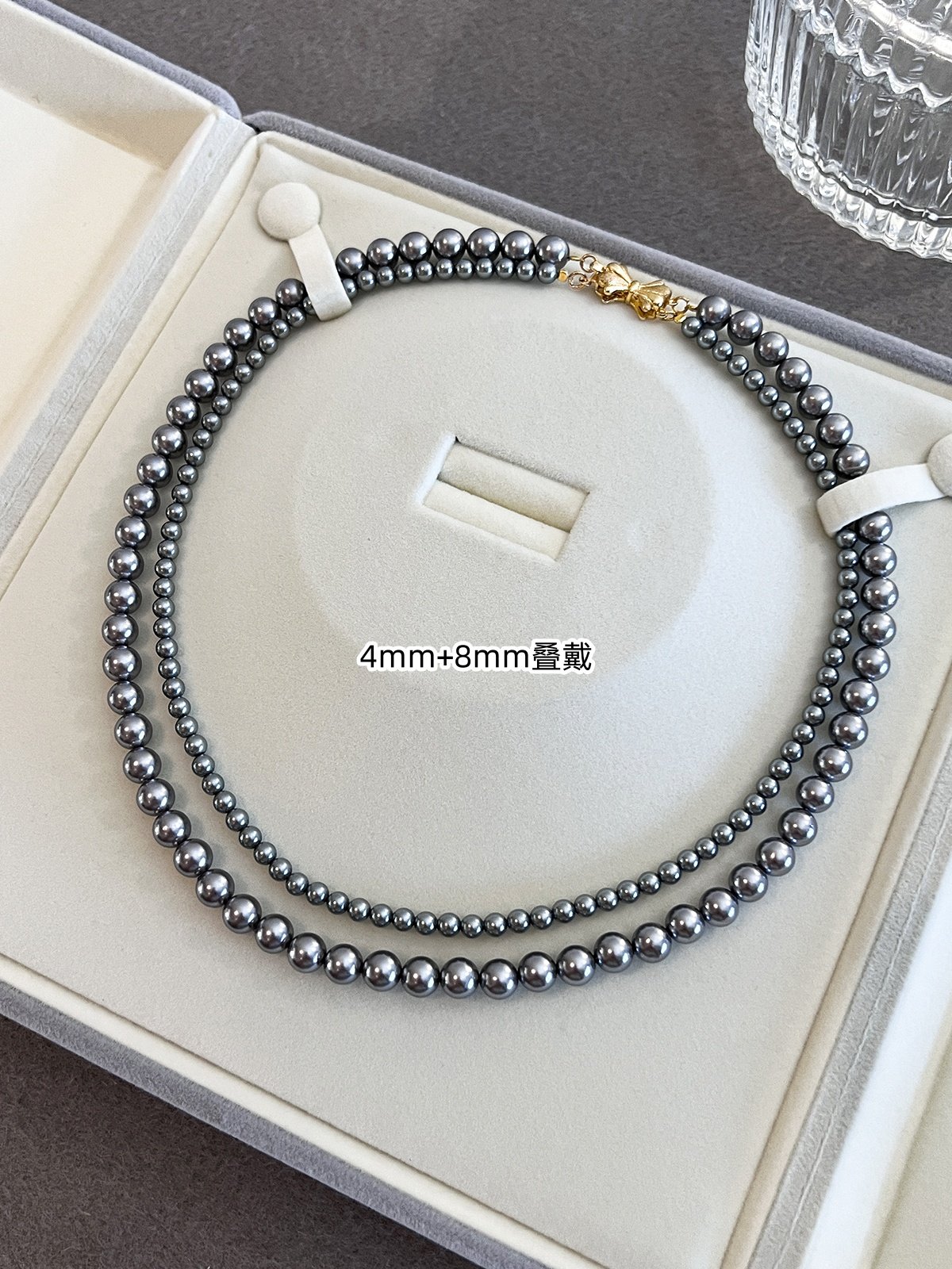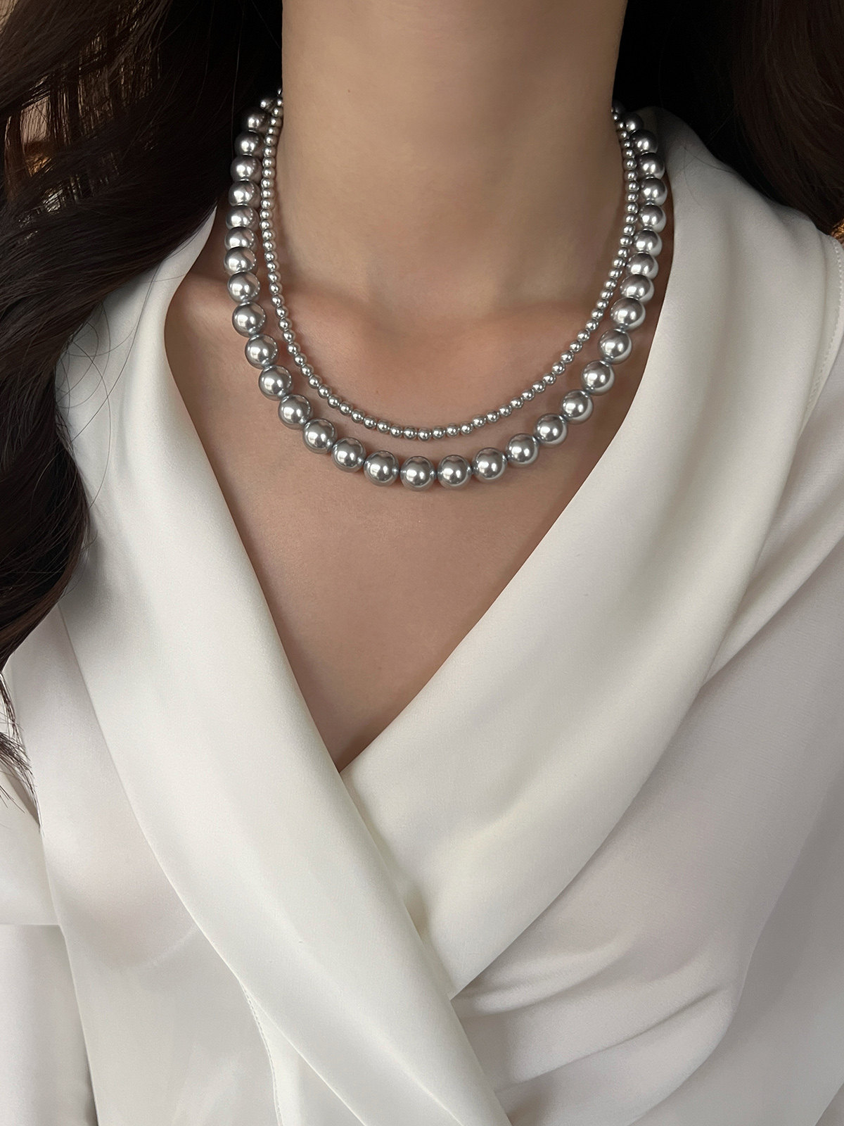 蝴蝶结真多麻珍珠项链叠戴双层毛衣链秋冬2025新款爆款灰色锁骨链