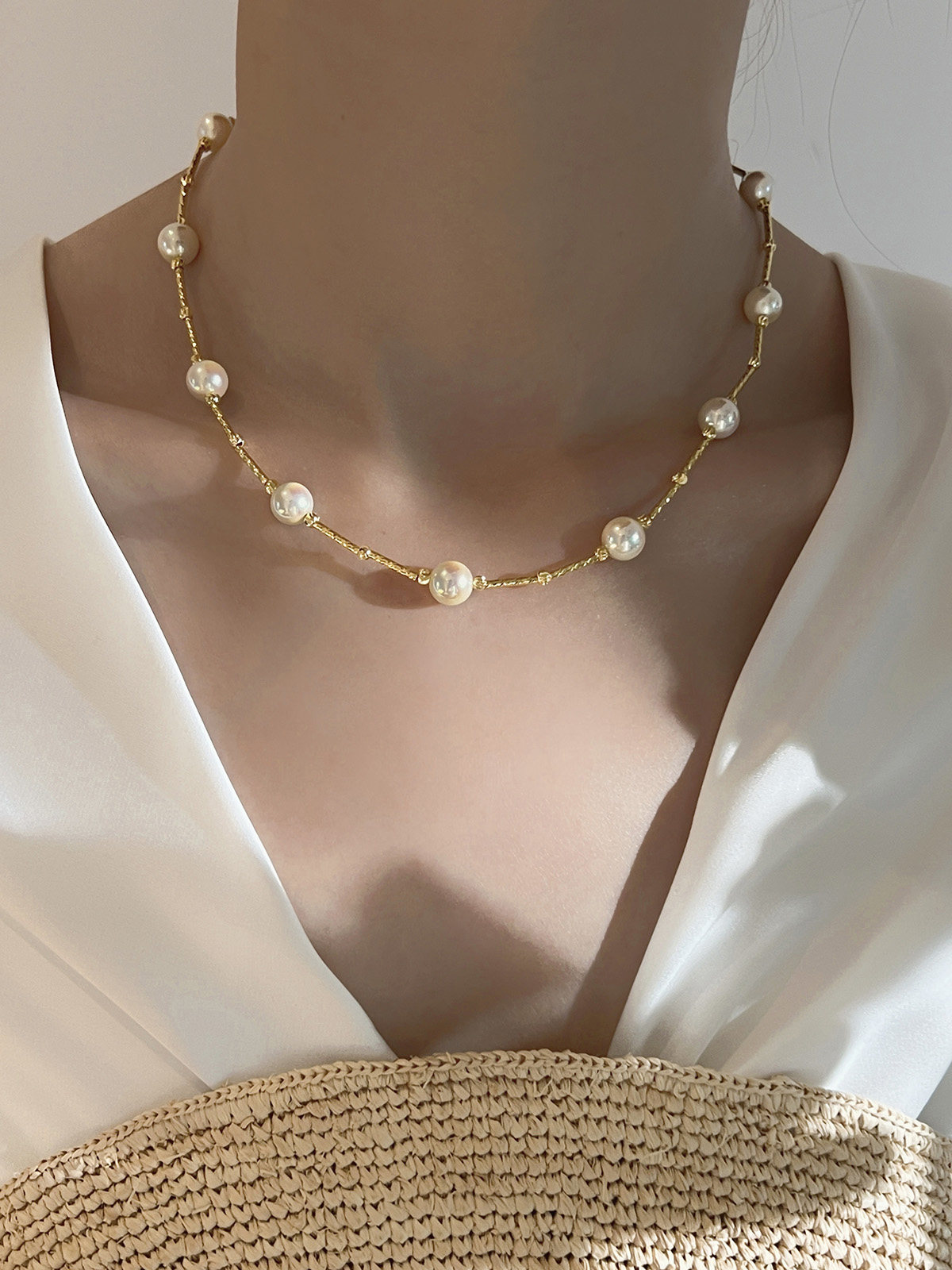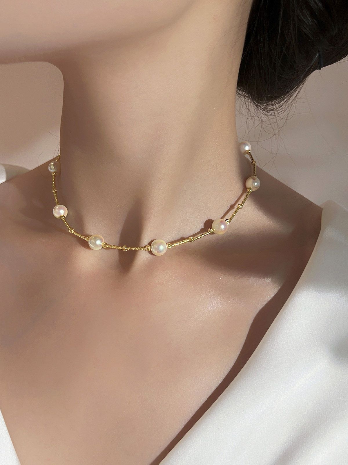 akoya珍珠项链天女2025新款爆款满天星轻奢小众锁骨链法式复古18k