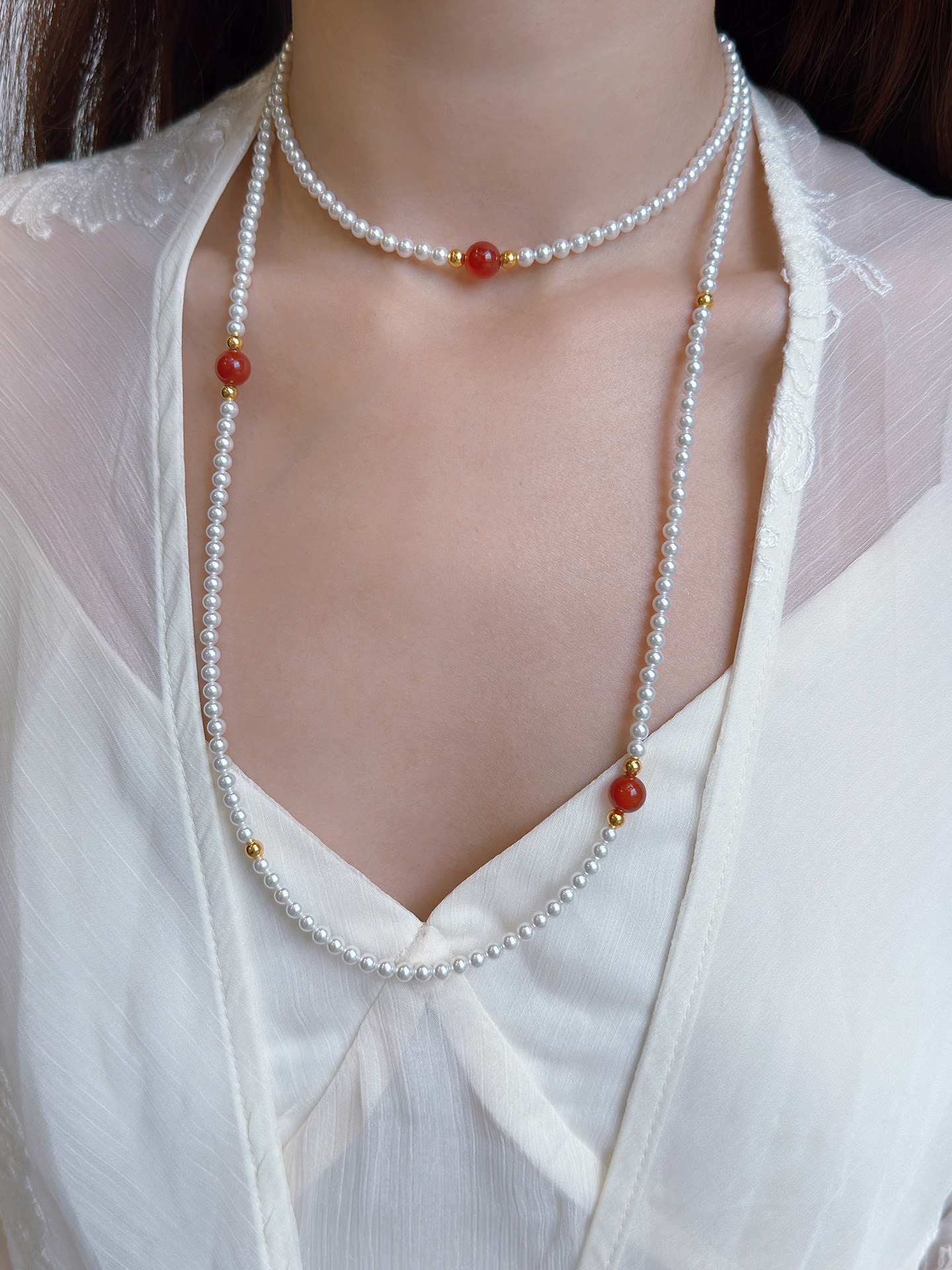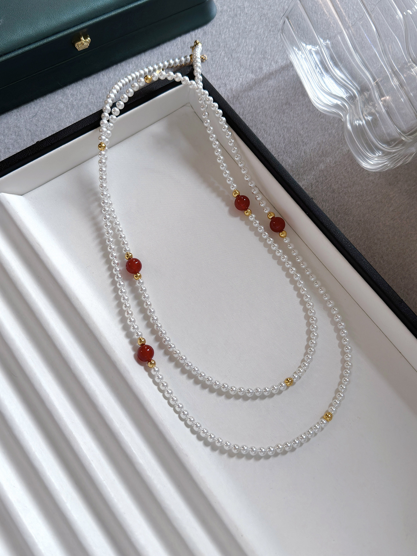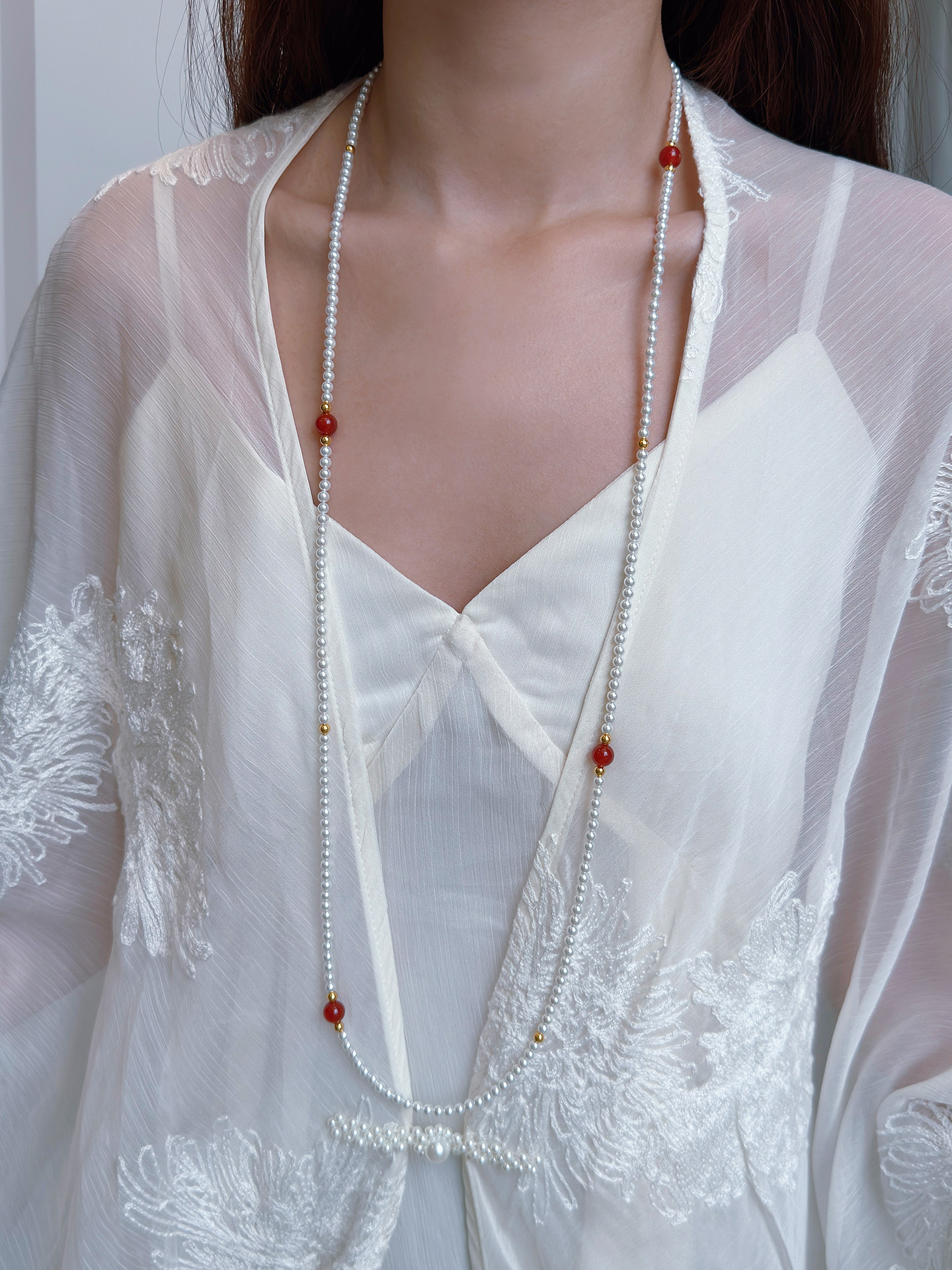 新中式玛瑙珍珠项链长款女2025新款爆款轻奢小众毛衣链小米珠叠戴