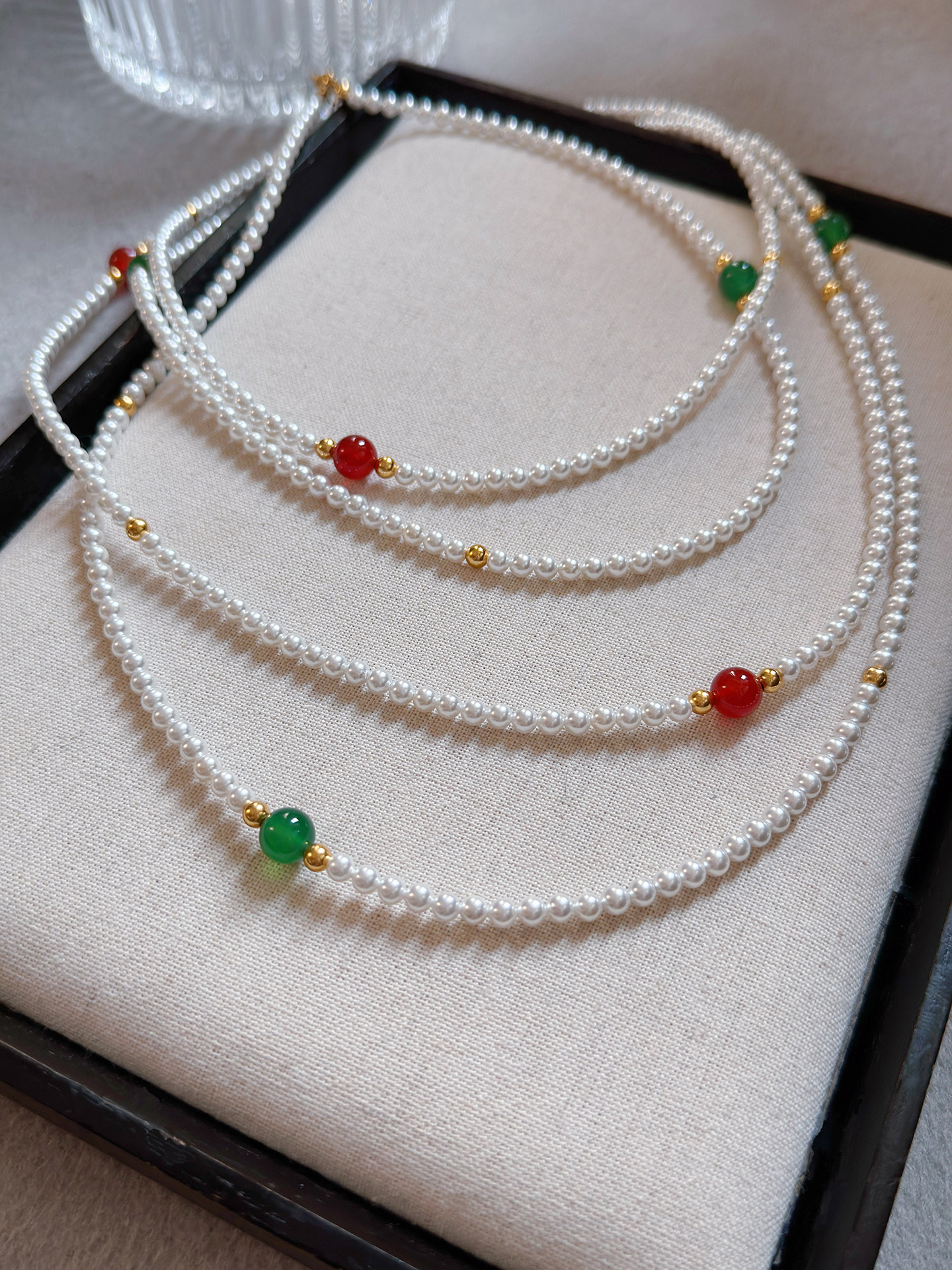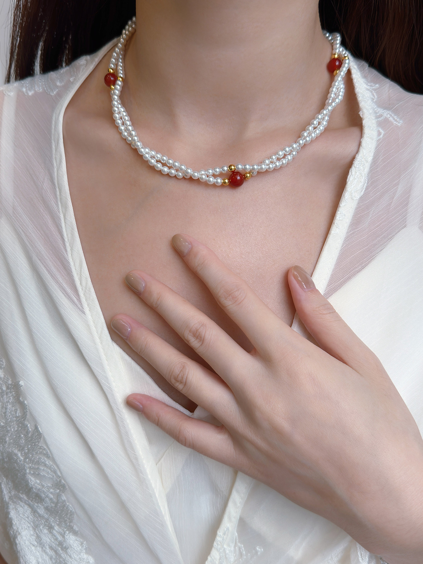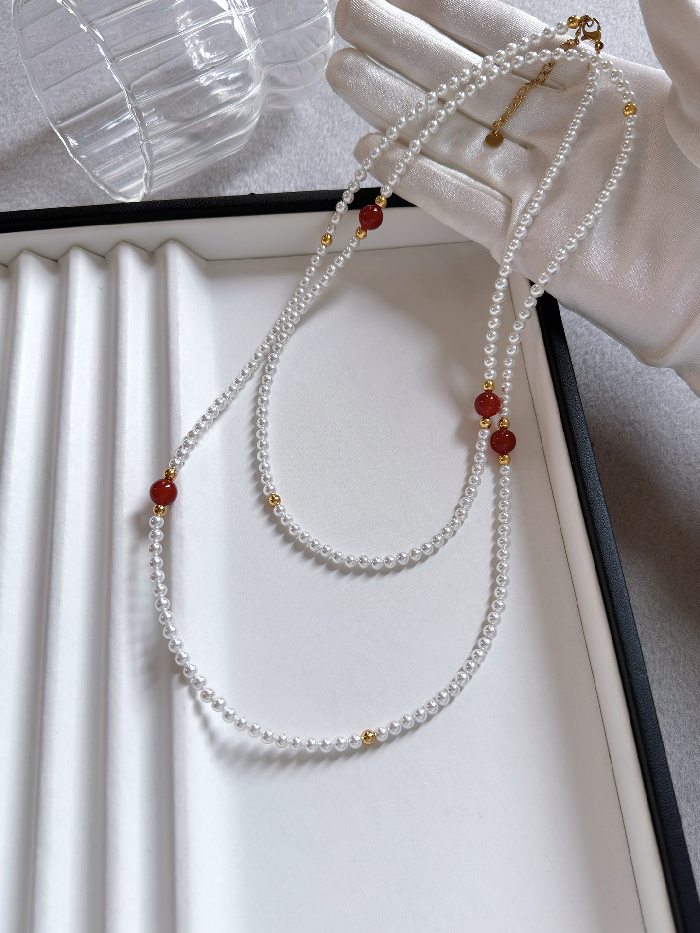 新中式玛瑙珍珠项链长款女2025新款爆款轻奢小众毛衣链小米珠叠戴