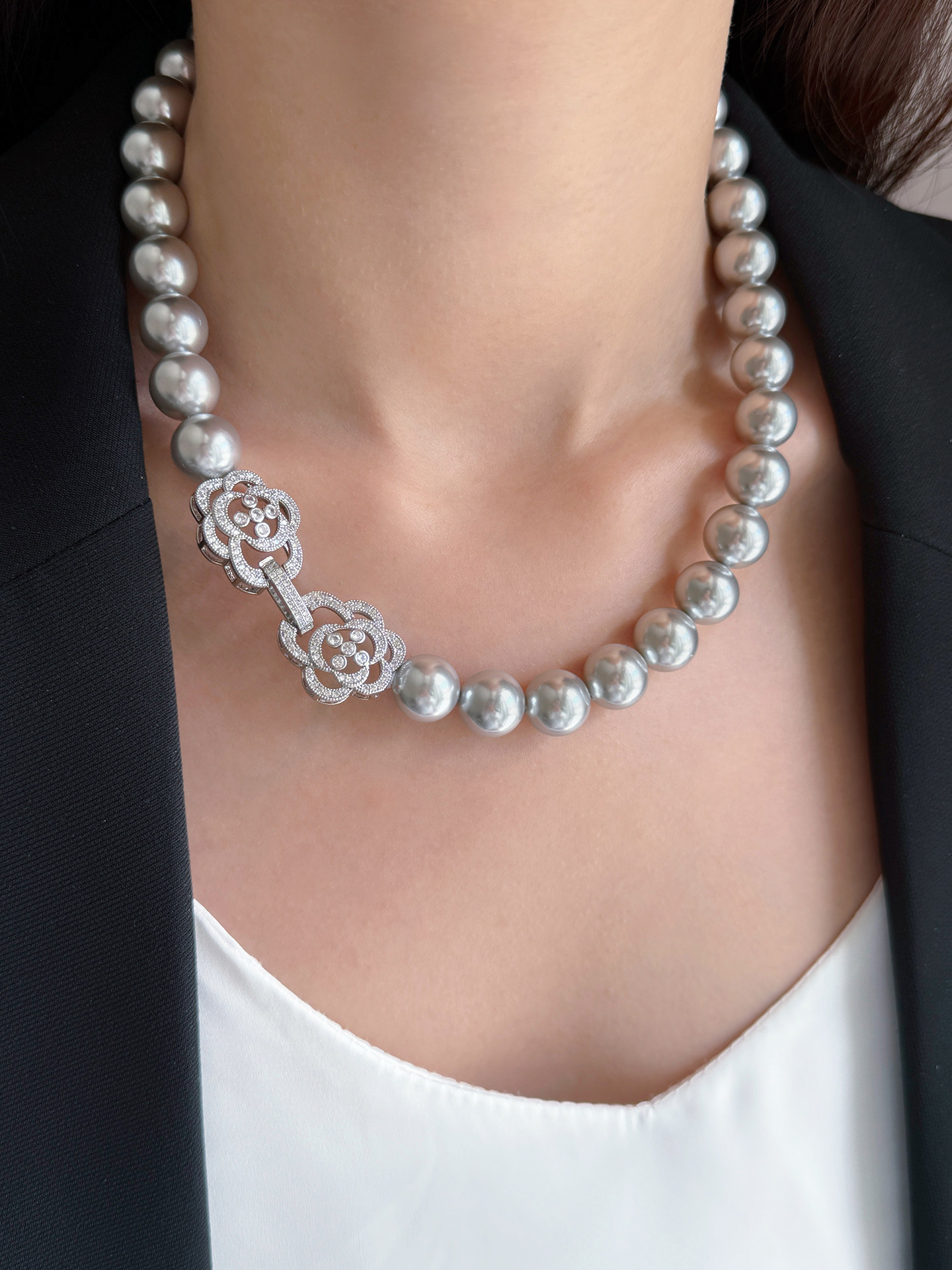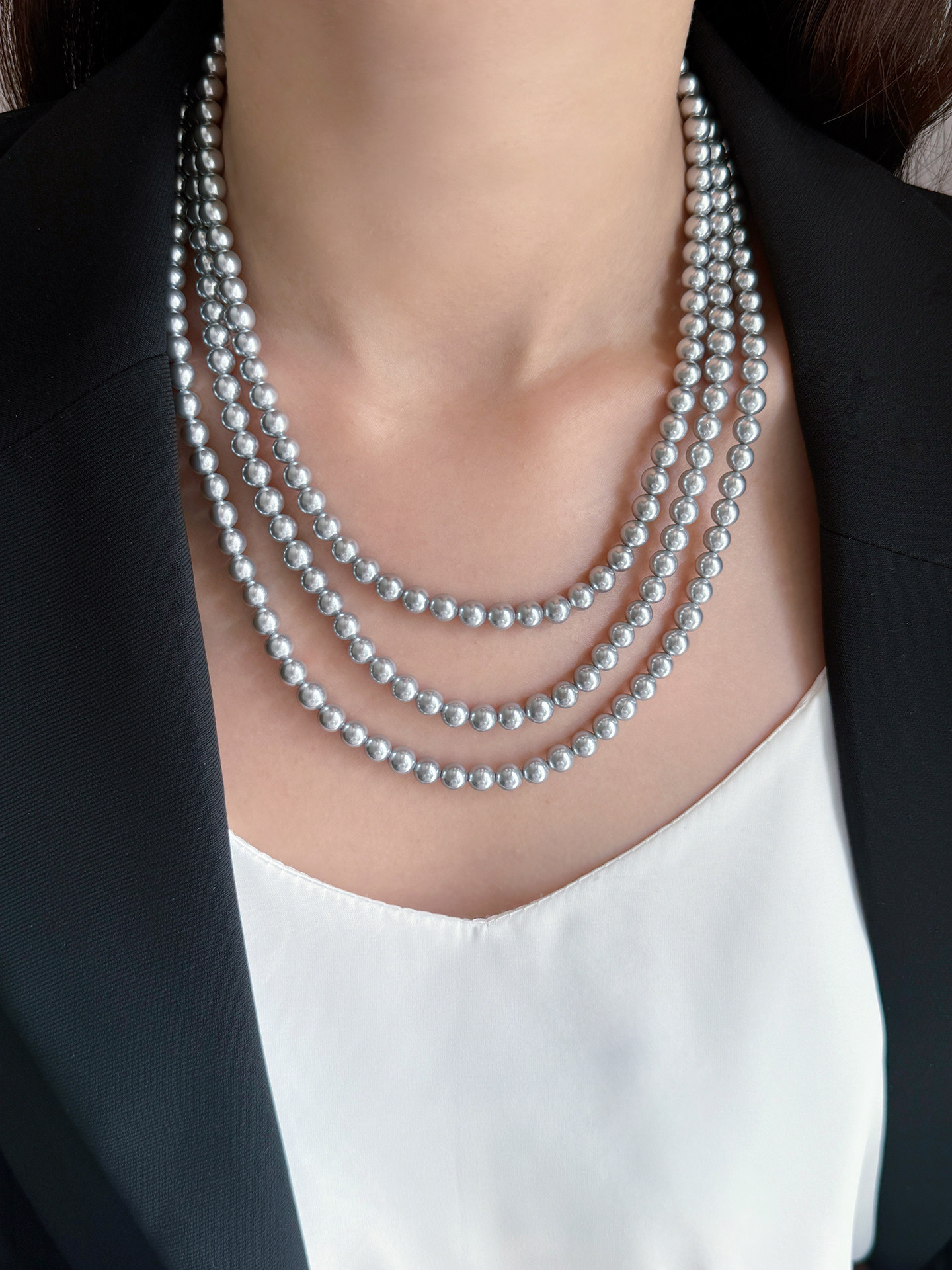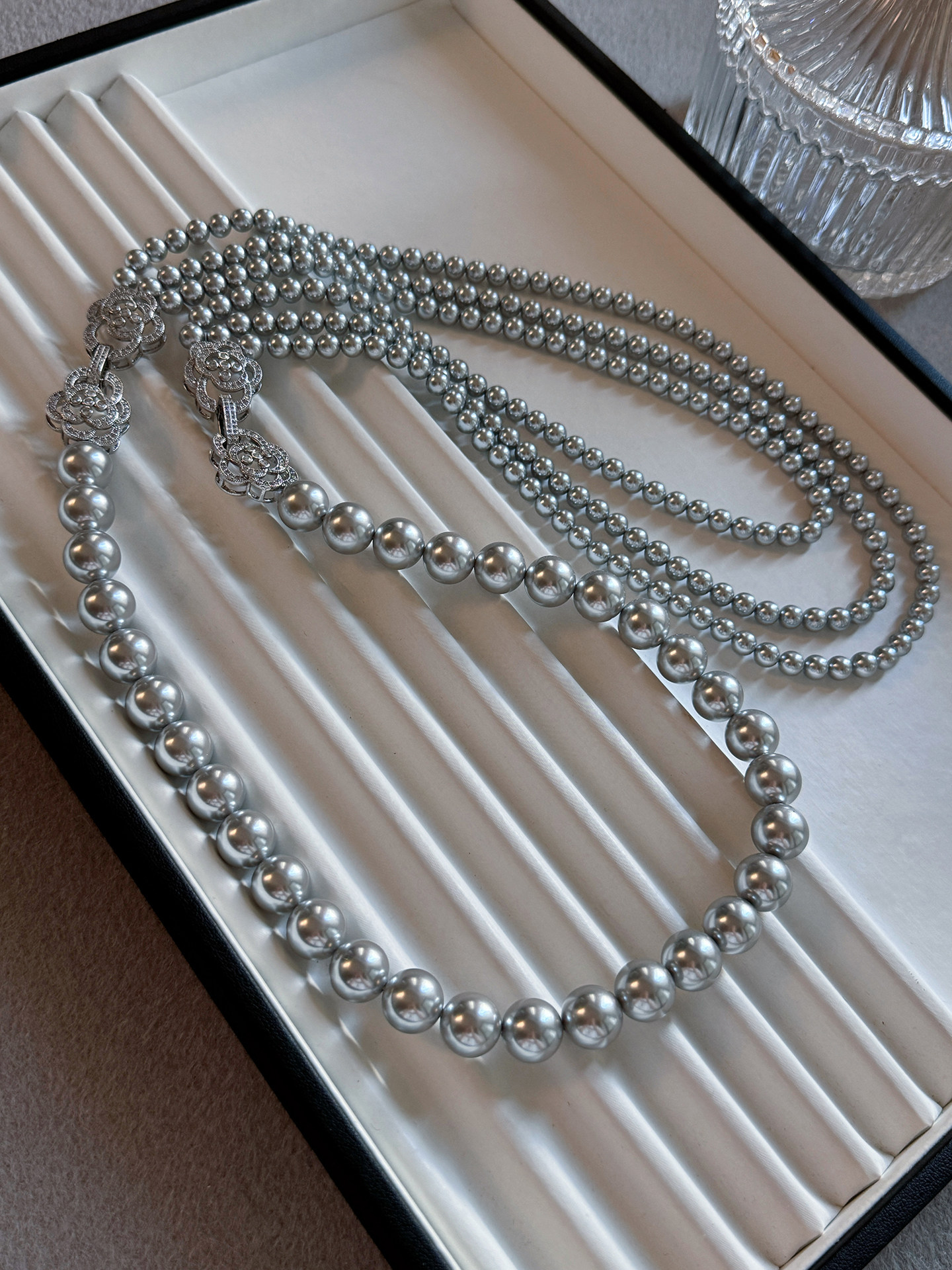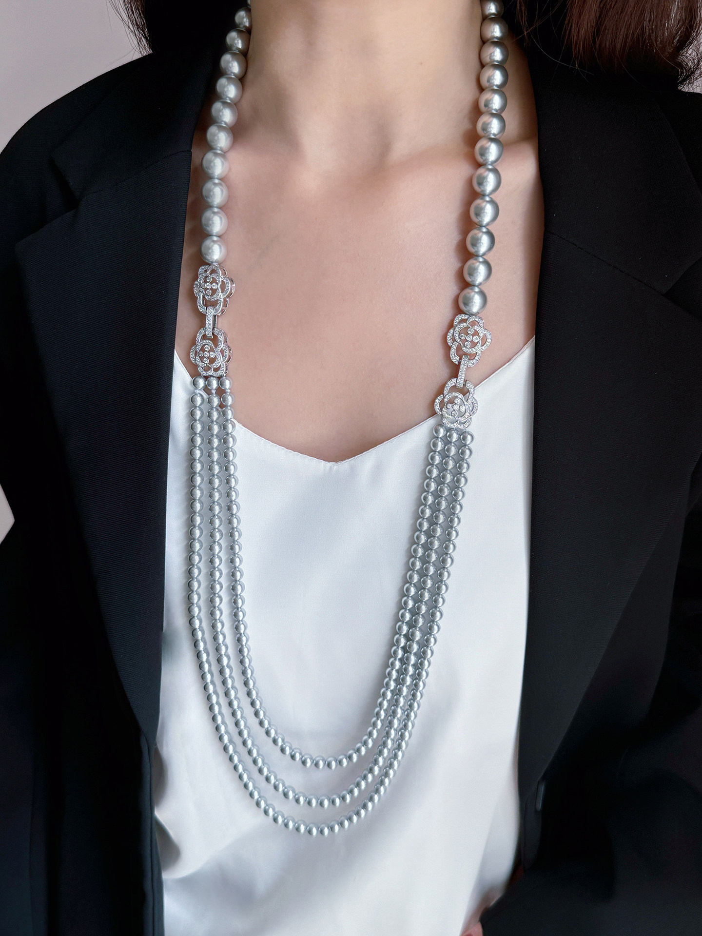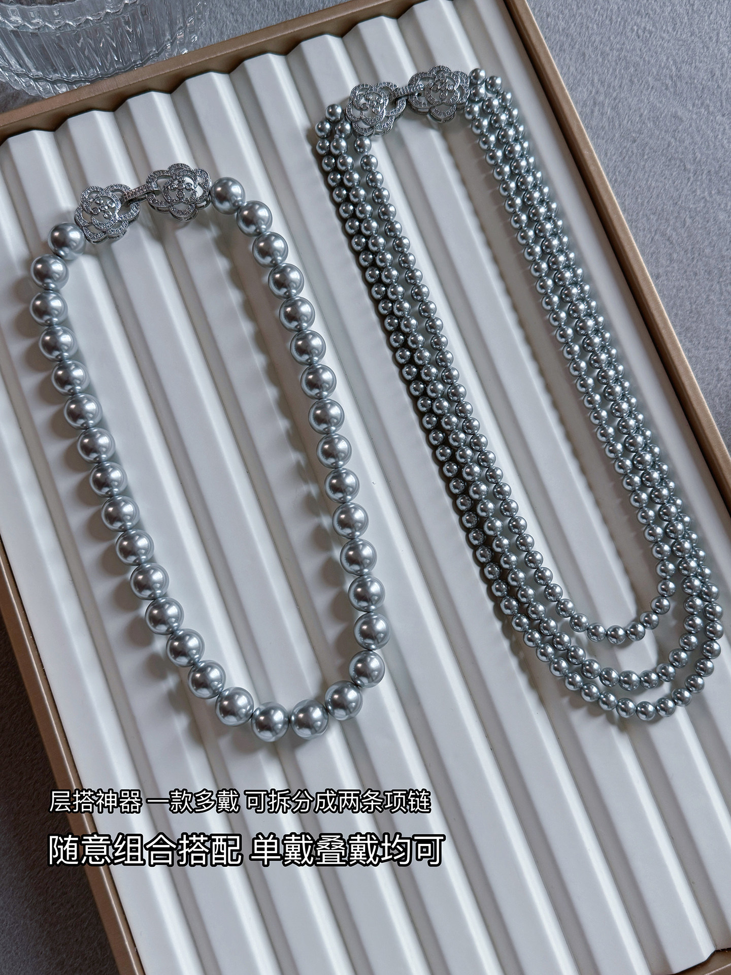 铂金灰真多麻珍珠项链2025新款爆款轻奢小众毛衣链女长款叠戴多层