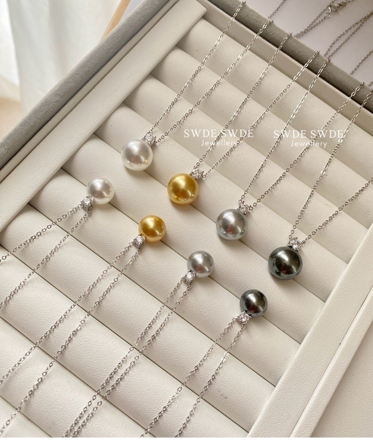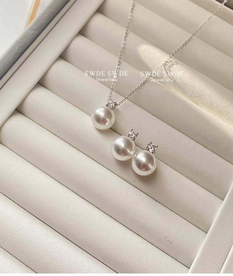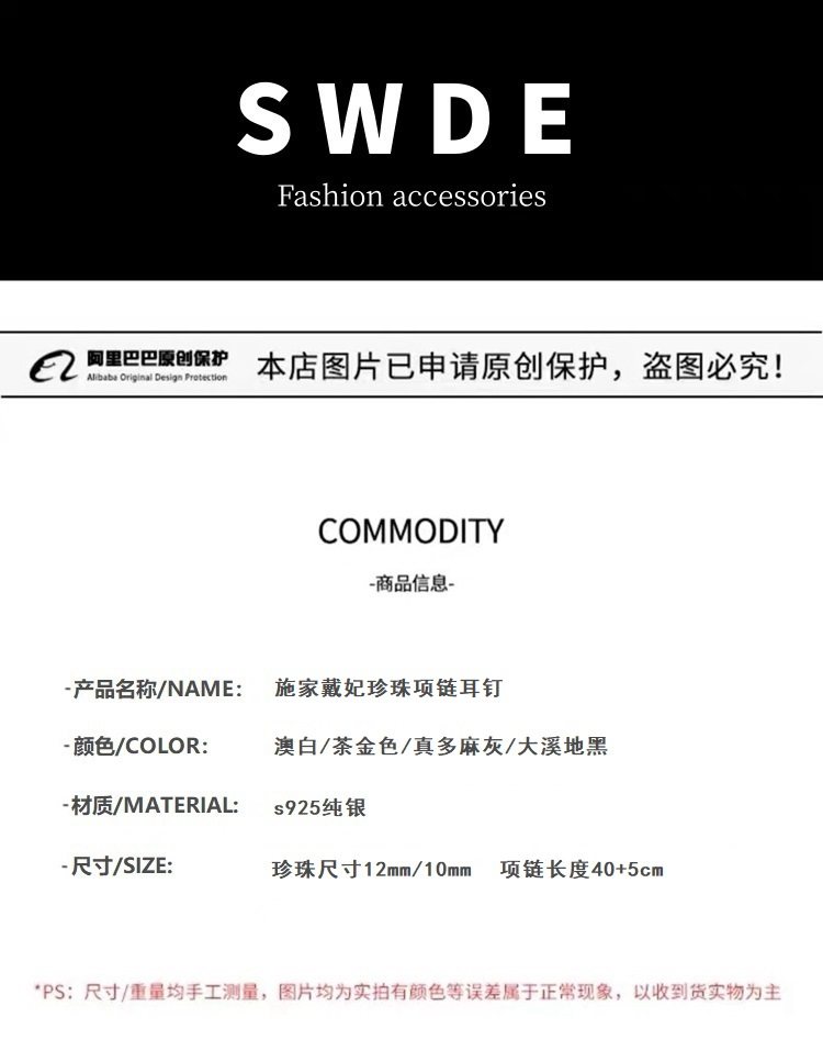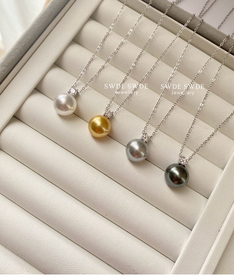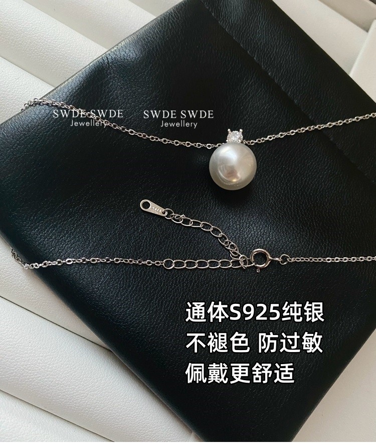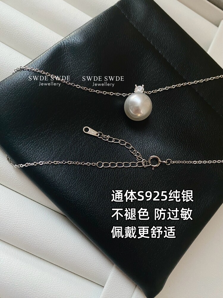 S925纯银施家奥地利镶钻戴妃冷光澳白珍珠吊坠项链锁骨链女气质潮
