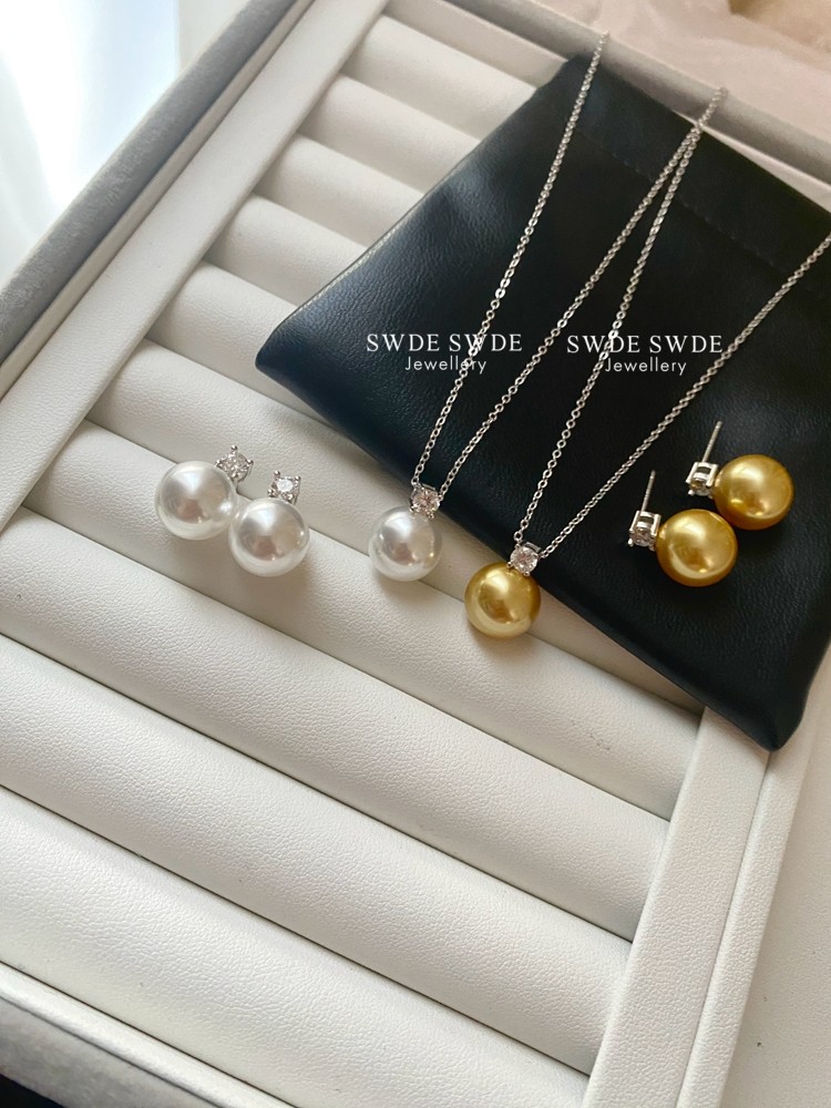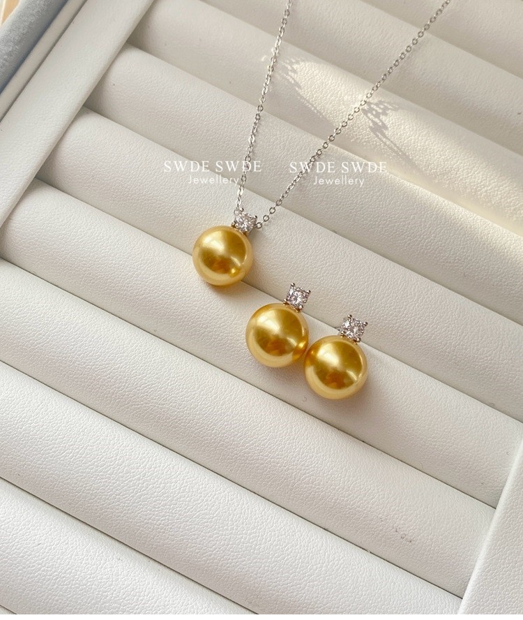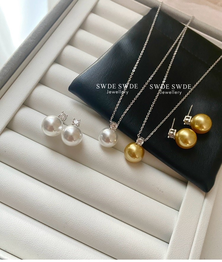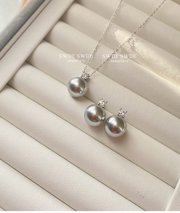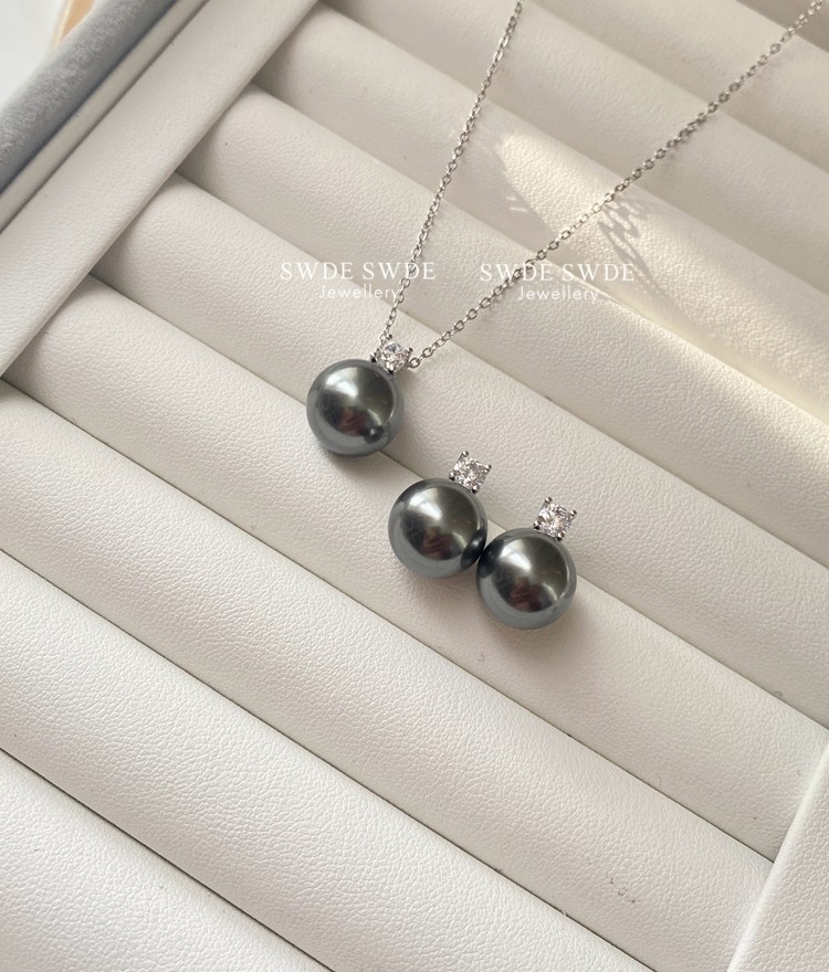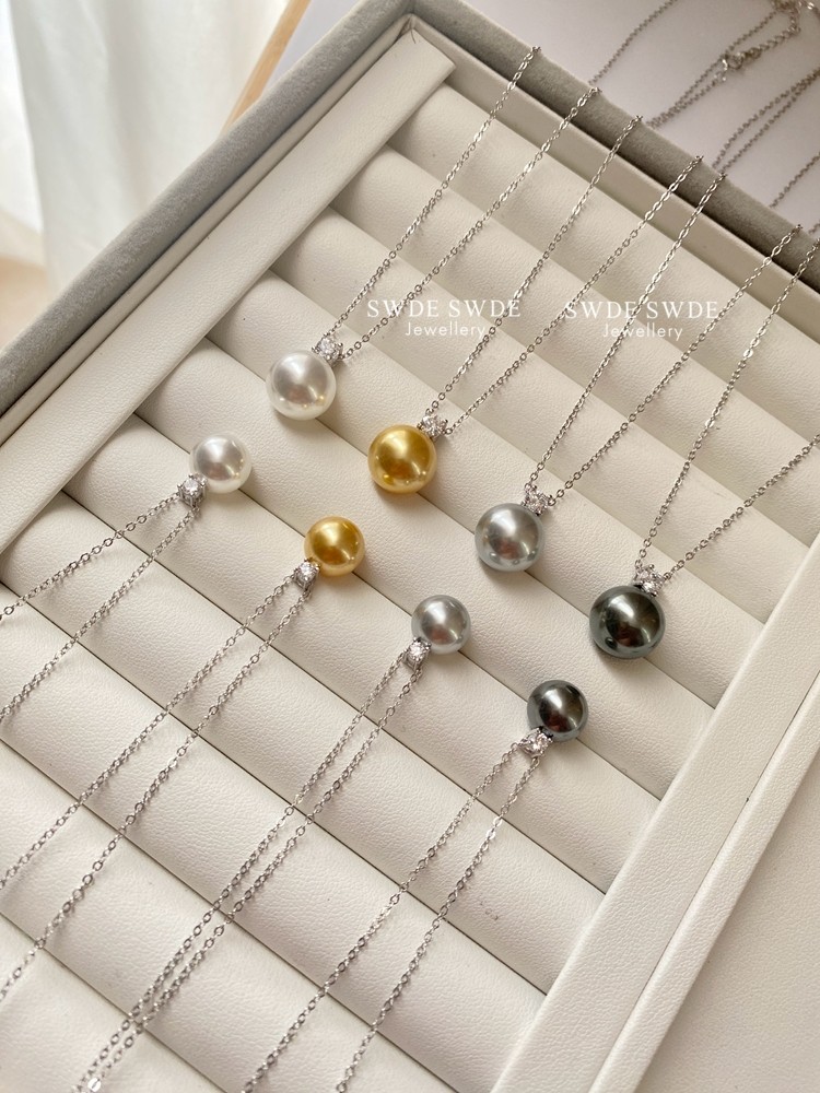 S925纯银施家奥地利镶钻戴妃冷光澳白珍珠吊坠项链锁骨链女气质潮
