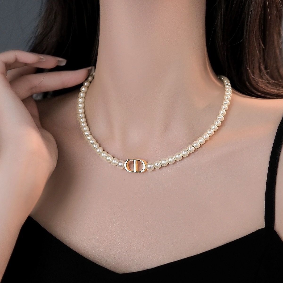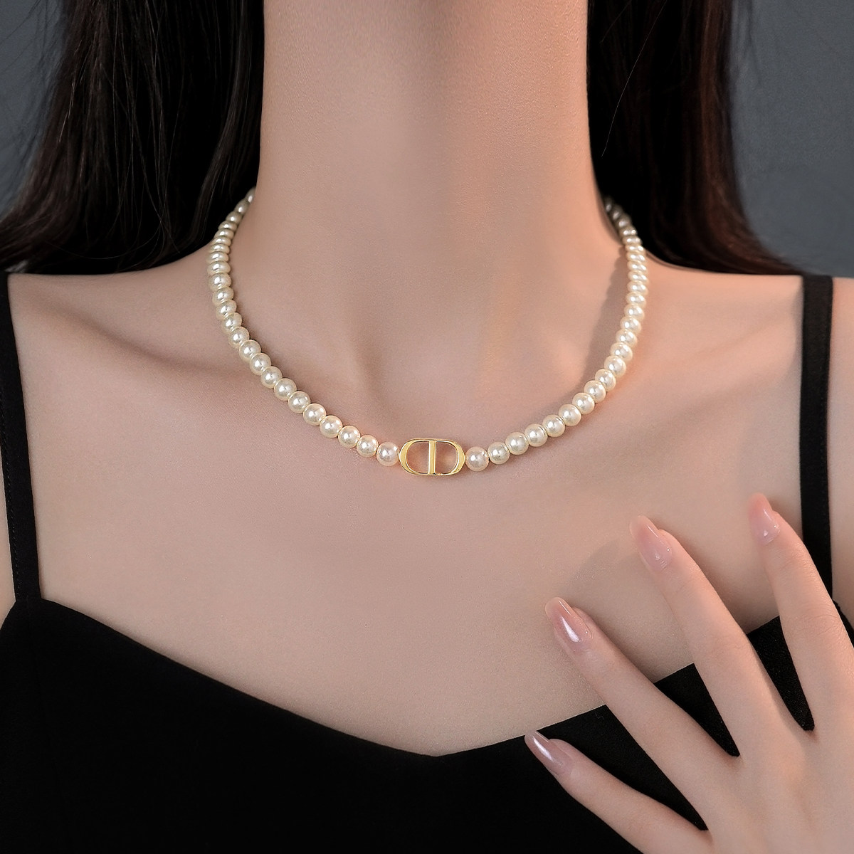 韩国猪鼻子珍珠项链女轻奢小众设计感高级锁骨链法式气质绝美颈链