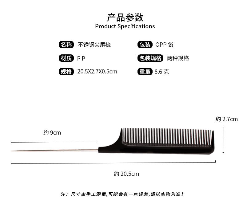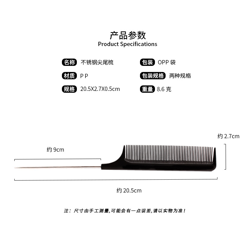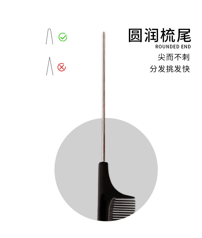热销新款美发梳子尖尾梳塑料梳美发钢针尖尾梳PP料密齿现货批发