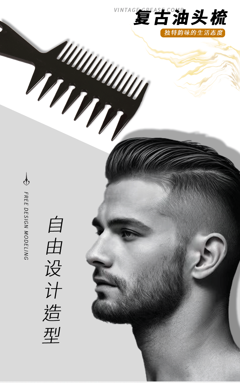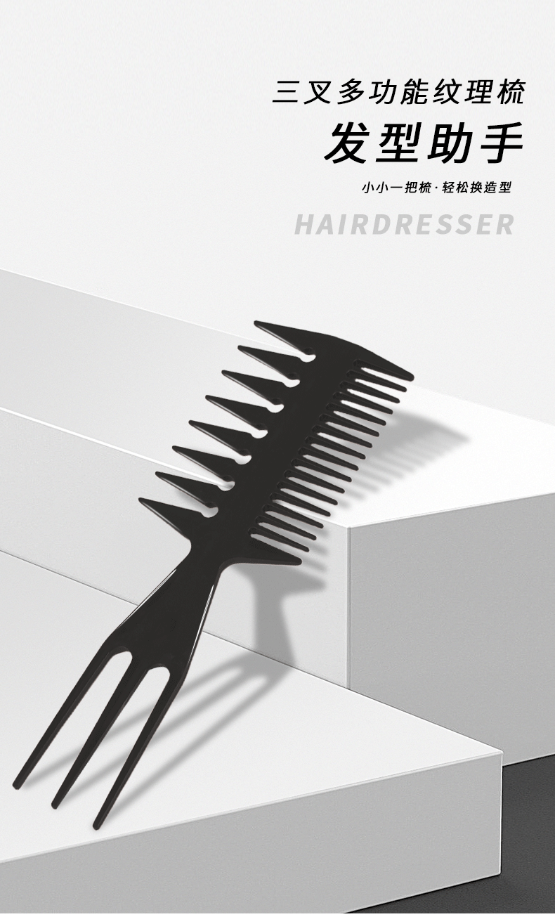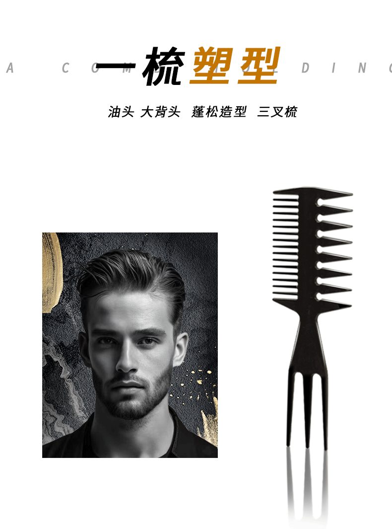 三叉梳美工梳画梳男士纹理梳骨梳油头梳背头飞机头宽齿梳纹理造型