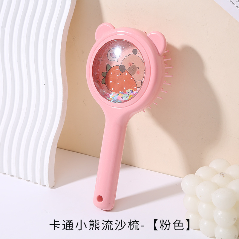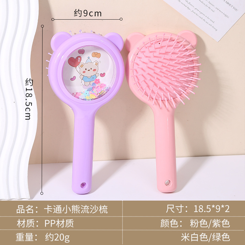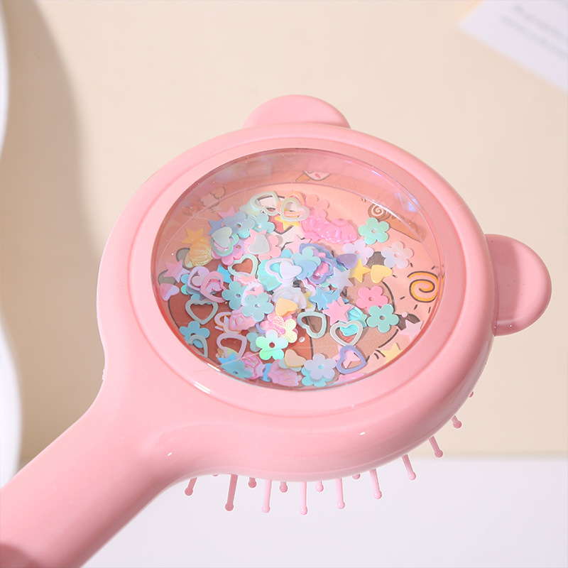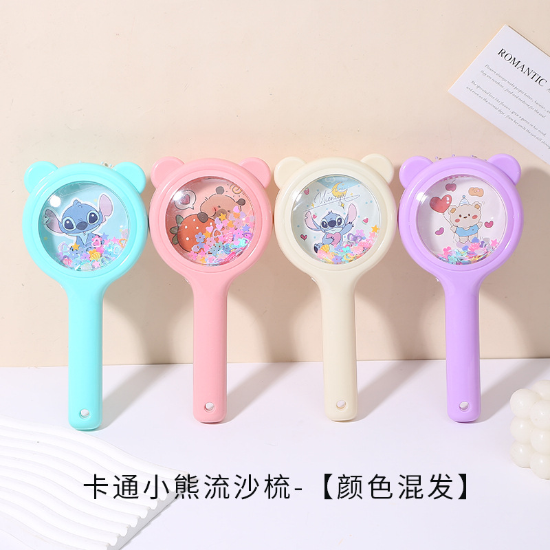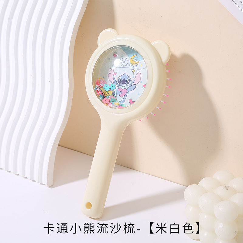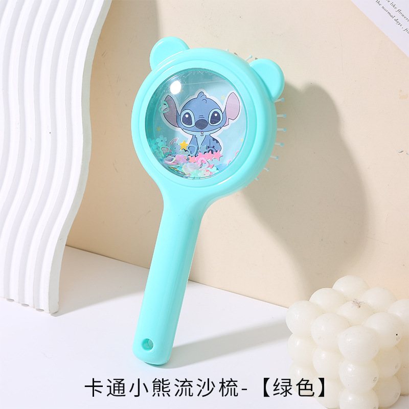 新款跨境卡通史迪奇美发梳流沙亮片按摩梳子高颜值长柄便携美发梳