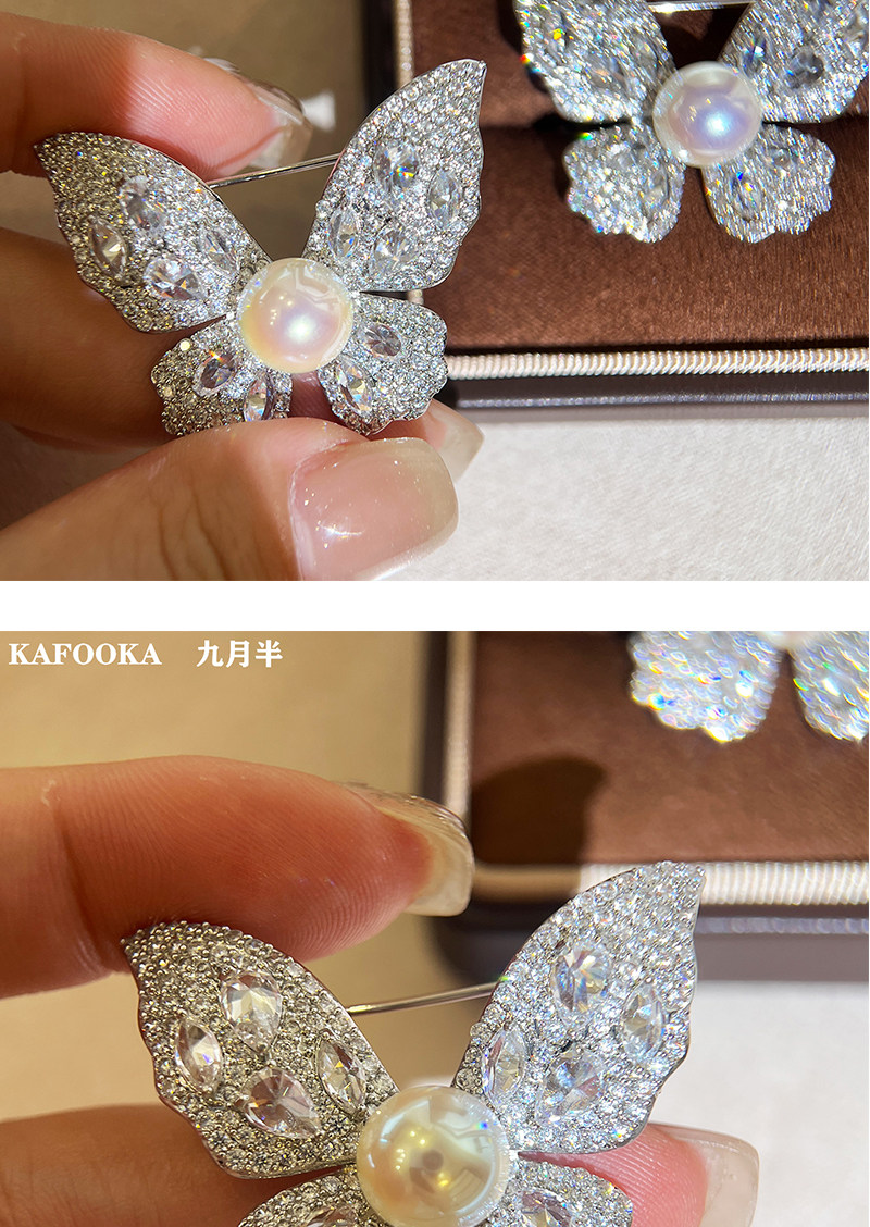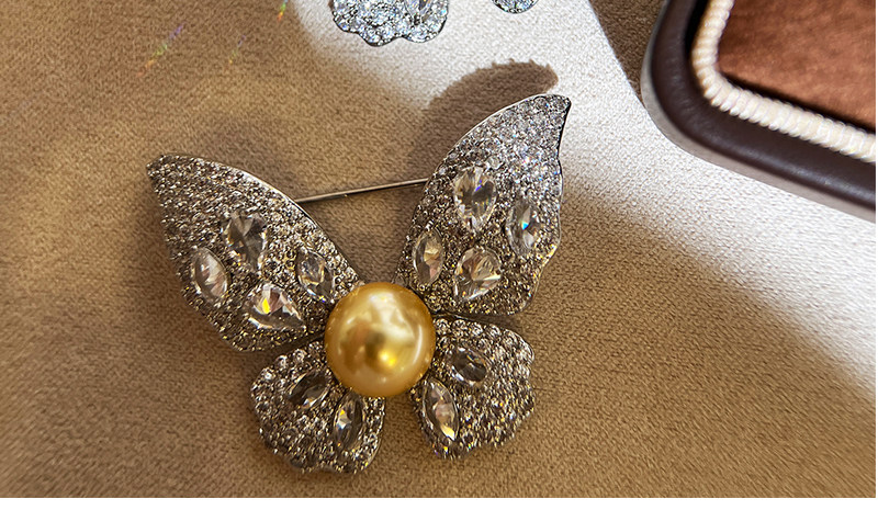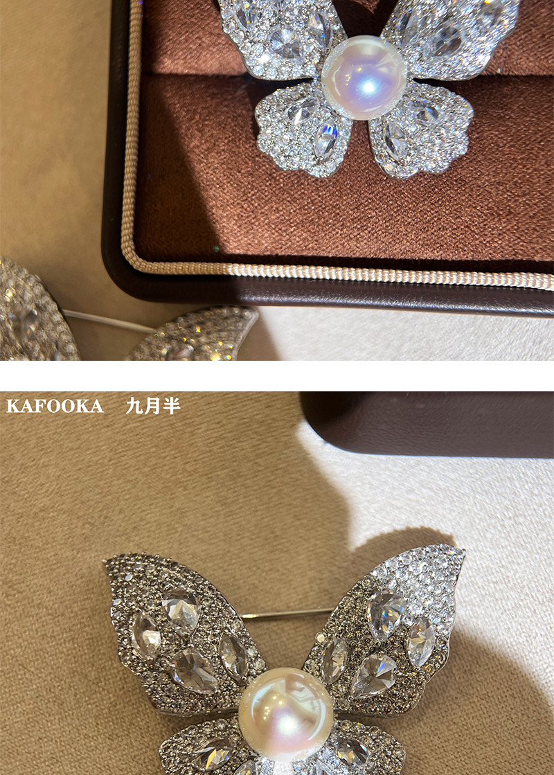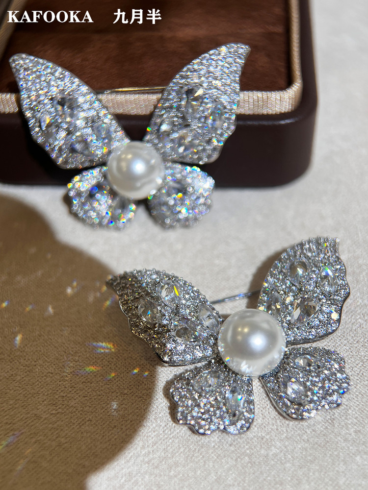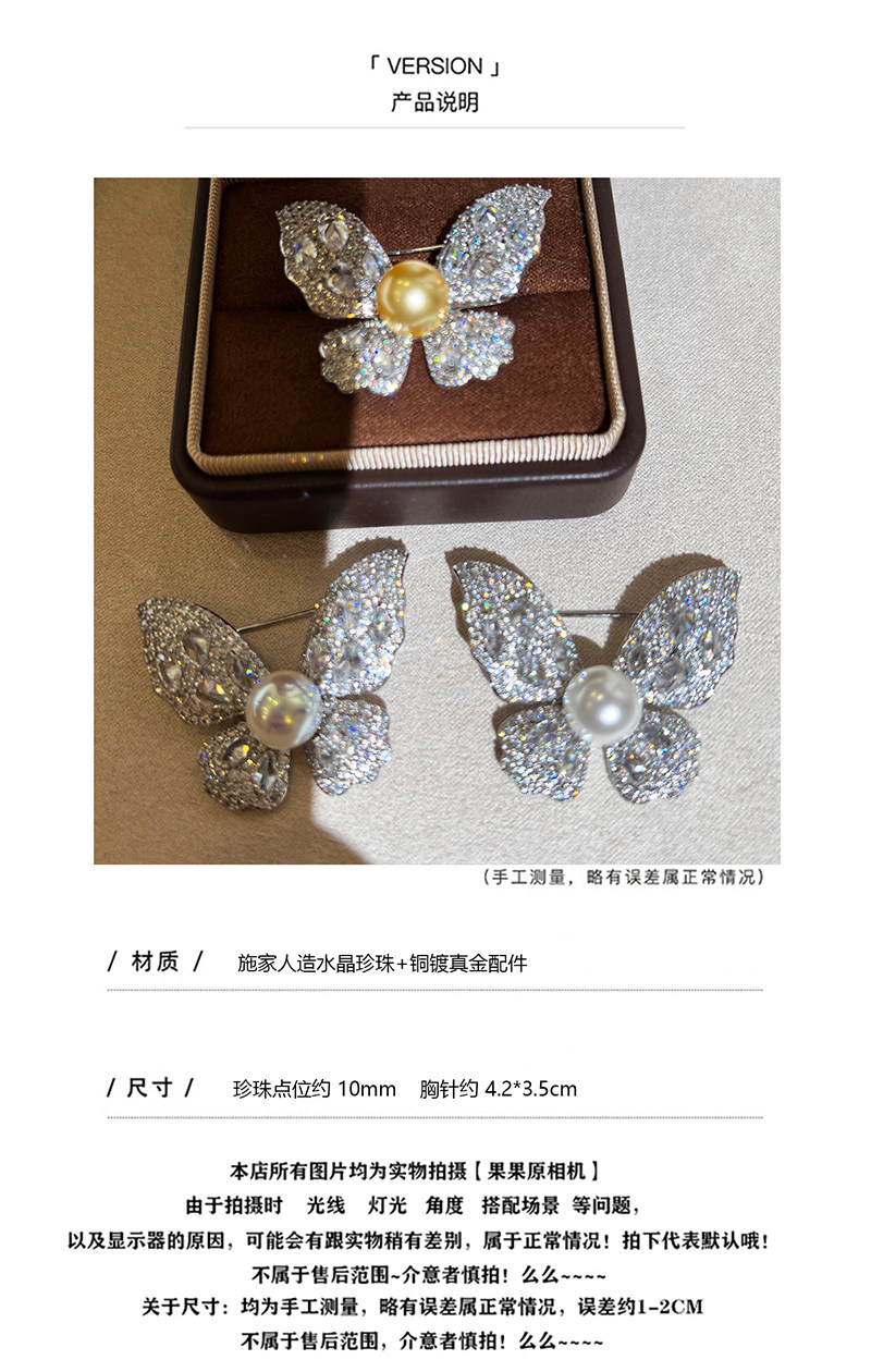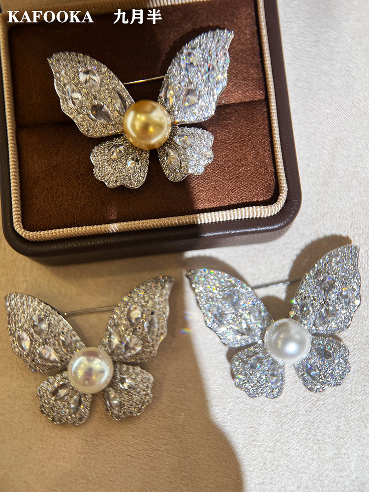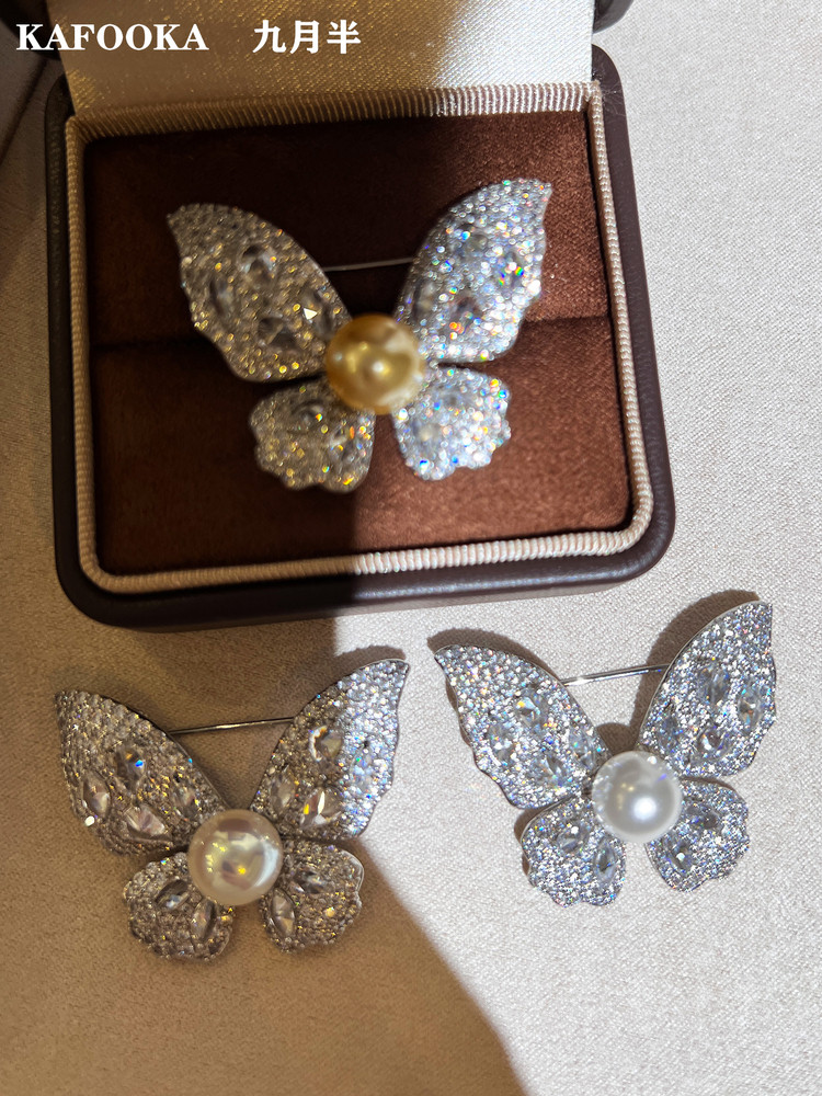【福利价】施家人造AK天女极光澳白珍珠蝴蝶胸针满钻镶嵌轻奢别针