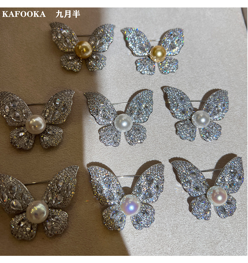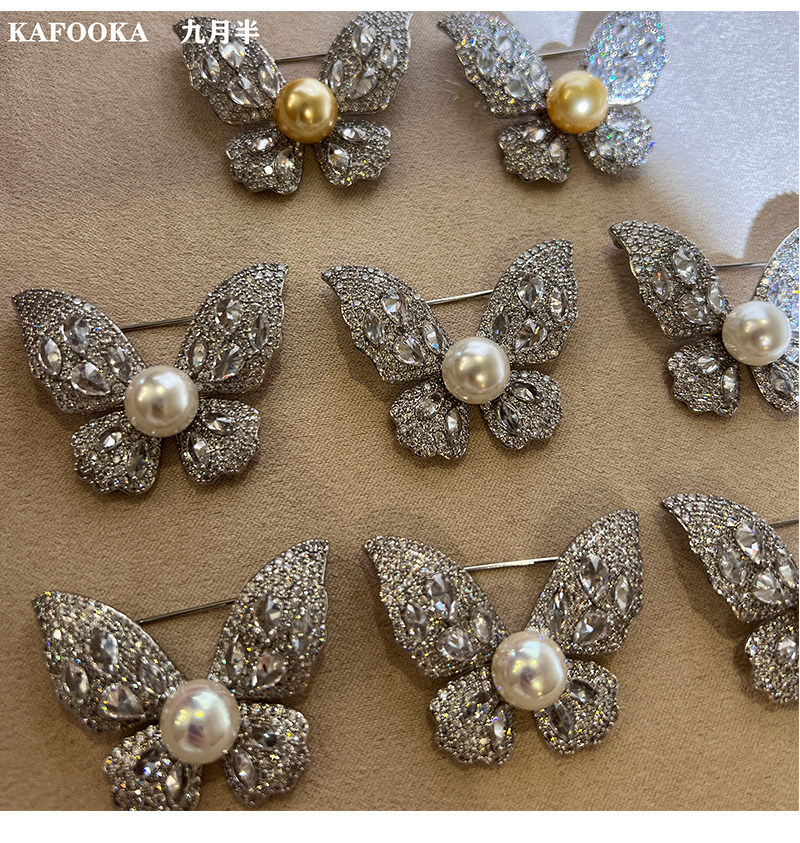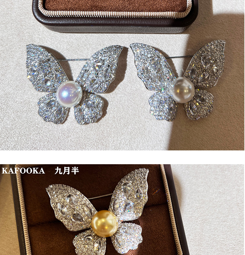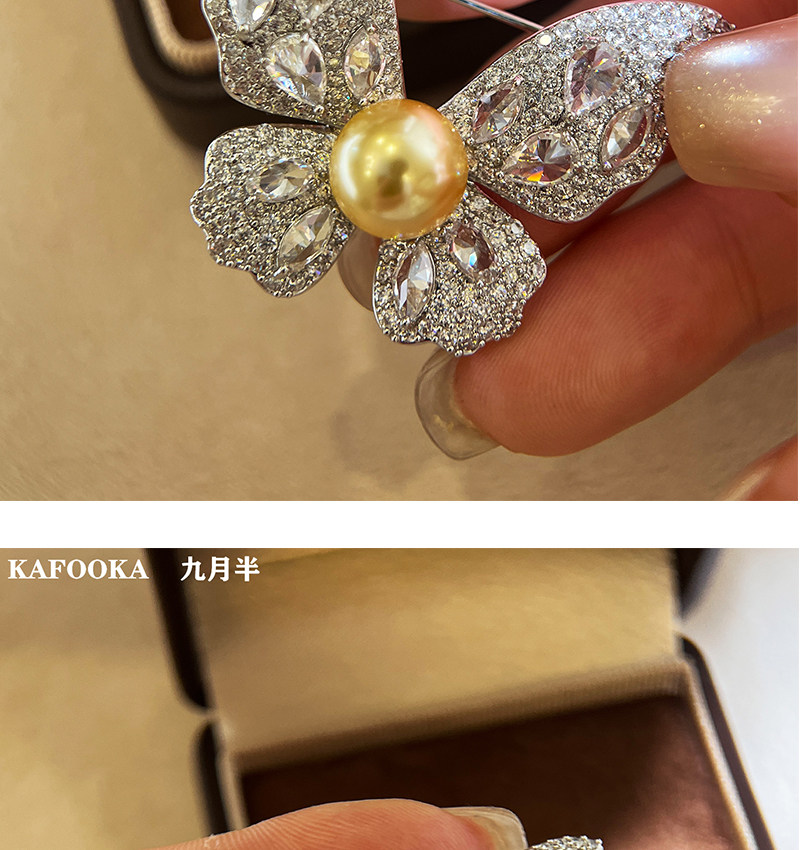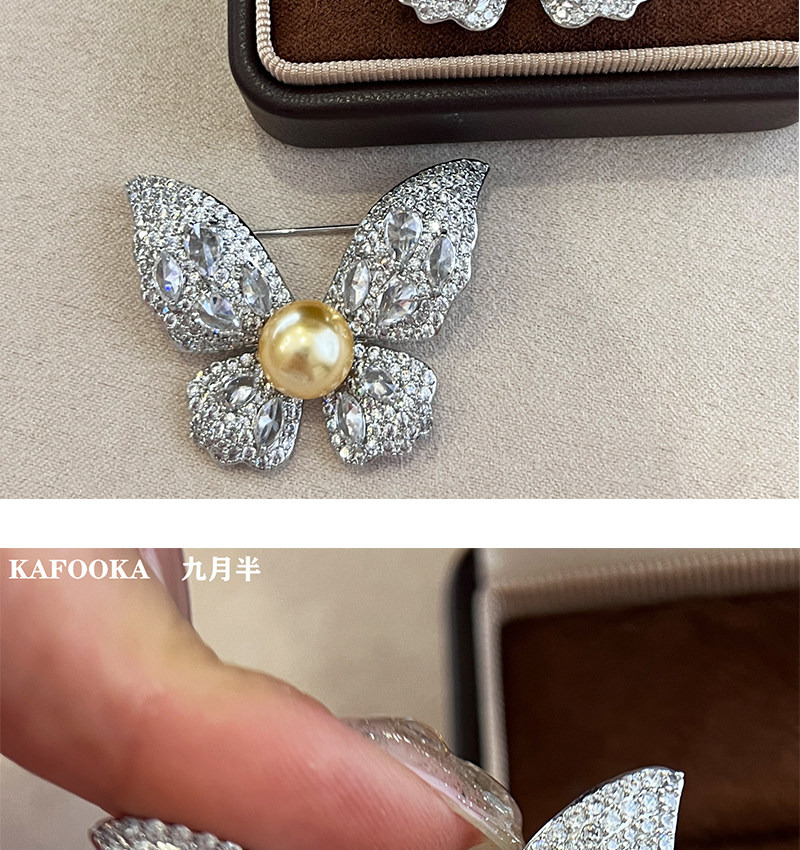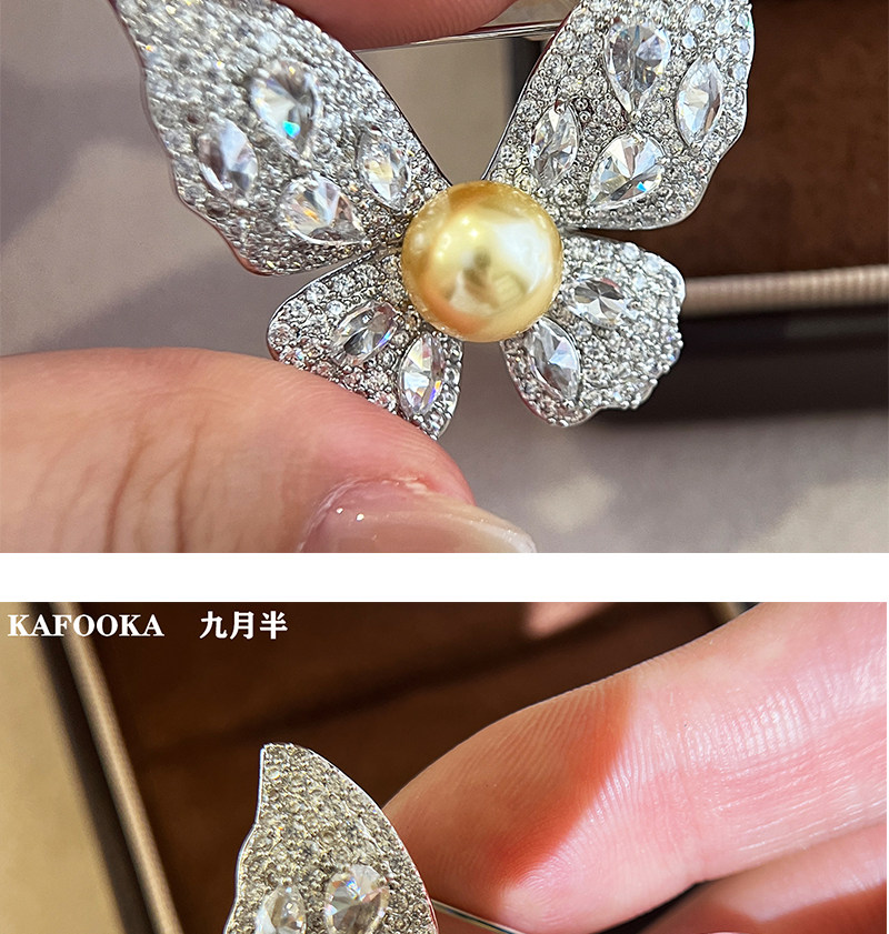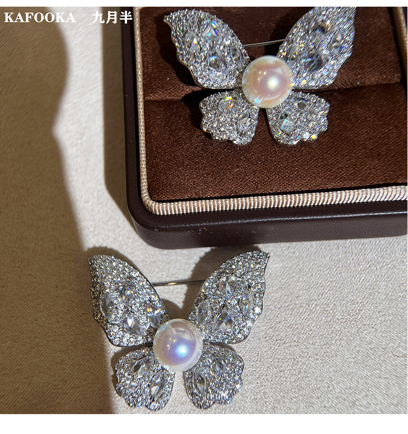 【福利价】施家人造AK天女极光澳白珍珠蝴蝶胸针满钻镶嵌轻奢别针