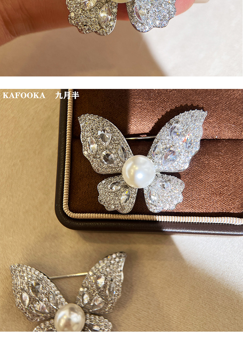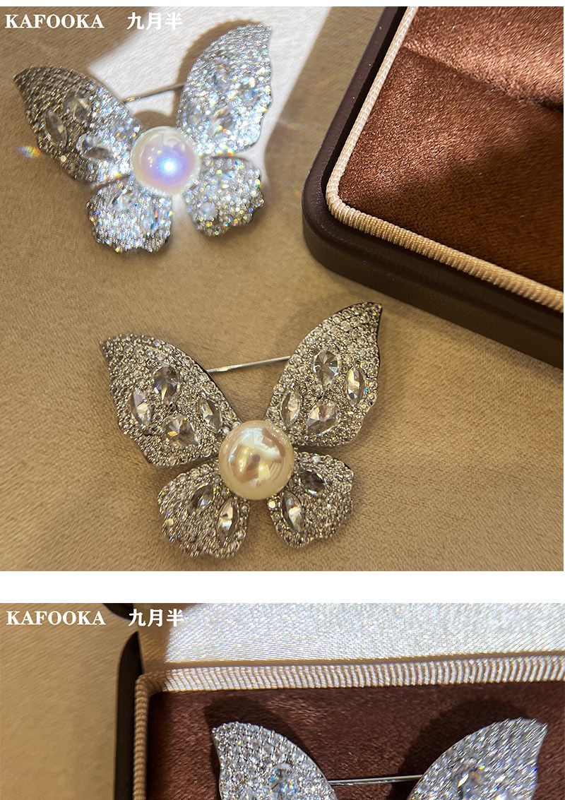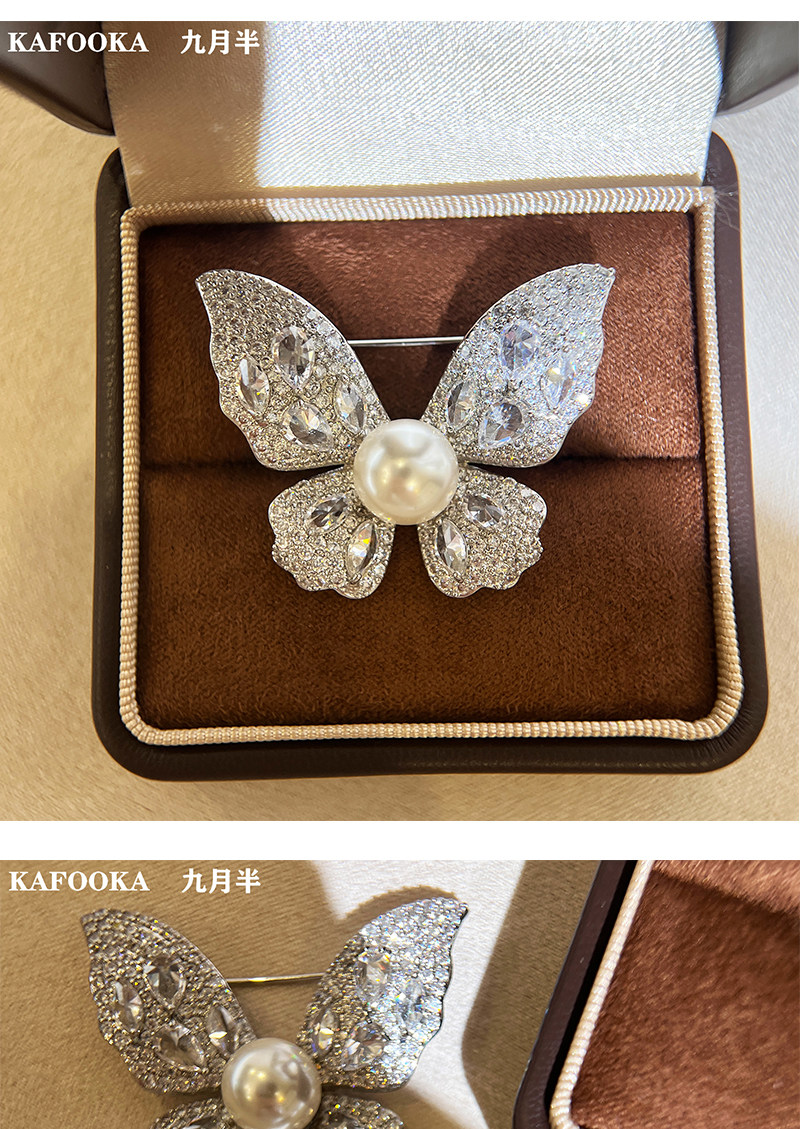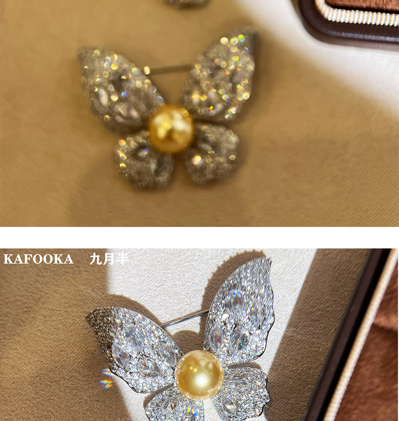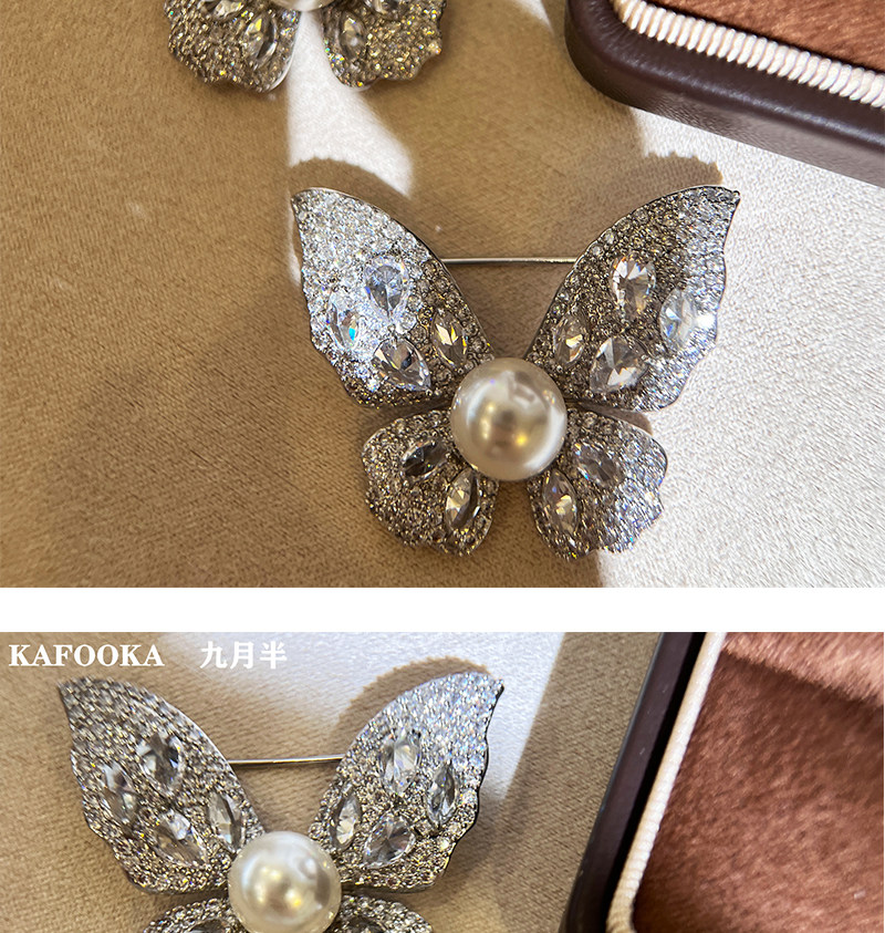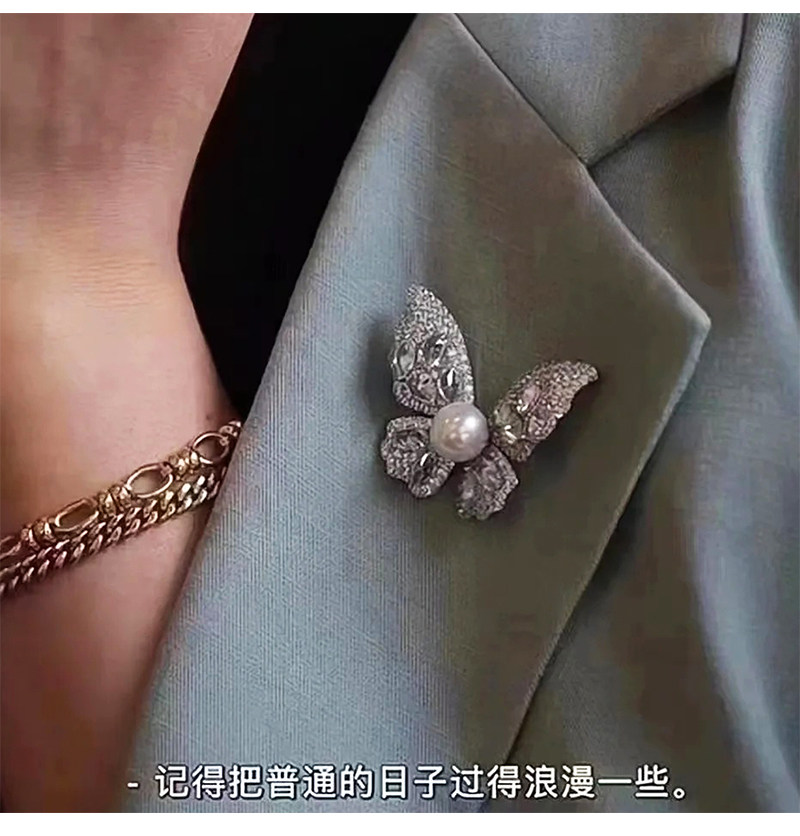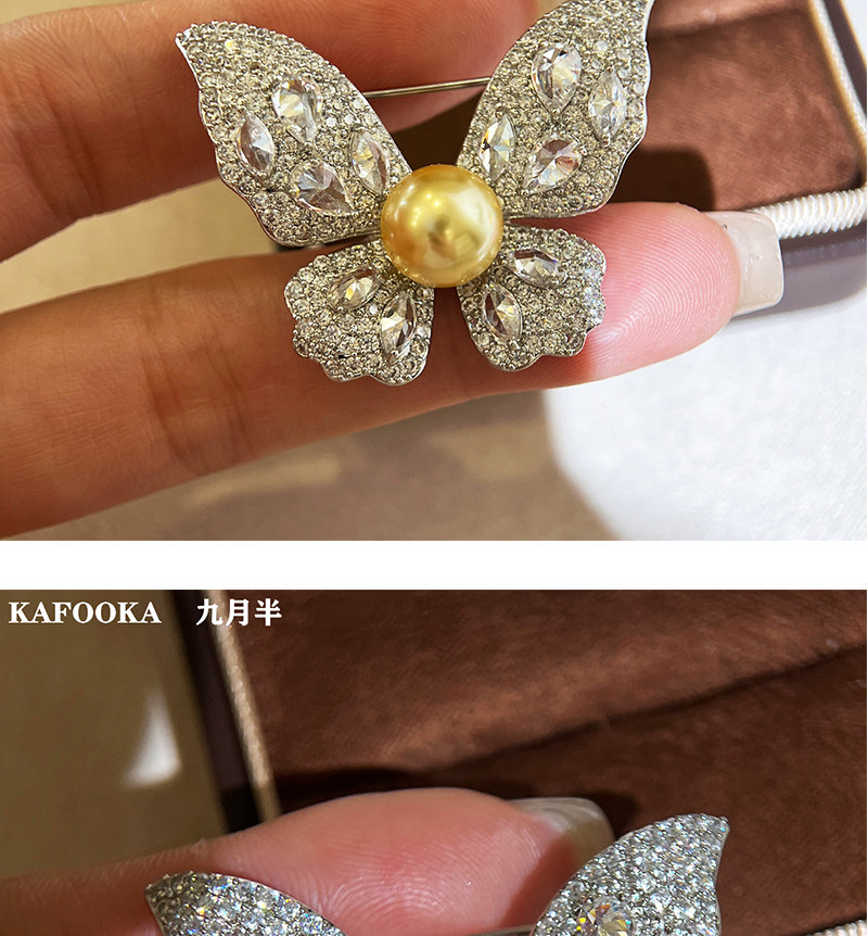 【福利价】施家人造AK天女极光澳白珍珠蝴蝶胸针满钻镶嵌轻奢别针