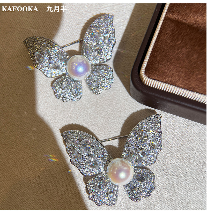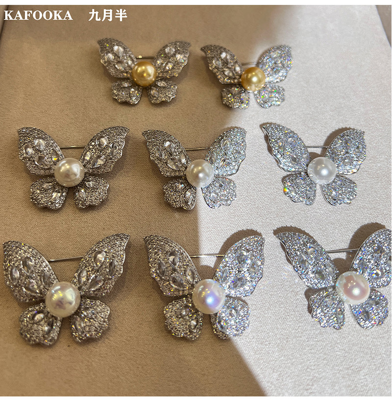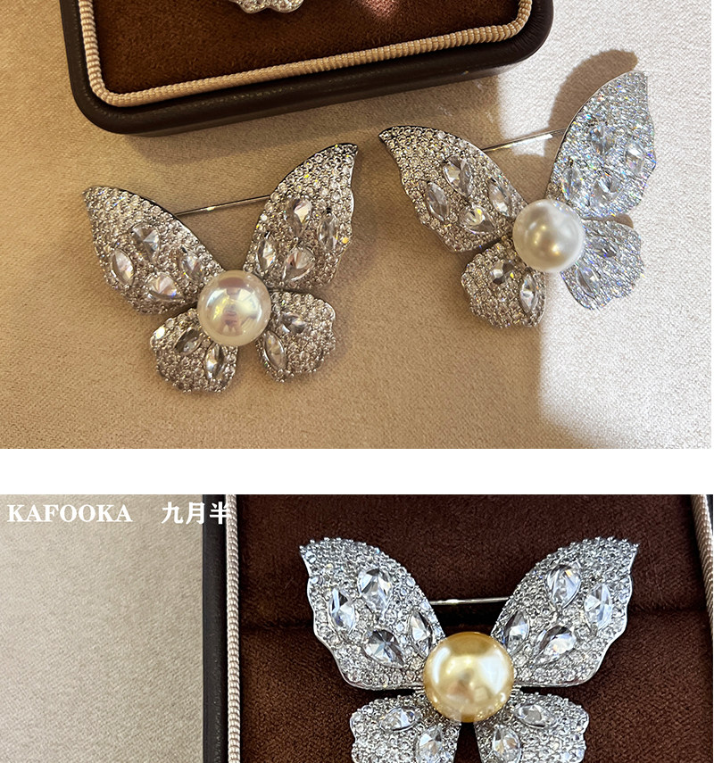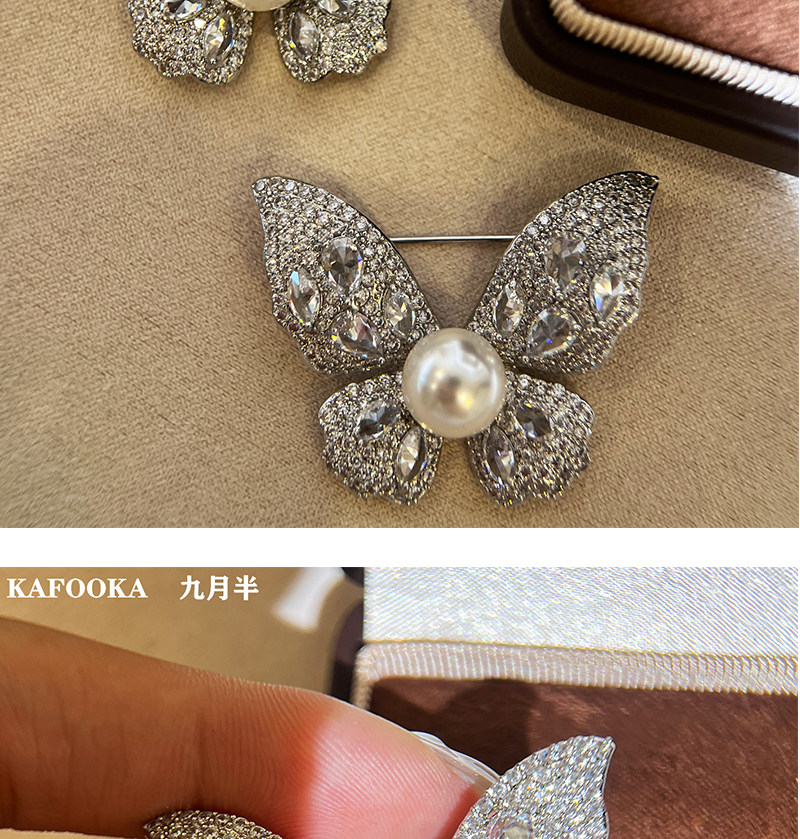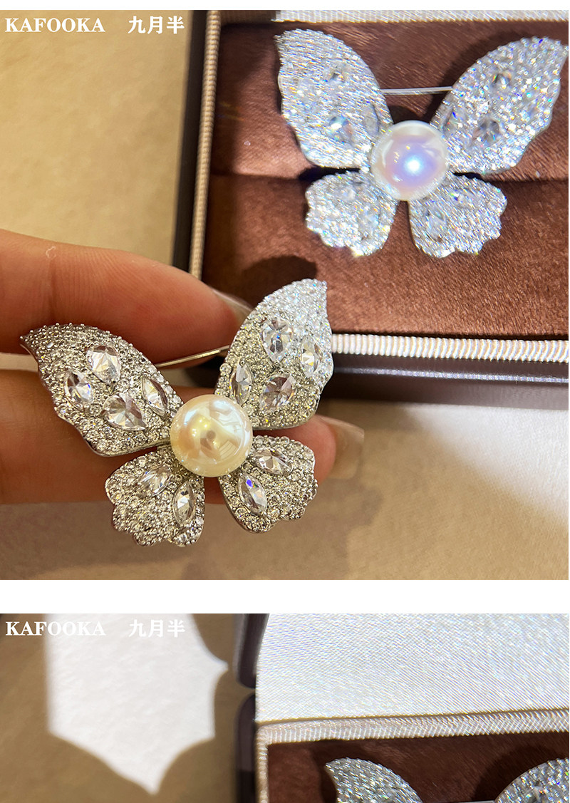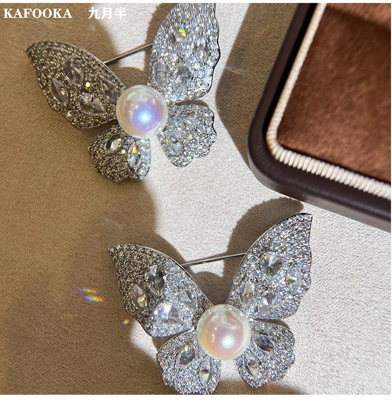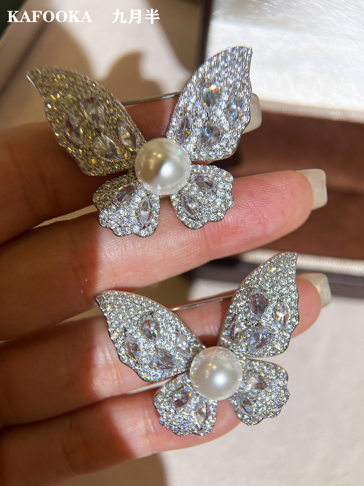 【福利价】施家人造AK天女极光澳白珍珠蝴蝶胸针满钻镶嵌轻奢别针