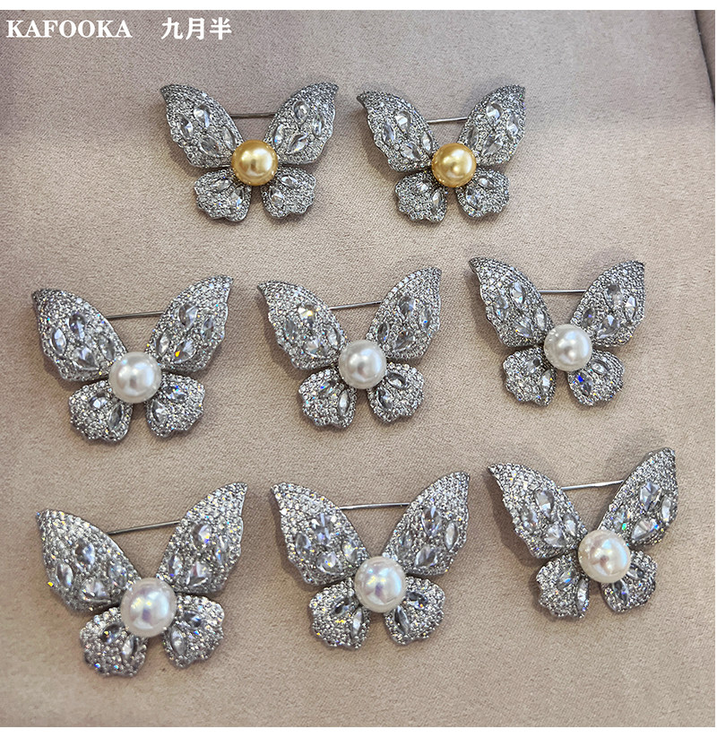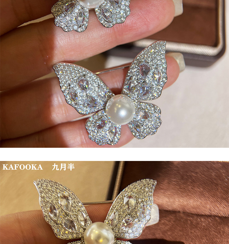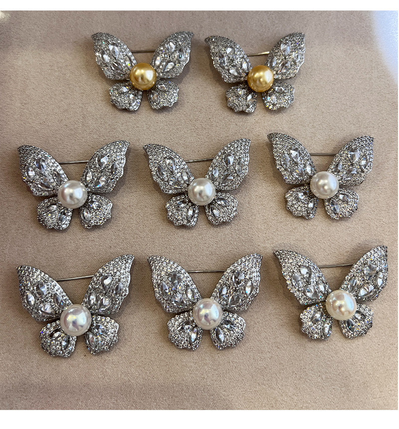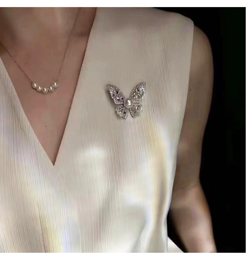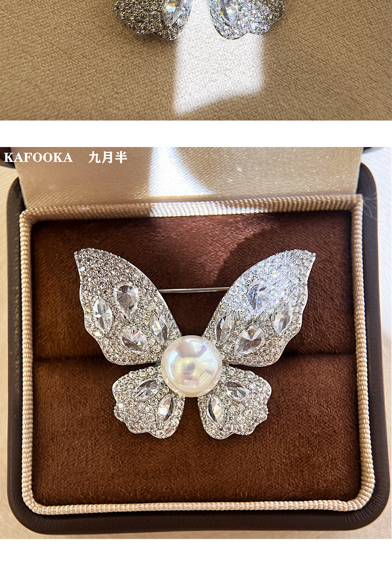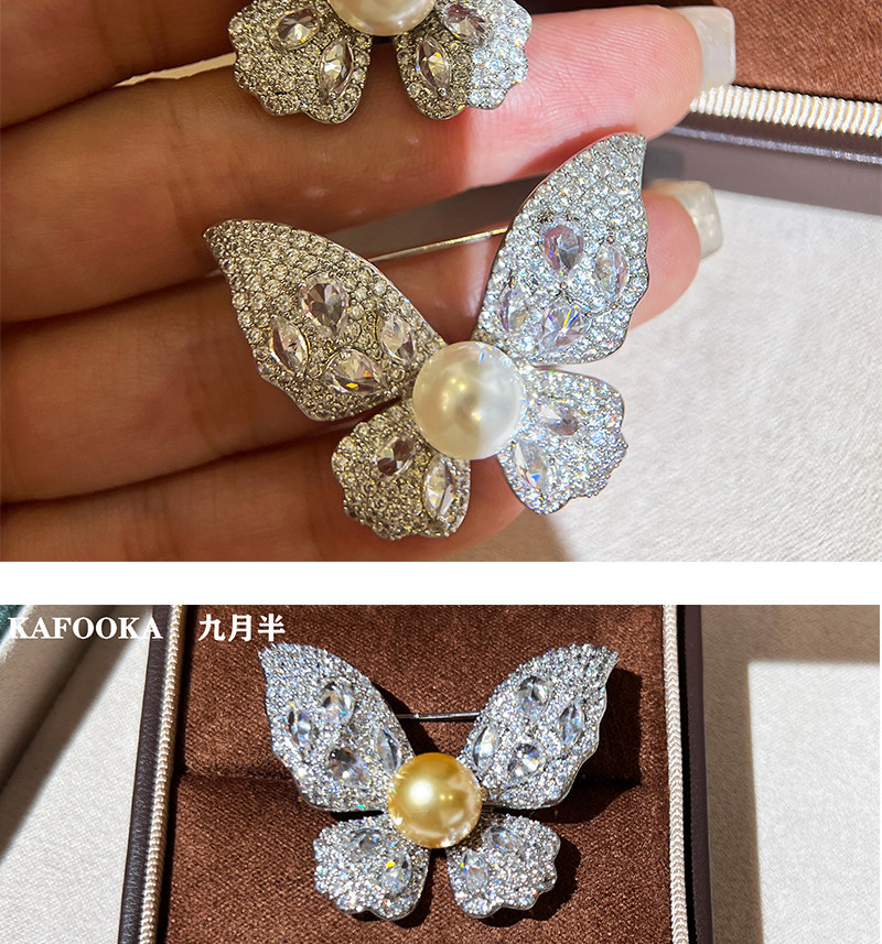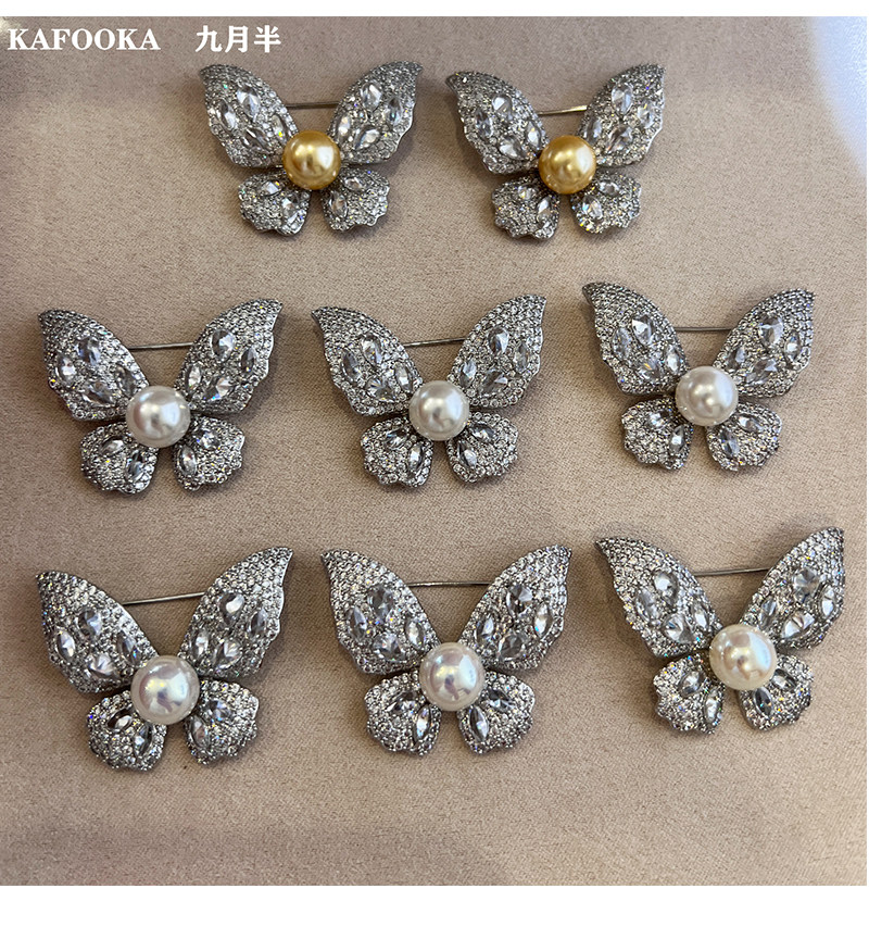 【福利价】施家人造AK天女极光澳白珍珠蝴蝶胸针满钻镶嵌轻奢别针