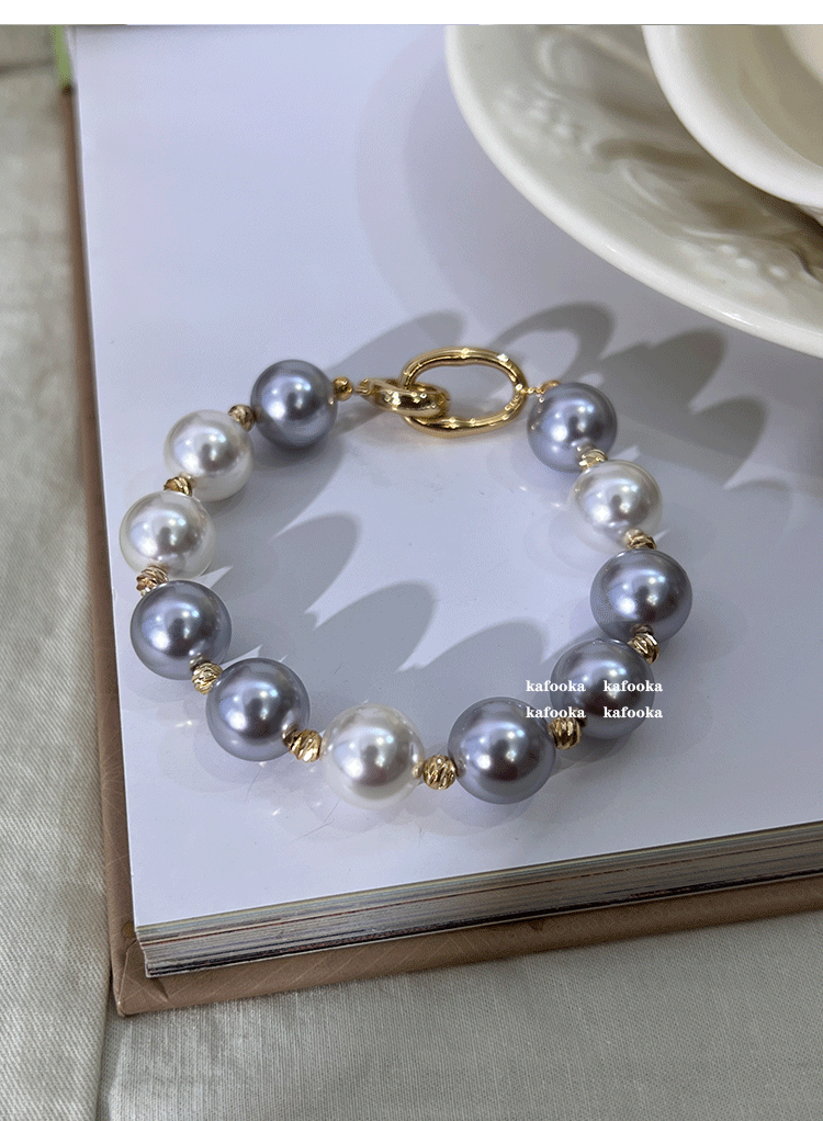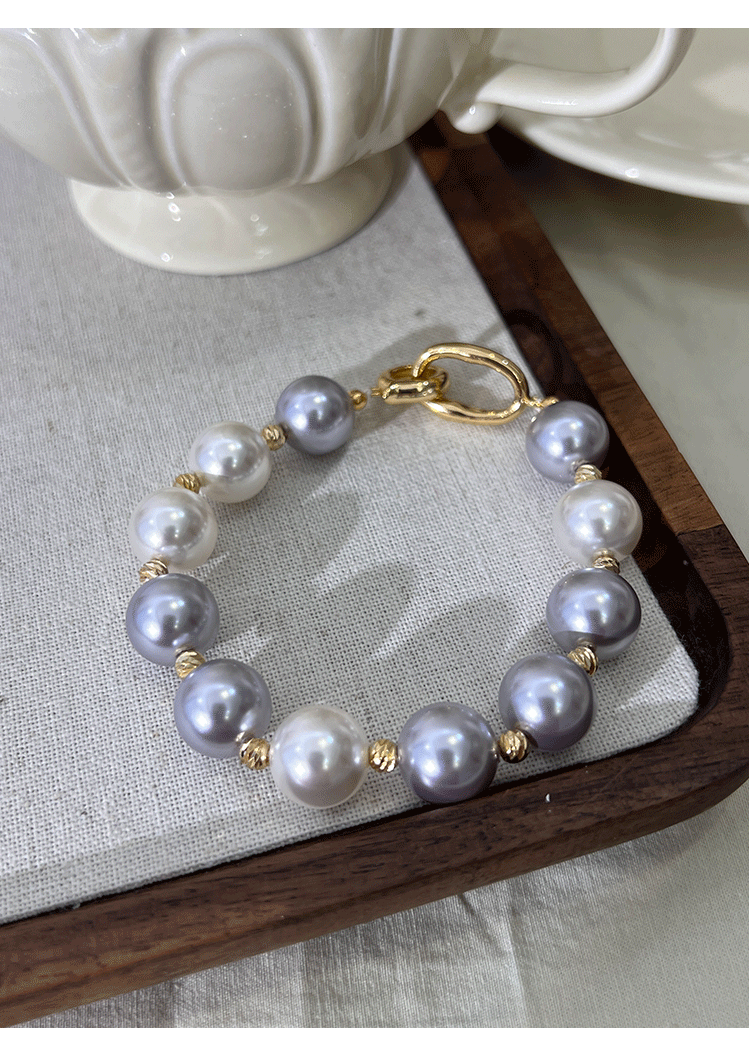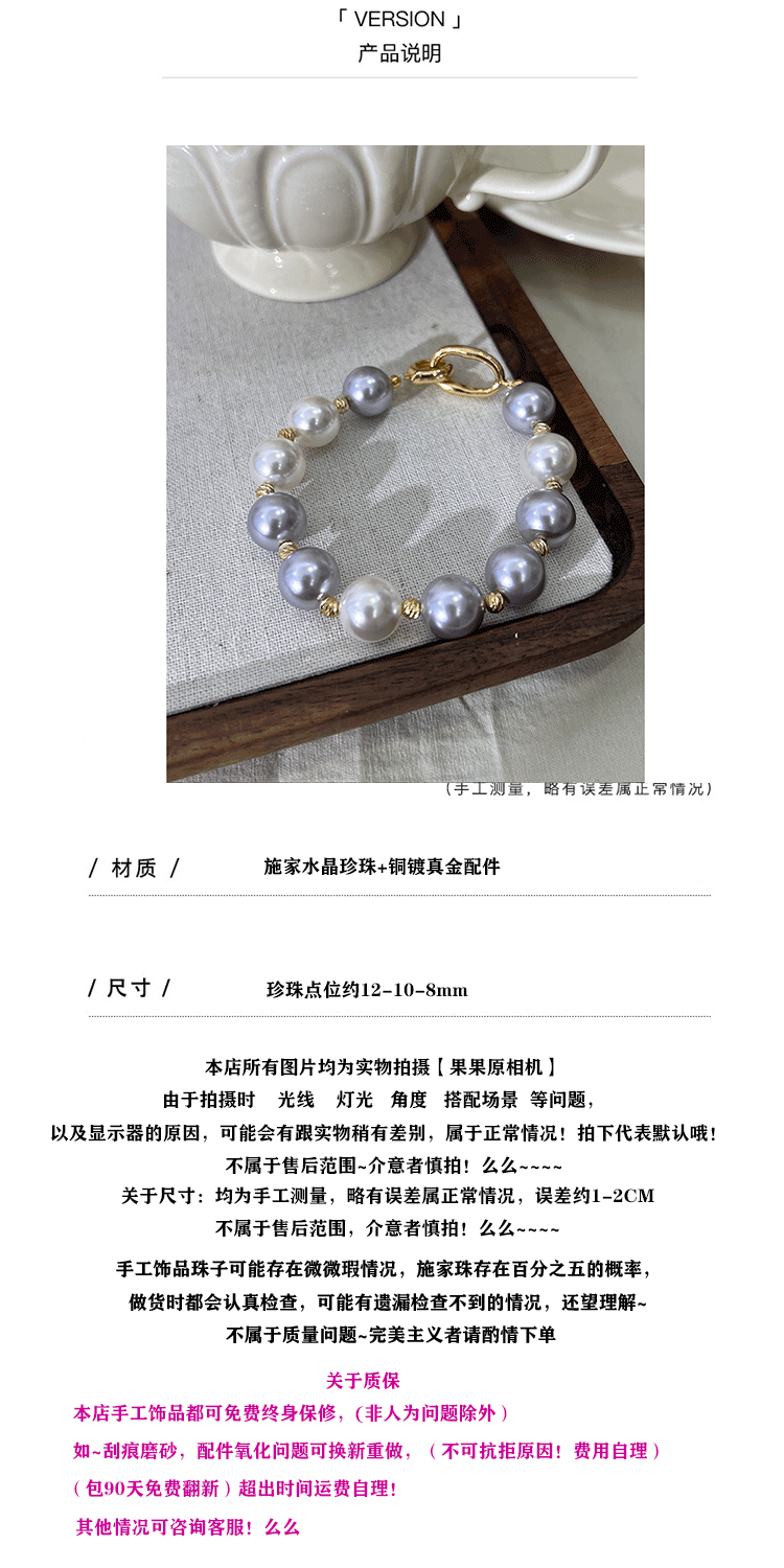 九月半 仿海水不规则混彩紫色澳白施家珍珠手链女小众设计新款