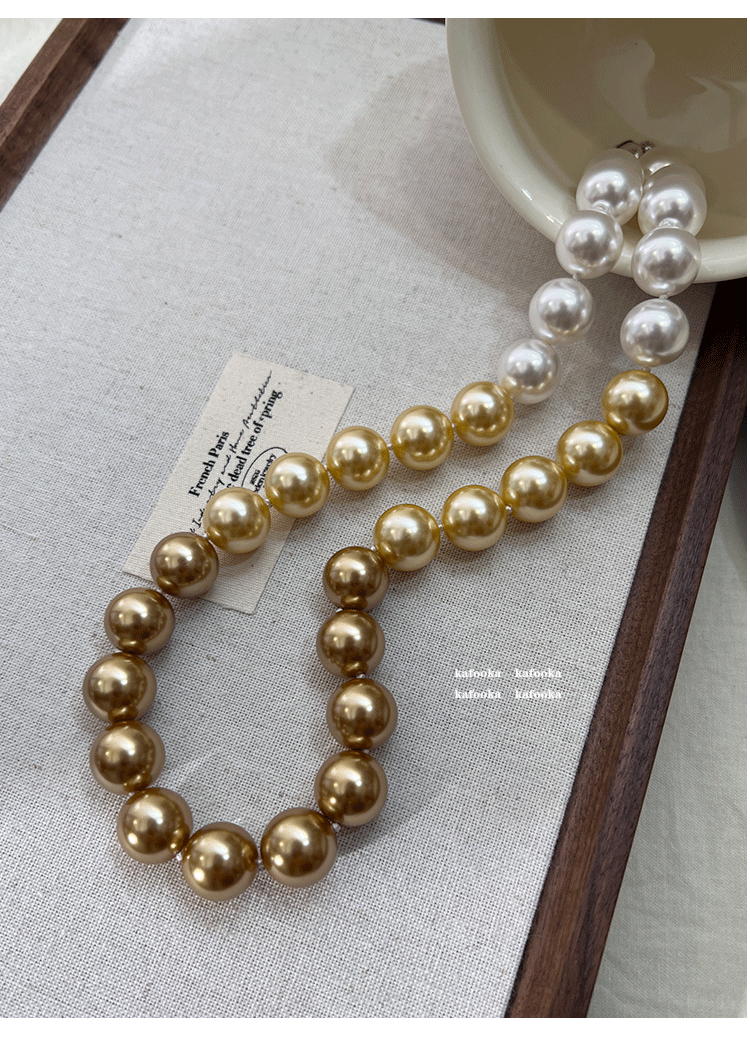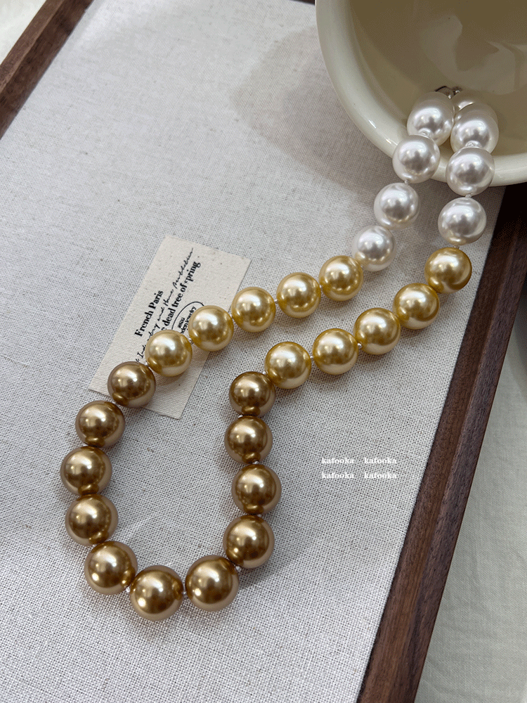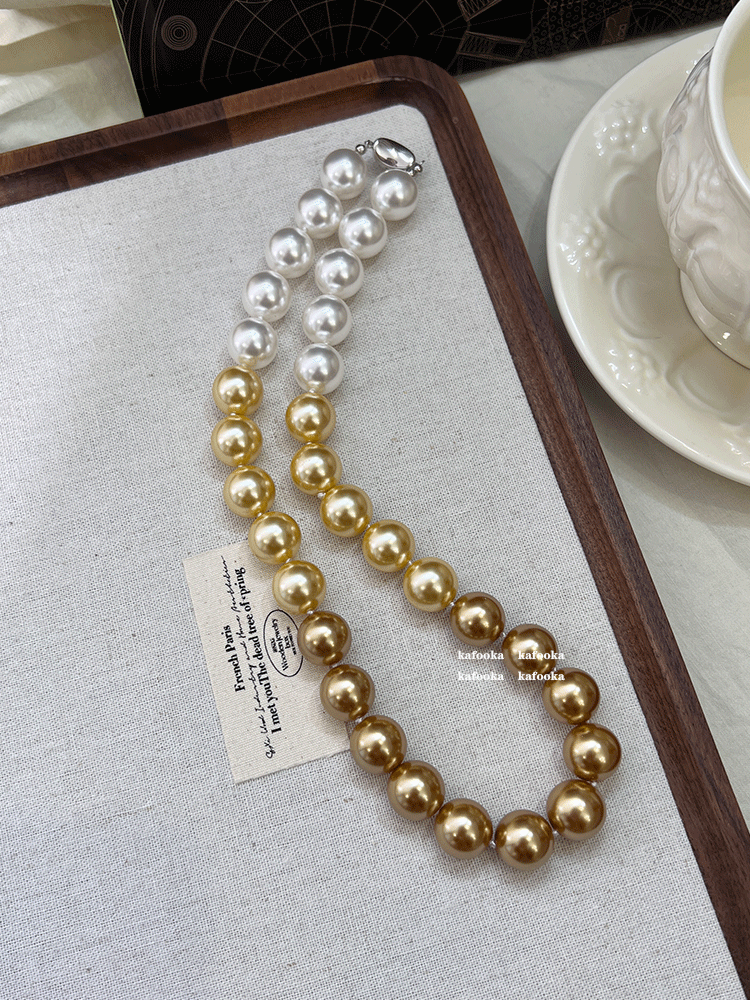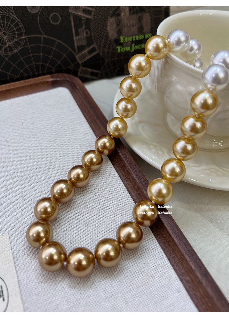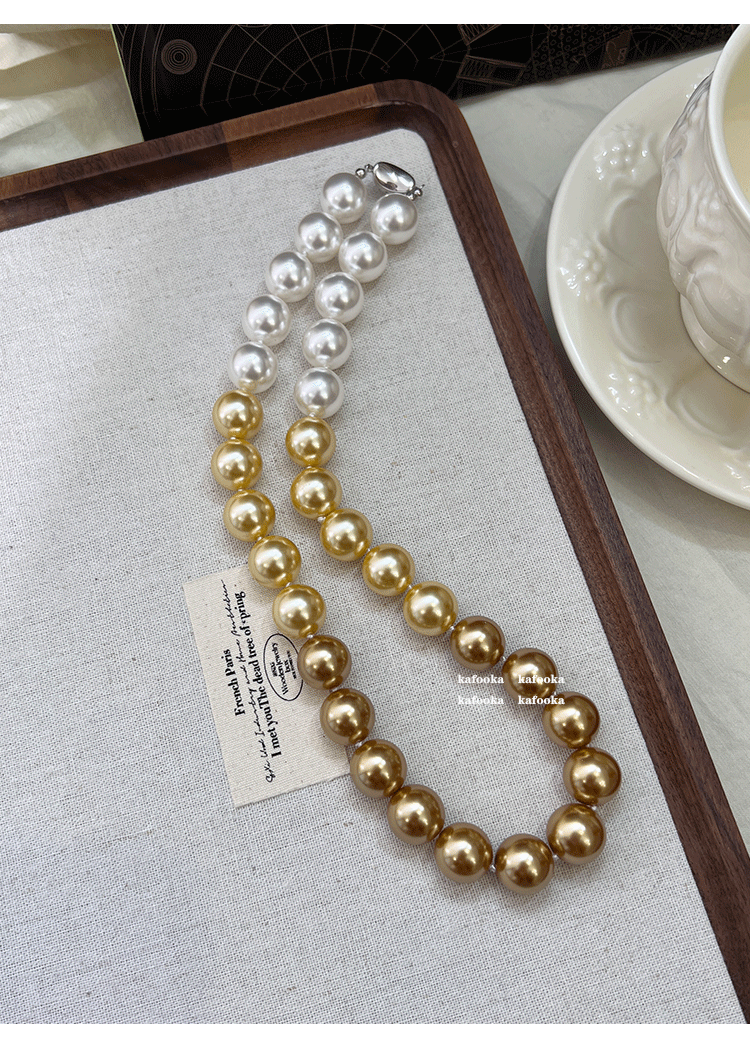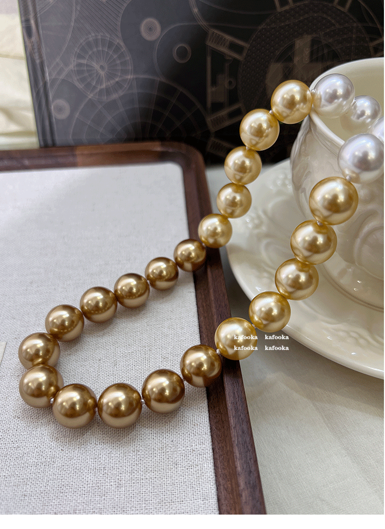 奢华霸气14mm大点位茶金色澳白渐变色仿海水珍珠项链女法式打结款