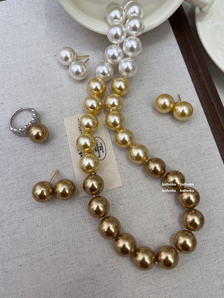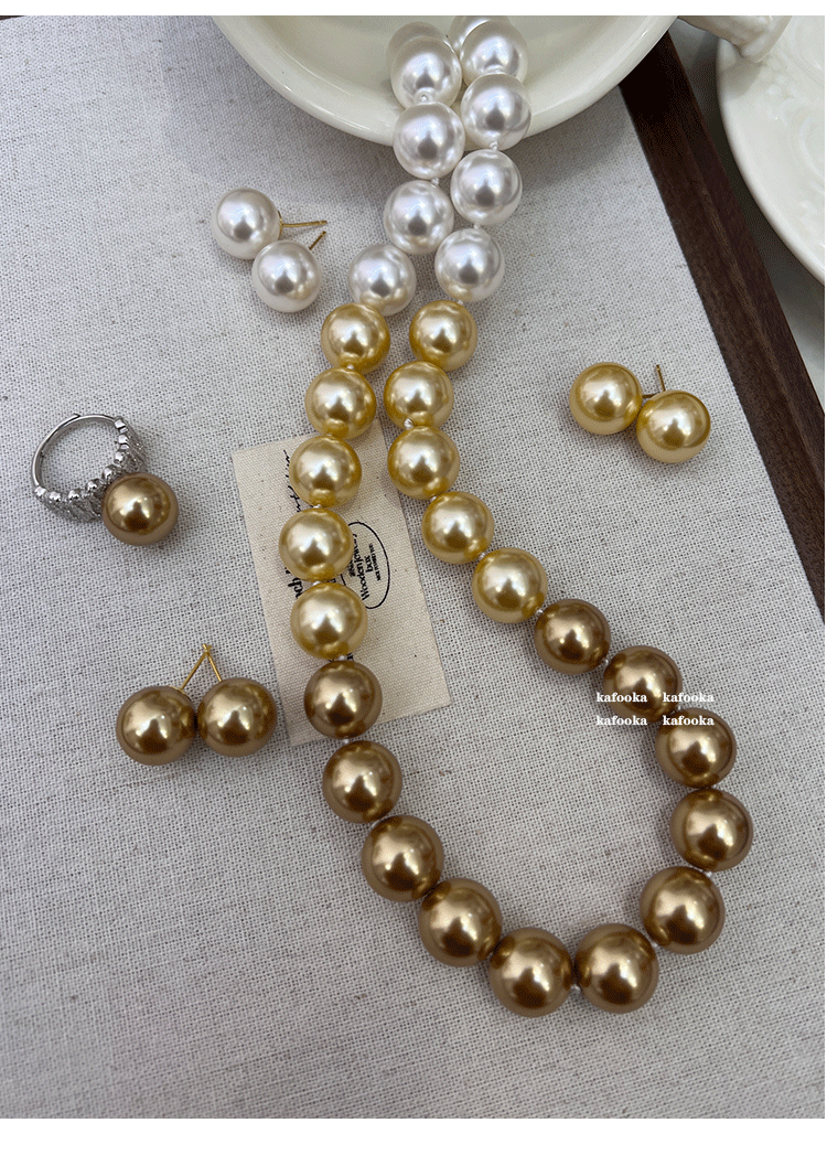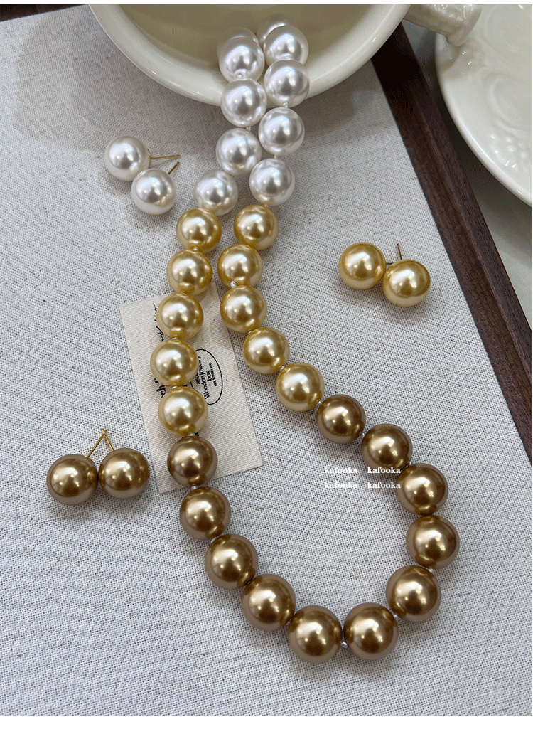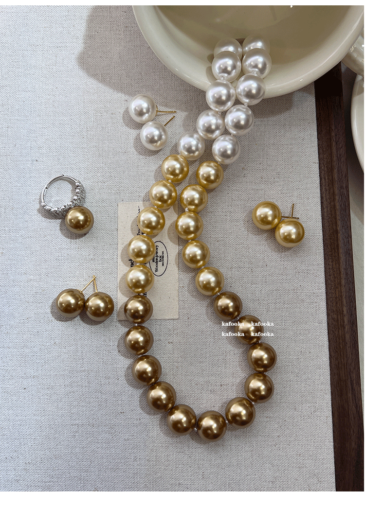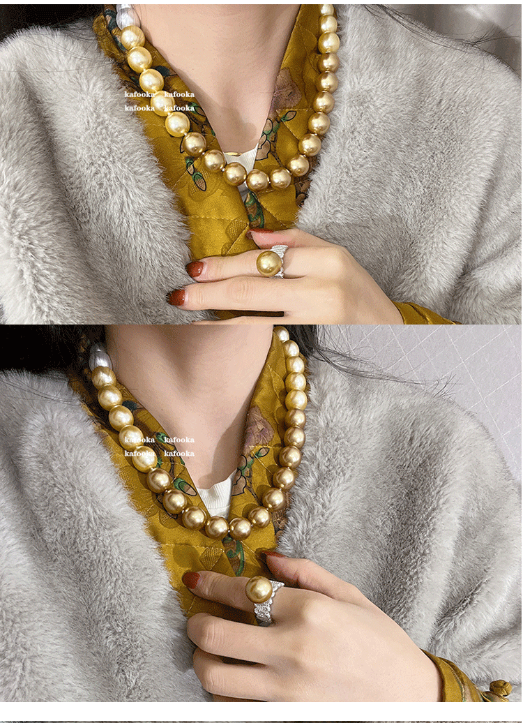 奢华霸气14mm大点位茶金色澳白渐变色仿海水珍珠项链女法式打结款