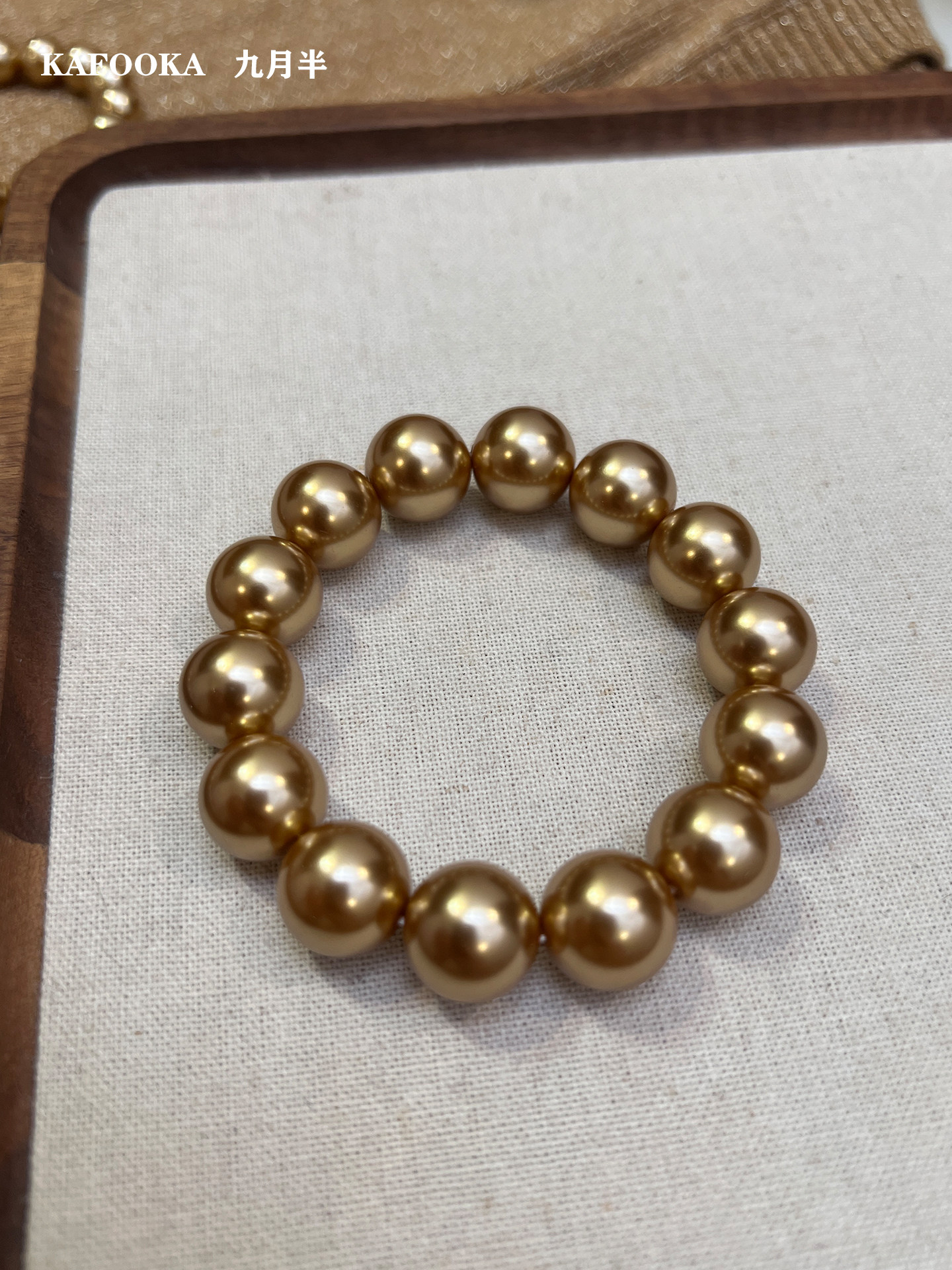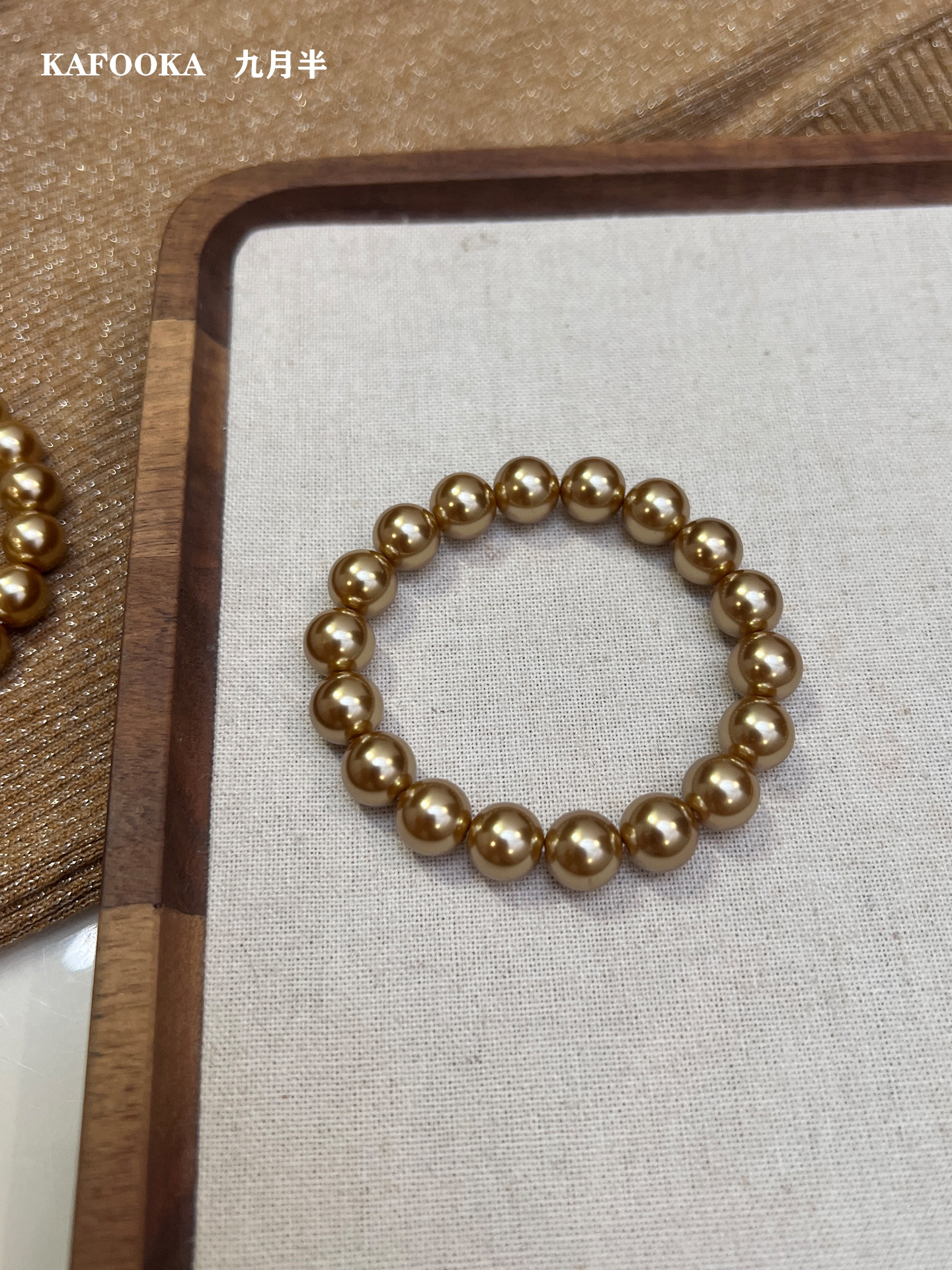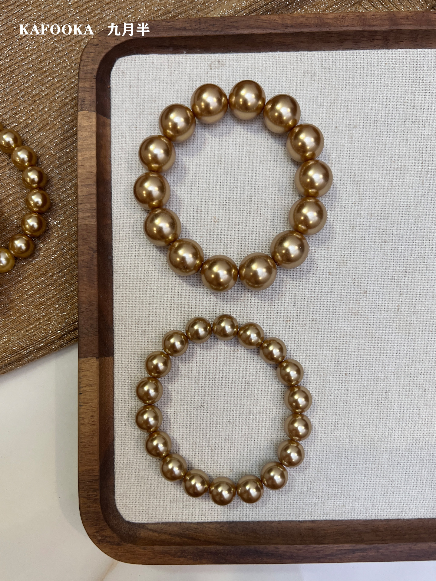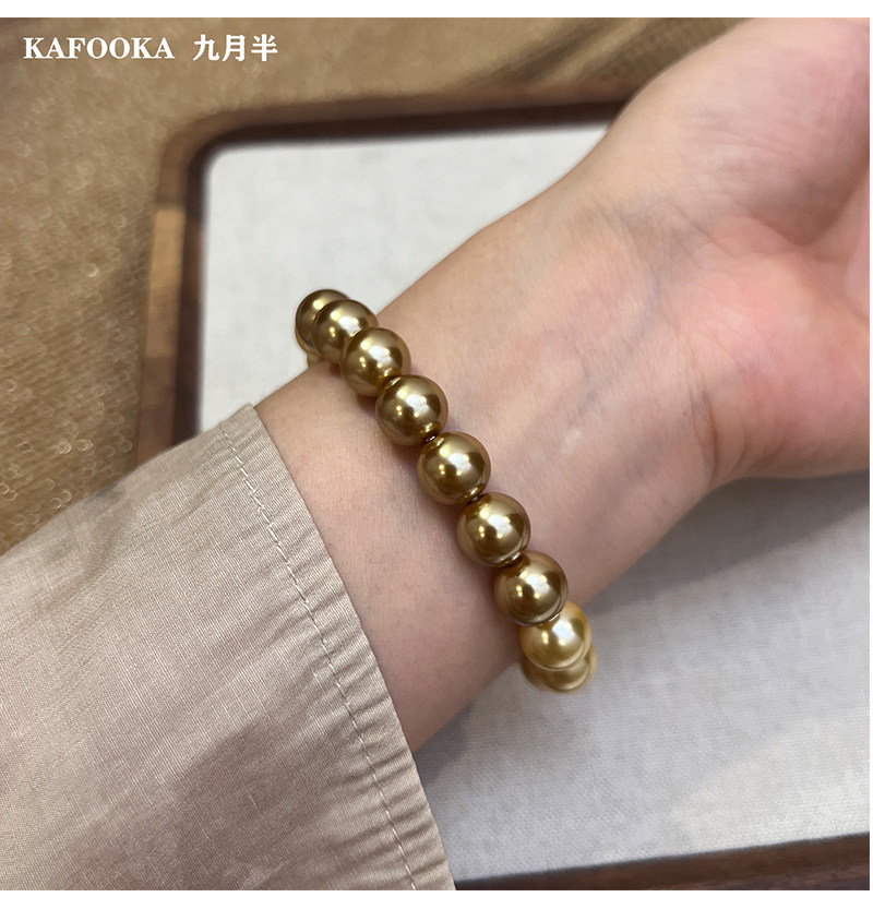 原创 浓郁茶金色珍珠手链圆润饱满高档轻奢手工弹力绳珠子手串女